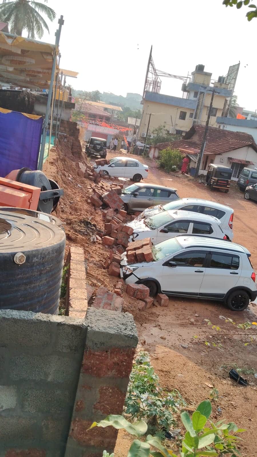 ಮಂಗಳೂರು: ಮಂಗಳೂರು ನಗರದ ಹಲವು ಕಡೆಗಳಲ್ಲಿ ಬುಧವಾರ ನಸುಕಿನ ಜಾವ ಸಿಡಿಲು, ಮಿಂಚು, ಗುಡುಗು ಸಹಿತ ಭಾರಿ ಗಾಳಿ ಮಳೆಯಾಗಿದ್ದು, ಕೆಲವು ಕಡೆಗಳಲ್ಲಿ ಅವಾಂತರ ಸಂಭವಿಸಿದೆ. ನಗರದ ಅತ್ತಾವರ ಪ್ರದೇಶದಲ್ಲಿ ಅಯ್ಯಪ್ಪ ಸ್ವಾಮಿ ದೇವಸ್ಥಾನ ಸಮೀಪ ಕಂಪೌಂಡ್ ಗೋಡೆ ಕುಸಿದು ಅಲ್ಲಿ ನಿಲ್ಲಿಸಿದ್ದ ಐದಕ್ಕೂ ಹೆಚ್ಚು ಕಾರುಗಳ ಮೇಲೆ ಕಲ್ಲು ಬಿದ್ದು ಜಖಂಗೊಂಡಿವೆ. ಅಲ್ಲಿನ ದೇವಸ್ಥಾನದಲ್ಲಿ ಬ್ರಹ್ಮಕಲಶ ಕಾರ್ಯಕ್ರಮಕ್ಕೆ ಸಿದ್ಧತೆ ನಡೆಯುತ್ತಿದ್ದುದರಿಂದ ಗೋಡೆ ಸಮೀಪ ಸ್ಥಳೀಯರು ತಮ್ಮ ಕಾರು ನಿಲ್ಲಿಸಿದ್ದರು. ಬೇಸಗೆಯ ಒಂದೇ ಮಳೆಗೆ ತಡೆಗೋಡೆ ಕುಸಿದಿದ್ದು, ಕಲ್ಲಿನ ಸಮೇತ ಪಾರ್ಕಿಂಗ್ ಪ್ರದೇಶಕ್ಕೆ ಬಿದ್ದಿದೆ.