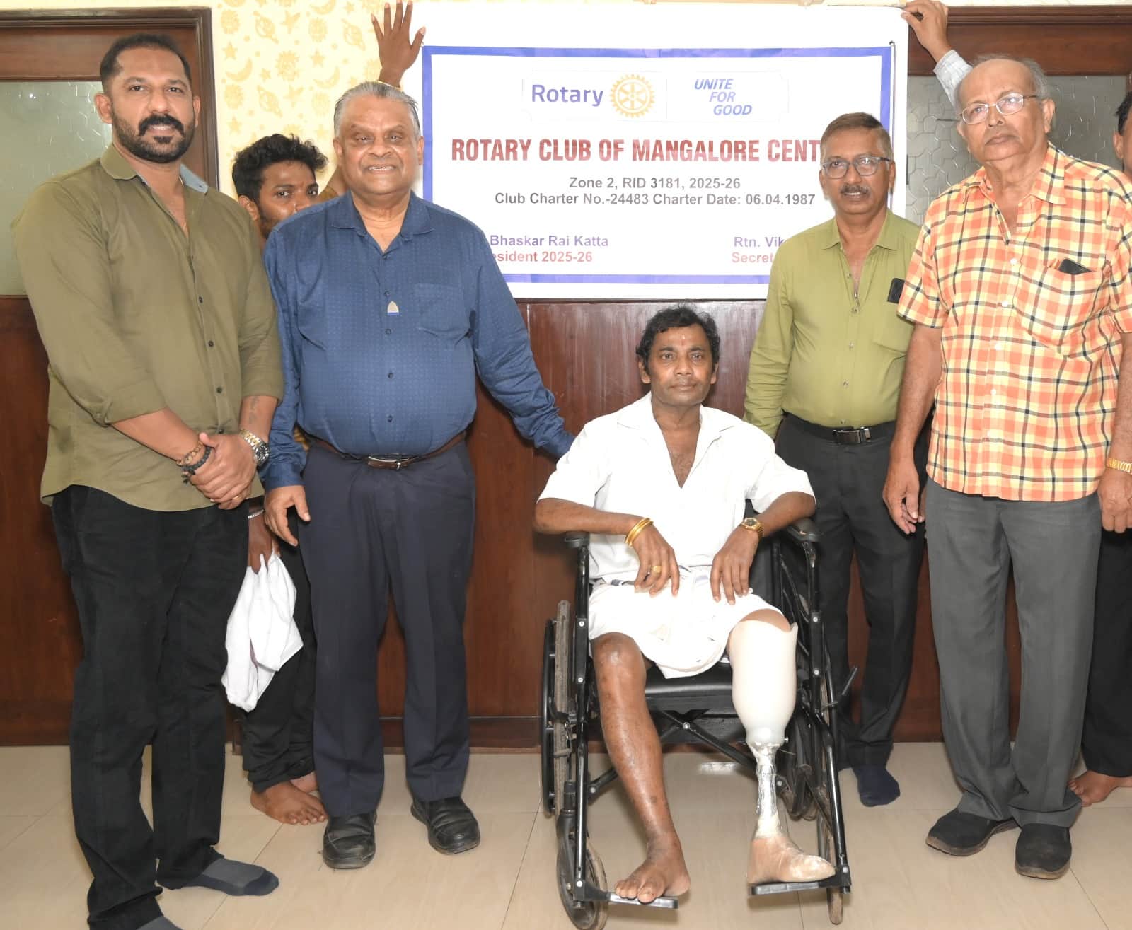 ರೋಟರಿ ಮಂಗಳೂರು ಸೆಂಟ್ರಲ್ ಸಂಸ್ಥೆಯು ಆರ್ಥಿಕವಾಗಿ ಹಿಂದುಳಿದ, ಕಾಲು ಕಳೆದುಕೊಂಡ ವ್ಯಕ್ತಿಯೊಬ್ಬರಿಗೆ ೨.೧೦ ಲಕ್ಷ ರು. ಮೌಲ್ಯದ ಕೃತಕ ಕಾಲಿನ ದೇಣಿಗೆ ನೀಡಿ ಆ ವ್ಯಕ್ತಿಯು ನಡೆದಾಡುವ ಅಪೂರ್ವ ಅವಕಾಶ