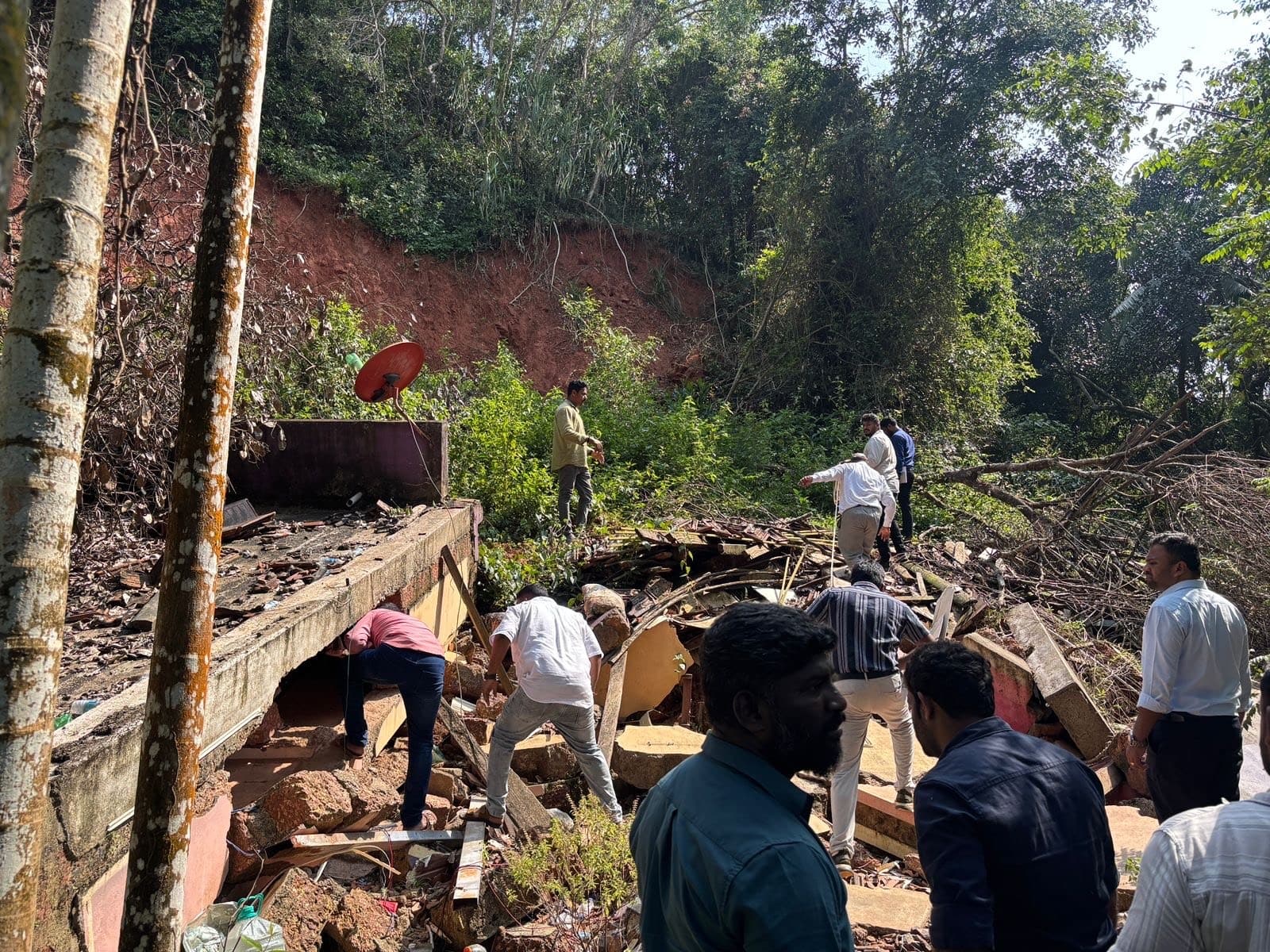 ಉಳ್ಳಾಲ ತಾಲೂಕು ಪಂಚಾಯಿತಿ ಕಾರ್ಯನಿರ್ವಹಣಾ ಅಧಿಕಾರಿ ಗುರುದತ್ , ಜಿಲ್ಲಾ ಪಂಚಾಯಿತಿ ನೀರಾವರಿ ಇಲಾಖೆ ಸಹಾಯಕ ಕಾರ್ಯಪಾಲಕ ಅಭಿಯಂತರ ನಿತೇಶ್, ಪಂಚಾಯತ್ ಅಭಿವೃದ್ಧಿ ಅಧಿಕಾರಿ ರಮ್ಯಾ ಸೇರಿದ ನಿಯೋಗ ಗುರುವಾರ ಮಧ್ಯಾಹ್ನ 2 ಗಂಟೆಯ ವೇಳೆ ಭೇಟಿ ನೀಡಿತು.ನೀರಾವರಿ ಇಲಾಖೆ ಕಾರ್ಯಪಾಲಕ ಇಂಜಿನಿಯರ್ ಜಯಪ್ರಕಾಶ್ ಮಾಧ್ಯಮದೊಂದಿಗೆ ಮಾತನಾಡಿ, ಕಾಂಕ್ರಿಟಿಕರಣಗೊಂಡಿರುವ ರಸ್ತೆಯ ಆರಂಭದಿಂದ ಕೊನೆಯವರೆಗೆ, ರಸ್ತೆಯ ಕೊನೆಯಿಂದ ದುರ್ಘಟನೆ ಸಂಭವಿಸಿದ ಮನೆಯವರೆಗೆ, ಮನೆಯ ಹಿಂಭಾಗದಿಂದ ಗುಡ್ಡದವರೆಗೆ, ಮನೆ ಸಮೀಪದ ಹಳ್ಳದಿಂದ ಮನೆಯ ಹಿಂಭಾಗದ ಗುಡ್ಡದವರೆಗೆ ಅಳತೆ ಮಾಡಲಾಗಿದೆ. ವಸ್ತುನಿಷ್ಠ ವರದಿ ಕೊಡುವ ಪ್ರಯತ್ನ ಮಾಡುತ್ತೇನೆ ಎಂದು ಭರವಸೆ ನೀಡಿದರು.ಮನೆಮಂದಿ 2013 ರಲ್ಲಿ ಬಸವ ಕಲ್ಯಾಣ ಯೋಜನೆಯಡಿ ಫಲಾನುಭವಿಗಳಾಗಿದ್ದಾರೆ, ಅದೇ ಸಂದರ್ಭದಲ್ಲಿ ಆರ್ ಸಿಸಿ ಮನೆಯನ್ನು ಕಟ್ಟಿದ್ದಾರೆ. ಅದರ ಹಿಂದೆ ಹಂಚಿನ ಮನೆಯ ಕುರಿತು ಮಾಹಿತಿಯಿಲ್ಲ. ಕಾಂಕ್ರೀಟಿಕರಣಕ್ಕೆ ಯಂತ್ರ ಬಳಸಿರುವುದು ಗುಡ್ಡದಲ್ಲಿ ಕಂಡು ಬಂದ ಕುರುಹುಗಳಿಂದ ಗೋಚರಿಸುತ್ತದೆ. ಈ ಬಾರಿ ಮಳೆಯೂ ಬೇಗ ಆರಂಭವಾಗಿದೆ, ದ.ಕ ಜಿಲ್ಲೆಯಾದ್ಯಂತ ಅಲ್ಲಲ್ಲಿ ಕುಸಿತವುಂಟಾಗಿದೆ. ವರದಿ ಪರಿಶೀಲನೆ ಬಳಿಕ ಸತ್ಯಾಸತ್ಯತೆ ಗೊತ್ತಾಗುವುದು ಎಂದರು.ಮೇ 30 ರಂದು ಉಂಟಾದ ಮನೆ ಕುಸಿತದಿಂದ ಮನೆ ಯಜಮಾನ ಕಾಂತಪ್ಪ ಪೂಜಾರಿ ಒಂದು ಕಾಲು ತುಂಡಾಗಿ, ಪತ್ನಿ ಪ್ರೇಮಾ (60), ಮೊಮ್ಮಕ್ಕಳಾದ ಆರ್ಯನ್ (3), ಆರುಷ್ (2) ಮನೆಯಡಿ ಸಿಲುಕಿ ಮೃತಪಟ್ಟಿದ್ದರು. ಮಕ್ಕಳ ತಾಯಿ ಅಶ್ವಿನಿ ಎರಡು ಕಾಲುಗಳು ತುಂಡಾಗಿವೆ. ಘಟನೆಗೆ ಮಳೆಯೊಂದು ಮಾತ್ರವಲ್ಲ ಮನೆ ಮೇಲಿನ ಗುಡ್ಡ ಕಡಿದು ನಿರ್ಮಿಸಿದ ರಸ್ತೆಯ ಕಾಂಕ್ರೀಟಿಕರಣ ಕಾಮಗಾರಿಯೂ ಕಾರಣವಾಗಿದೆ ಎಂದು ಅಶ್ವಿನಿ ಮನೆಮಂದಿ ದೂರಿದ್ದರು.ಈ ಕುರಿತು ಪೊಲೀಸ್ ಠಾಣೆಯಲ್ಲಿಯೂ ಪ್ರಕರಣ ದಾಖಲಾಗದೇ, ಮಂಜನಾಡಿ ಗ್ರಾಮ ಪಂಚಾಯಿತಿಯಿಂದ ಮಾನವ ನಿರ್ಮಿತ ರಸ್ತೆ, ಹಳೇಯ ಮನೆ ಅನ್ನುವ ಸುಳ್ಳು ವರದಿ ನೀಡಿ ಸರಕಾರದ ಹಾದಿ ತಪ್ಪಿಸಲು ಯತ್ನಿಸಿದ್ದರು ಎಂದು ಅಶ್ವಿನಿ ಮನೆಮಂದಿ ರಾಜ್ಯ ಪ್ರಧಾನ ಕಾರ್ಯದರ್ಶಿಗಳು, ಮಾನವ ಹಕ್ಕು ಆಯೋಗಕ್ಕೆ ಮನವಿ ಸಲ್ಲಿಸಿದ್ದರು. ಅದರಂತೆ ಪೊಲೀಸ್ ಇಲಾಖೆಗೆ ನಿಗದಿತ ದಿನಾಂಕದೊಳಕ್ಕೆ ವರದಿ ನೀಡುವಂತೆಯೂ , ಸ್ಥಳಪರಿಶೀಲನೆ ನಡೆಸಲು ನೀರಾವರಿ ಇಲಾಖೆಯ ಕಾರ್ಯಪಾಲಕ ಇಂಜಿನಿಯರ್ ಅವರನ್ನು ನಿಯೋಜಿಸಿತ್ತು. ನೀರಾವರಿ ಇಲಾಖೆಯಿಂದ ಅ.7 ರಂದು ಅಶ್ವಿನಿ ತನಿಖೆ ಸಂದರ್ಭ ಘಟನಾ ಸ್ಥಳದಲ್ಲಿ ಹಾಜರಾಗುವಂತೆ ವಾಟ್ಸಾಪ್ ಗೆ ನೋಟೀಸು ನೀಡಿದ್ದ ಅಧಿಕಾರಿಗಳ ವಿರುದ್ಧ ಕುಟುಂಬಸ್ಥರು ಮಾಧ್ಯಮಗಳ ಮೂಲಕ ಆಕ್ರೋಶ ವ್ಯಕ್ತಪಡಿಸಿದ್ದರು. ಆದರೆ ನೋಟೀಸು ನೀಡಿದ ಅ.8 ರಂದು ಹಾಜರಾಗದ ಅಧಿಕಾರಿಯ ನಡೆಯನ್ನು ಮತ್ತೆ ಘಟನಾ ಸ್ಥಳದಲ್ಲಿ ಸೇರಿದ್ದ ಮುಖಂಡರು ಹಾಗೂ ಕುಟುಂಬಿಕರು ವಿರೋಧ ವ್ಯಕ್ತಪಡಿಸಿದ್ದರು. ಅಲ್ಲದೇ ಎರಡು ಕಾಲುಗಳನ್ನು ಕಳೆದುಕೊಂಡಿರುವ ಅಶ್ವಿನಿಯನ್ನು ಕರೆತರಿಸಿ ಅಧಿಕಾರಿಗಳು ಗೈರಾಗಿ ಅಮಾನವೀಯತೆ ಮೆರೆದಿದ್ದಾರೆ ಎಂದು ಮಾಧ್ಯಮಗಳಲ್ಲಿ ವರದಿ ಮಾಡಲಾಗಿತ್ತು. ಅಲ್ಲದೆ ತನಿಖಾಧಿಕಾರಿ ಅಸೌಖ್ಯದಿಂದ ಇರುವುದಾಗಿ ಮೊಬೈಲ್ ಮೂಲಕ ಸಂಭಾಷಣೆ ನಡೆಸಿರುವುದು ಮಾಧ್ಯಮಗಳಲ್ಲಿ ವರದಿಯಾಗಿತ್ತು. ಇದರಿಂದ ಅ.9 ರಂದು ಮಾಧ್ಯಮಗಳ ವರದಿ ಬೆನ್ನಲ್ಲೇ ಅಸೌಖ್ಯದಿಂದ ಇದ್ದ ಅಧಿಕಾರಿ ಸ್ಥಳ ಪರಿಶೀಲನೆಗೆ ಆಗಮಿಸಿ ಅಳತೆ ಮಾಡಿದ್ದಾರೆ.ಅ