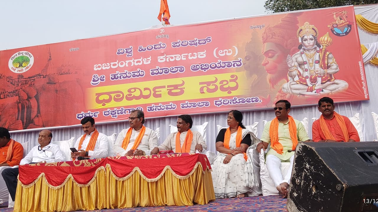 ಅಂಜನಾದ್ರಿಯಲ್ಲಿ ಹನುಮದ್ ವ್ರತಾಚರಣೆ ಹಿನ್ನೆಲೆಯಲ್ಲಿ ಗಂಗಾವತಿಯ ಜಗಜೀವನ್ ರಾಮ್ ವೃತ್ತದಲ್ಲಿ ವಿಶ್ವ ಹಿಂದೂ ಪರಿಷತ್ ಮತ್ತು ಬಜರಂಗ ದಳ ವತಿಯಿಂದ ಧಾರ್ಮಿಕ ಸಭೆ ಏರ್ಪಡಿಸಲಾಗಿತ್ತು. ವಿಶ್ವ ಹಿಂದೂ ಪರಿಷತ್ನ ದಕ್ಷಿಣ ಪ್ರಾಂತದ ಸಂಪರ್ಕ ಪ್ರಮುಖ ಮಂಜುನಾಥ ಸ್ವಾಮಿ ಸಭೆಯಲ್ಲಿ ಮಾತನಾಡಿ, ಹಿಂದೂಗಳು ಒಗ್ಗಟ್ಟಾಗುವಂತೆ ಕರೆ ನೀಡಿದರು.