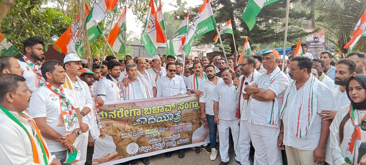 ಅವರು ಪುತ್ತೂರು ತಾಲೂಕಿನ ಕಾವು ಎಂಬಲ್ಲಿ ಮನ್ ರೇಗಾ ಬಚಾವ್ ಸಂಗ್ರಾಮದ ಪಾದಯಾತ್ರೆಗೆ ಚಾಲನೆ ನೀಡಿ ಮಾತನಾಡಿದರು.ಕೇಂದ್ರದ ಬಿಜೆಪಿ ಸರ್ಕಾರ ನರೇಗಾ ಯೋಜನೆಗೆ ಕತ್ತರಿಹಾಕುವ ಮೂಲಕ ಮಹಾತ್ಮಾ ಗಾಂಧಿಯವರ ಹೆಸರನ್ನು ಅಳಿಸಿದ್ದು ಮಾತ್ರವಲ್ಲದೆ ದೇಶದ ಕಟ್ಟಕಡೆಯ ವ್ಯಕ್ತಿಗೂ ಅನ್ಯಾಯ ಮಾಡಿದೆ. ಜಿಲ್ಲೆಗೆ ಇದುವರೆಗೆ ನರೇಗಾ ಯೋಜನೆಯ ಮೂಲಕ ರು.260 ಕೋಟಿ ಕೂಲಿ ನೀಡಲಾಗಿದೆ. ಕೇಂದ್ರದ ಹೊಸ ಕಾನೂನಿನ ಪ್ರಕಾರ ಮುಂದಿನ ದಿನಗಳಲ್ಲಿ ಉದ್ಯೋಗ ಖಾತ್ರಿ ಯೋಜನೆಯಿಂದ ಯಾವುದೇ ಕೂಲಿ, ಕಾಮಗಾರಿ ನಡೆಯುವುದು ಸಾಧ್ಯವಿಲ್ಲ. ಕೇಂದ್ರದ ನಿರ್ಧಾರದ ವಿರುದ್ಧ ಪಕ್ಷಾತೀತವಾಗಿ ದೇಶಾದ್ಯಂತ ಹೋರಾಟ ನಡೆಯುತ್ತಿರುವುದು ಉತ್ತಮ ಬೆಳವಣಿಗೆಯಾಗಿದೆ. ಬಡವರ ಪರ ಕಾಂಗ್ರೆಸ್ ಮಾತ್ರ ಎಂಬುದನ್ನು ದೇಶದ ಜನತೆ ಅರ್ಥಮಾಡಿಕೊಂಡಿದ್ದಾರೆ ಎಂದು ಶಾಸಕರು ಹೇಳಿದರು. ಪಾದಯಾತ್ರೆಯು ಕಾವಿನಿಂದ ಕುಂಬ್ರ ತನಕ ನಡೆಯಿತು. ನೂರಾರು ಮಂದಿ ಪಾದಯಾತ್ರೆಯಲ್ಲಿ ಭಾಗವಹಿಸಿದರು.