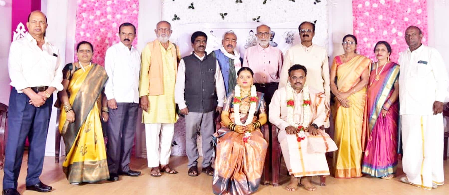 ನಗರದ ಬನ್ನೂರು ರಸ್ತೆ ಹಾಲಿನ ಡೈರಿ ಪಕ್ಕದಲ್ಲಿರುವ ಶಿಕ್ಷಕರ ಭವನದ ಸಭಾಂಗಣದಲ್ಲಿ ಟಿ.ಎಸ್. ಪ್ರಸೇನ್ ಜಿತ್ ಮತ್ತು ಪಿ. ನಿಕಿತಾ ಅವರು ಭಾನುವಾರ ಕುವೆಂಪು ಮಂತ್ರಮಾಂಗಲ್ಯದ ಆಶಯದಂತೆ ದಾಂಪತ್ಯ ಜೀವನಕ್ಕೆ ಕಾಲಿಟ್ಟರು.ವಧುವರರಿಗೆ ಮಂತ್ರ ಮಾಂಗಲ್ಯ ಪ್ರಮಾಣ ವಚನವನ್ನು ಬೋಧಿಸಿದ ಭಾರತೀಯ ವಿಚಾರವಾದಿ ವೇದಿಕೆಯ ಅಧ್ಯಕ್ಷ ಪ್ರೊ. ನರೇಂದ್ರನಾಯಕ್ ಮಾತನಾಡಿ, ಮದುವೆ ಎನ್ನುವುದು ಆಡಂಬರ ಮತ್ತು ಮೌಢ್ಯದಿಂದ ಕೂಡಿರಬಾರದು. ಪರಸ್ಪರ ಪ್ರೀತಿ ವಿಶ್ವಾಸಗಳಿದ್ದರೆ ಸಾಕು. ತಾಳಿ ಎಂಬ ಕಟ್ಟುಪಾಡು ಸಹ ಅಗತ್ಯವಿಲ್ಲ ಎಂದರು.45 ವರ್ಷಗಳ ಹಿಂದೆ ನಾನು ತಾಳಿ ಕಟ್ಟದೆ ಮದುವೆಯಾಗಿ ಸುಖವಾಗಿ ದಾಂಪತ್ಯ ನಡೆಸಿದ್ದೇನೆ. ದ್ವಿಜ ಎಂದು ಕರೆಯಲ್ಪಡುವ ಬ್ರಾಹ್ಮಣ ಸಮುದಾಯದಲ್ಲಿ ಆಕಸ್ಮಿಕವಾಗಿ ನಾನು ಹುಟ್ಟಿರಬಹುದು. ಆದರೆ, ಆ ಯಾವ ಮೌಢ್ಯದ ಸಂಪ್ರದಾಯವನ್ನೂ ಅನುಸರಿಸದೆ, ವೈಚಾರಿಕವಾಗಿ ಜೀವನ ರೂಪಿಸಿಕೊಂಡಿದ್ದೇನೆ. ದ್ಬಿಜ ಎಂದರೆ ಎರಡು ಸಾರಿ ಜನನ ಎಂದು. ನಾನು ಜನಿಸಿದ್ದು ಒಂದು, ನನ್ನ ವೈಚಾರಿಕ ಬದುಕನ್ನು ರೂಪಿಸಿಕೊಂಡಿದ್ದು ಮತ್ತೊಂದು ಜನನ. ಹೀಗಾಗಿ, ದ್ವಿಜ ಎಂಬ ಪದದ ಅರ್ಥವನ್ನು ಈ ರೀತಿ ಗ್ರಹಿಸಿಕೊಳ್ಳಬಹುದು ಎಂದು ಅವರು ತಿಳಿಸಿದರು.ವರನ ತಂದೆ ಸಿದ್ಧಾರ್ಥ ಮಾತನಾಡಿ, ಎರಡೂ ಕುಟುಂಬಗಳು ವೈಚಾರಿಕ ಆಲೋಚನೆಯನ್ನು ಹೊಂದಿದ್ದು, ನಮ್ಮ ಮಕ್ಕಳೂ ಸಹ ಅದೇ ದಾರಿಯಲ್ಲಿರುವುದರಿಂದ ಇವರ ಮದುವೆಯನ್ನು ಕುವೆಂಪು ಮಂತ್ರಮಾಂಗಲ್ಯದ ಆಶಯದಂತೆ ಮಾಡಲು ನಿರ್ಧರಿಸಲಾಯಿತು ಎಂದರು.ಕುವೆಂಪು ಮಂತ್ರ ಮಾಂಗಲ್ಯದ ವಿವಾಹ ಸಂಹಿತೆಯನ್ನು ಮಾನವ ಮಂಟಪದ ಸಂಚಾಲಕ ಪ್ರೊ.ಕೆ. ಕಾಳಚನ್ನೇಗೌಡ ಓದಿದರು. ರಾಷ್ಟ್ರೀಯ ಲೇಬರ್ ಯುನಿಯನ್ ಅಧ್ಯಕ್ಷ ಶಿಡ್ಲಘಟ್ಟ ಭಕ್ತರಹಳ್ಳಿಯ ಕಾಳಪ್ಪ, ನಿವೃತ್ತ ಉಪನ್ಯಾಸಕಿ ರವಿಕಲಾ, ವಿಚಾರವಾದಿ ಶ್ರೀನಿವಾಸ್ ನಟೇಕರ್, ಈ. ಧನಂಜಯ ಎಲಿಯೂರು, ಹೋರಾಟಗಾರ ಉಗ್ರನರಸಿಂಹೇಗೌಡ, ನಿವೃತ್ತ ಪ್ರಾಧ್ಯಾಪಕಿ ಡಾ. ಲತಾ ಮೈಸೂರು ಮೊದಲಾದವರು ಇದ್ದರು.