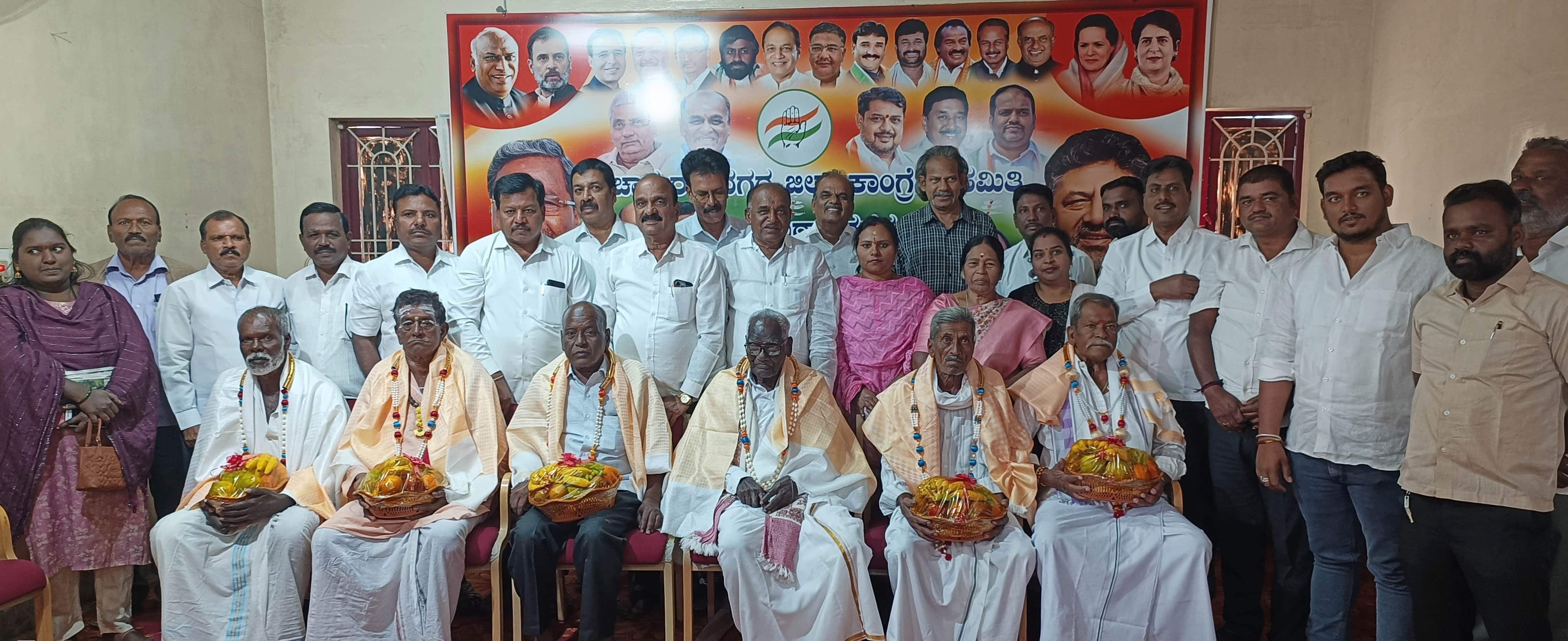 ಜಿಲ್ಲಾ ಕಾಂಗ್ರೆಸ್ ಅಧ್ಯಕ್ಷ ಹಾಗೂ ಕಾಡಾ ಅಧ್ಯಕ್ಷ ಪಿ,ಮರಿಸ್ವಾಮಿ ಮಾತನಾಡಿ, ಕಾಂಗ್ರೆಸ್ ಇತಿಹಾಸವನ್ನು ಹೊಂದಿರುವ ಪಕ್ಷವಾಗಿದ್ದು, ಕಾಂಗ್ರೆಸ್ ದಿಂದ ಪ್ರಧಾನಿಗಳಾಗಿರುವ ಅನೇಕರು ದೇಶದ ಪ್ರಗತಿಗಾಗಿ ಹಲವಾರು ಯೋಜನೆಗಳನ್ನು ಕಾರ್ಯಗತ ಮಾಡಿದ್ದಾರೆ. ಹಸಿರು ಕ್ರಾಂತಿ, ಪಂಚವಾರ್ಷಿಕ ಯೋಜನೆ, ಆಹಾರ ಭದ್ರತೆ, ಉದ್ಯೋಗ ಖಾತರಿ ಯೋಜನೆ, ಅನ್ನದಾಸೋಹ ಸೇರಿದಂತೆ ಹಲವಾರು ಪ್ರಗತಿಪರ ಕಾರ್ಯಕ್ರಮ ರೂಪಿಸಿದ್ದಾರೆ ಎಂದು ಹೇಳಿದರು.ಪಕ್ಷದ ಹಿರಿಯ ಮುಖಂಡರಾದ ಶತಾಯುಷಿ ಬಿಸಲವಾಡಿ ಚನ್ನಬಸಪ್ಪ, ಕೆ.ಕೆ.ಹುಂಡಿ ದೊಡ್ಡೇಗೌಡ, ರಾಚಯ್ಯ ಚಿಕ್ಕಕೆಂಪಿಹುಂಡಿ, ರಂಗಸ್ವಾಮಿ ವೆಂಕಟಯ್ಯನಛತ್ರ, ಅನ್ವರ್ಪಾಷ ಹೆಬ್ಬಸೂರು, ಹೊನ್ನಯ್ಯ ಅವರನ್ನು ಸನ್ಮಾನಿಸಿಲಾಯಿತು.
