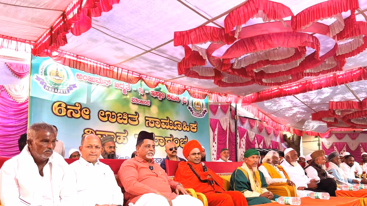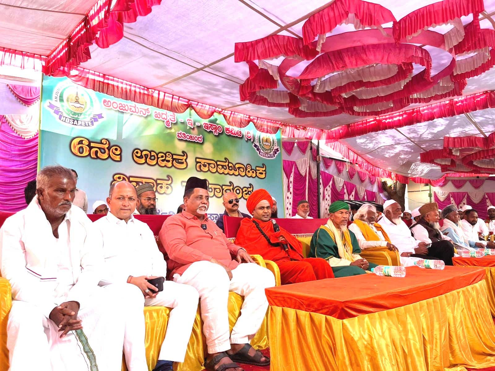 ಹೊಸಪೇಟೆ ಹುಡಾ ಅಧ್ಯಕ್ಷ ಹಾಗೂ ಅಂಜುಮನ್ ಕಮಿಟಿಯ ಅಧ್ಯಕ್ಷ ಎಚ್.ಎನ್. ಮಹಮ್ಮದ್ ಇಮಾಮ್ ನಿಯಾಜಿ ಮಾತನಾಡಿ, ಸಾಮೂಹಿಕ ವಿವಾಹಗಳಿಂದ ವಧು- ವರರ ತಂದೆ, ತಾಯಿಗಳಿಗೆ ಆರ್ಥಿಕ ಭಾರವನ್ನು ಕಡಿಮೆ ಮಾಡಿದಂತಾಗುತ್ತದೆ. ಇನ್ನು ವೈಯಕ್ತಿಕ ವಿವಾಹ ಸಮಾರಂಭಗಳಲ್ಲಿ ಕೇವಲ ಬಂಧುಗಳ ಆಶಿರ್ವಾದವಷ್ಟೇ ಇರುತ್ತದೆ. ಆದರೆ ಇಂತಹ ಸಾಮೂಹಿಕ ವಿವಾಹಗಳಲ್ಲಿ ಎಲ್ಲ ಧರ್ಮ ಗುರುಗಳ ಆಶೀರ್ವಾದ ದೊರೆಯಲಿದೆ ಎಂದರು.ಮುಸ್ಲಿಂ ಸಮುದಾಯದ ಧರ್ಮ ಗುರು ಮೆಹಬೂಬ್ ಪೀರಾ ಸಾಬ್, ಮುಖಂಡರಾದ ಆರ್ ಕೊಟ್ರೇಶ್, ಸಾಲಿ ಸಿದ್ದಯ ಸ್ವಾಮಿ, ಗುಜ್ಜಲ್ ನಾಗರಾಜ್, ರಿಯಾಜ್, ಮುಕ್ತಾರ್, ಎಮ್ ಫಿರೋಜ್ ಖಾನ್, ಎಮ್. ಡಿ. ಅಬೂಬಕ್ಕರ್, ಜಿ. ಅನ್ಸರ್ ಬಾಷಾ, ಡಾ. ಎಂ. ಡಿ. ದುರ್ವೇಶ್ ಮೈನುದ್ದಿನ್ ಮತ್ತಿತರರಿದ್ದರು.