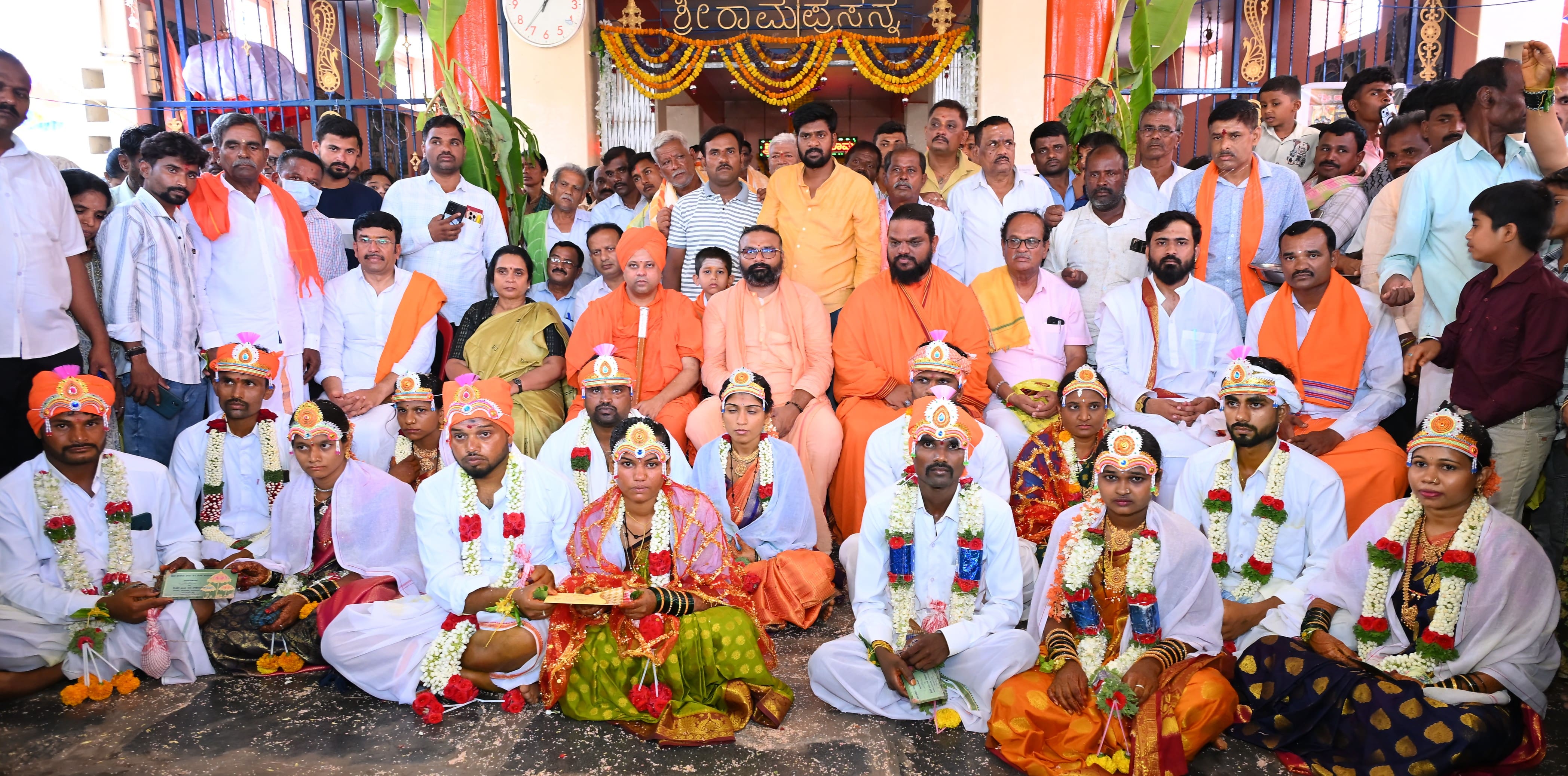 ಶಾಖಾ ಗವಿಮಠದ ಡಾ.ಹಿರಿಶಾಂತವೀರ ಸ್ವಾಮೀಜಿ ಮಾತನಾಡಿ, ನೂತನ ಜೀವನ ಆರಂಭಿಸುತ್ತಿರುವ ದಂಪತಿಗಳು ಗುರು ಹಿರಿಯರನ್ನು ಗೌರವಿಸುವ ಮೂಲಕ ಸಮಾಜದಲ್ಲಿ ಮಾದರಿ ಜೀವನ ನಡೆಸಬೇಕು ಎಂದರು.7 ಜೋಡಿ ನವ ವಧು-ವರರು ಹೊಸ ಜೀವನಕ್ಕೆ ಕಾಲಿಟ್ಟರು. ಕೊಂಬಳಿ ಚೌಕಿಮಠದ ಗಾಡಿತಾತ, ಶ್ರೀರಾಮ ದೇವಸ್ಥಾನದ ಧರ್ಮಕರ್ತ ಡಾ.ರಾಕೇಶಯ್ಯ ರಾಮಸ್ವಾಮಿ, ಹಾಲಸ್ವಾಮಿಮಠದ ಹಾಲಸ್ವಾಮೀಜಿ, ಪ್ರಮುಖರಾದಕೋಡಿಹಳ್ಳಿ ಮುದುಕಪ್ಪ, ಸಂತೋಷ್ ಜೈನ್, ಪುನೀತ್ ಇತರರಿದ್ದರು.