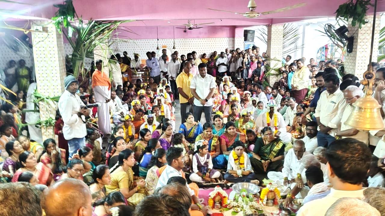 ಕಾರಟಗಿ: ಗ್ರಾಮೀಣ ಪ್ರದೇಶದ ಎಲ್ಲ ಸಮಾಜ ಆರ್ಥಿಕ, ಸಾಮಾಜಿಕವಾಗಿ ಬೆಳೆಯಲು ಸಾಮೂಹಿಕ ವಿವಾಹಗಳು ಹೆಚ್ಚು ಹೆಚ್ಚು ಆಗುವುದರ ಮೂಲಕ ಹಳ್ಳಿಗಳು ಸಾಮರಸ್ಯವಾಗಿ ಬೆಳೆಯುತ್ತವೆ ಮತ್ತು ಬೆಸೆಯುತ್ತವೆ ಎಂದು ಸಂಸ್ಥಾನ ಬುಕ್ಕಸಾಗರದ ಕರಿಸಿದ್ದೇಶ್ವರ ಶಿವಾಚಾರ್ಯ ಸ್ವಾಮೀಜಿಗಳು ಹೇಳಿದರು.