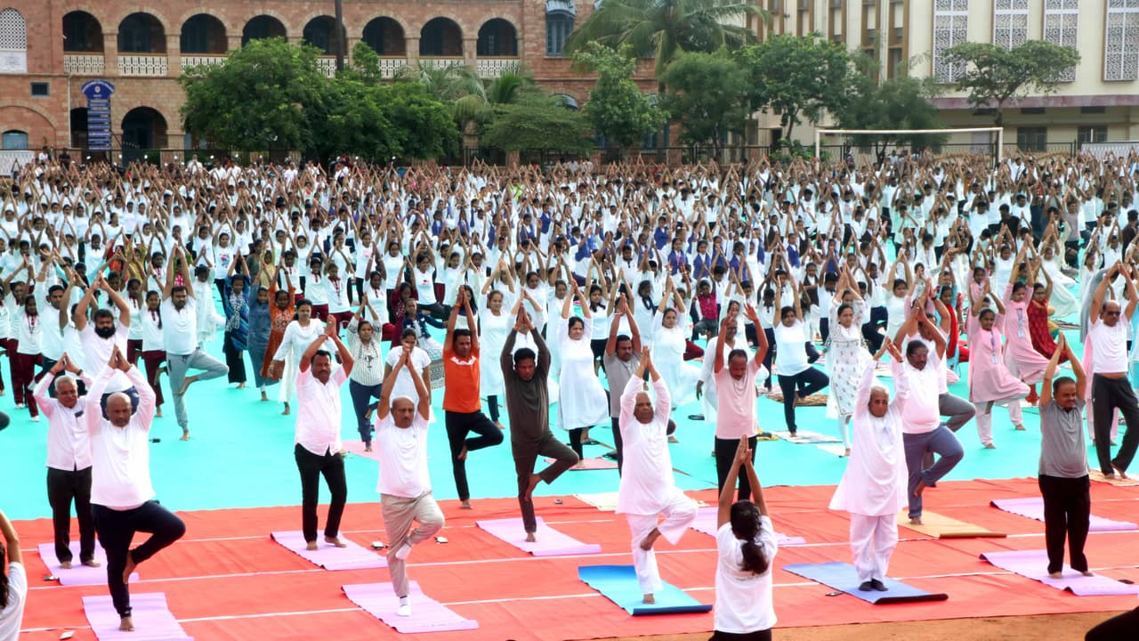 10ನೇ ಅಂತಾರಾಷ್ಟ್ರೀಯ ಯೋಗ ದಿನಾಚರಣೆ ಅಂಗವಾಗಿ ಬಸವೇಶ್ವರ ವೀರಶೈವ ವಿದ್ಯಾವರ್ಧಕ ಸಂಘದ ಆವರಣದಲ್ಲಿ ದೇಶದ ಐಕ್ಯ ಮಂತ್ರ ಪಠಿಸಿ ಸಾಮೂಹಿಕ ಯೋಗ ಪ್ರದರ್ಶನ ಮಾಡಲಾಯಿತು.