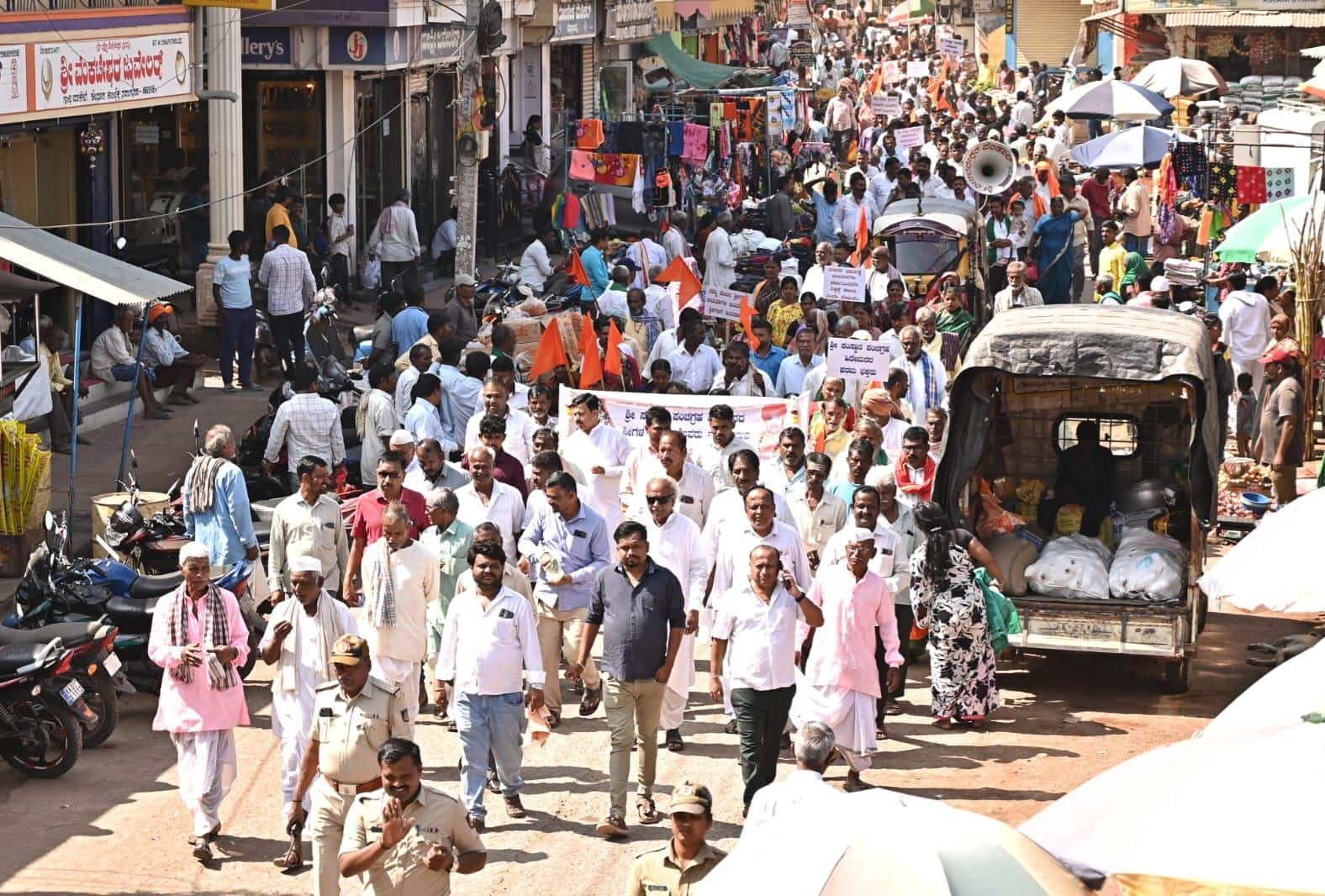 ಸ್ಥಳೀಯ ಇತಿಹಾಸ ಪ್ರಸಿದ್ಧ ಪಂಚಗ್ರಹ ಹಿರೇಮಠ ಹಾಗೂ ಮಠದ ಶ್ರೀಗಳ ವಿರುದ್ಧ ಕೆಲವರು ನಡೆಸುತ್ತಿರುವ ಅಪಪ್ರಚಾರ ಖಂಡಿಸಿ ಶ್ರೀಮಠದ ಸಾವಿರಾರು ಭಕ್ತರು ಮಂಗಳವಾರ ಪಟ್ಟಣದ ಪ್ರಮುಖ ಬೀದಿಗಳಲ್ಲಿ ಬೃಹತ್ ಪ್ರತಿಭಟನೆ ನಡೆಸಿದರು.ಪಂಚಗ್ರಹ ಹಿರೇಮಠವು ಕಳೆದ ಹಲವಾರು ವರ್ಷಗಳಿಂದ ಅನ್ನ ಹಾಗೂ ಅಕ್ಷರ ದಾಸೋಹ ನಡೆಸುತ್ತಾ ಬಂದಿದ್ದು, ಭವ್ಯ ಪರಂಪರೆ ಹೊಂದಿದೆ. ಪ್ರಸ್ತುತ ಇರುವ ಪೀಠಾಧ್ಯಕ್ಷ ಸಿದ್ದೇಶ್ವರ ಶ್ರೀಗಳು ಕಳೆದ 34 ವರ್ಷಗಳಿಂದ ಶಿಕ್ಷಣ ಸಂಸ್ಥೆಗಳನ್ನು ಕಟ್ಟಿ ಬೆಳೆಸಿದ್ದಲ್ಲದೇ 6 ಶಾಖಾ ಮಠಗಳನ್ನು ನಿರ್ಮಿಸಿ ತಾಲೂಕಿನಾದ್ಯಂತ ಅಧ್ಯಾತ್ಮ, ಪ್ರವಚನ ನೀಡುವ ಮೂಲಕ ಮನುಕುಲವನ್ನು ಮುನ್ನಡೆಸುತ್ತಾ ಬಂದಿದ್ದಾರೆ. ತಮ್ಮ ಅನಾರೋಗ್ಯದ ದೃಷ್ಟಿಯಿಂದ ನೂತನ ಉತ್ತರಾಧಿಕಾರಿ ನೇಮಕ ಮಾಡಲು ಬಯಸಿದಂತೆ ಜ. ಪಂಚ ಪೀಠಾಧೀಶರ ಸೂಚನೆ ಹಾಗೂ ಮಠದ ಭಕ್ತರ ಆಶಯವಂತೆ ಉತ್ತರಾಧಿಕಾರಿಗಳನ್ನು ನೇಮಕ ಮಾಡಲು ತೀರ್ಮಾನಿಸಿದ್ದು, ತಾಲೂಕಿನ ಎಲ್ಲ ಭಕ್ತರ ಬೆಂಬಲ ವ್ಯಕ್ತವಾಗಿದೆ. ಹೀಗಿದ್ದಾಗ್ಯೂ ಮಠದ ಏಳ್ಗೆ ಸಹಿಸದ ಕೆಲ ಹಿತಾಸಕ್ತಿಗಳು ಮಠದ ವಿರುದ್ಧ ಅಪಪ್ರಚಾರ ನಡೆಸುತ್ತಿದ್ದಾರೆ ಎಂದು ಕಿಡಿಕಾರಿದರು.