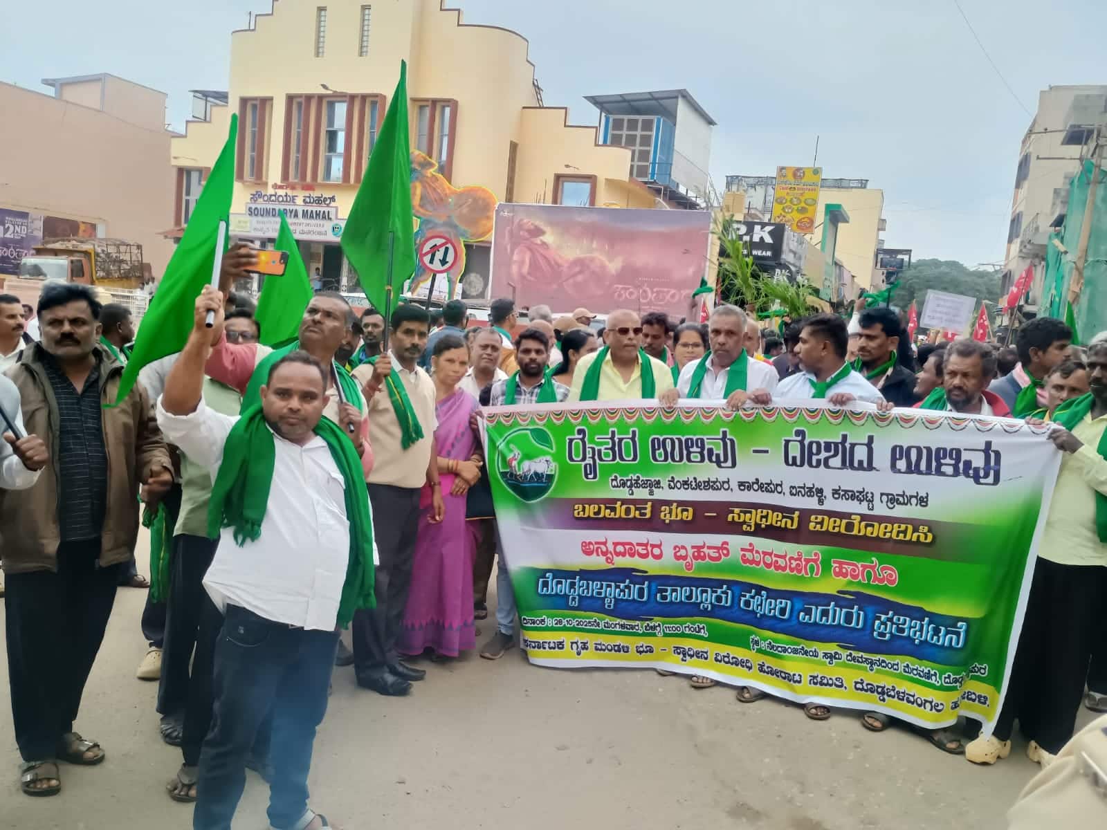 28ಕೆಡಿಬಿಪಿ2- ದೊಡ್ಡಬಳ್ಳಾಪುರದಲ್ಲಿ ಭೂಸ್ವಾಧೀನ ವಿರೋಧಿಸಿ ಅನ್ನದಾತರ ಬೃಹತ್ ಪ್ರತಿಭಟನೆ ನಡೆಯಿತು.)