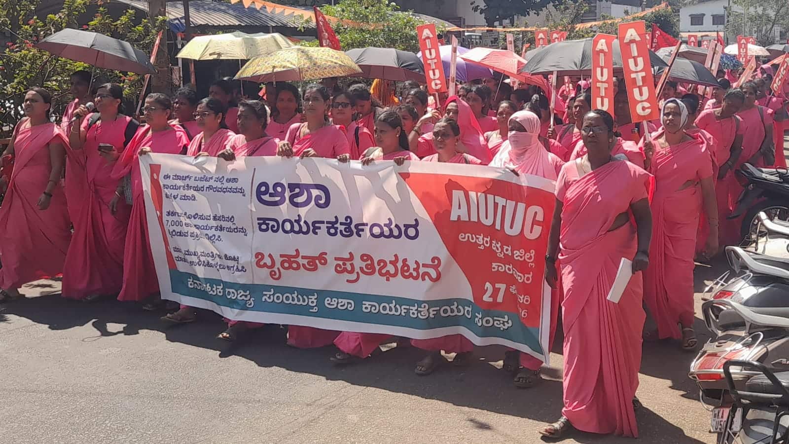 ಕಾರವಾರ: ರಾಜ್ಯ ಬಜೆಟ್ನಲ್ಲಿ ಗೌರವಧನ ಹೆಚ್ಚಳ ಹಾಗೂ ವಿವಿಧ ನ್ಯಾಯಯುತ ಬೇಡಿಕೆಗಳನ್ನು ಈಡೇರಿಸುವಂತೆ ಒತ್ತಾಯಿಸಿ ಕರ್ನಾಟಕ ರಾಜ್ಯ ಸಂಯುಕ್ತ ಆಶಾ ಕಾರ್ಯಕರ್ತರ ಸಂಘದ ಜಿಲ್ಲಾ ಸಮಿತಿ ವತಿಯಿಂದ ಶುಕ್ರವಾರ ನಗರದಲ್ಲಿ ಬೃಹತ್ ಪ್ರತಿಭಟನಾ ಮೆರವಣಿಗೆ ನಡೆಸಲಾಯಿತು.ನಗರದ ಬಸ್ ನಿಲ್ದಾಣದಿಂದ ಜಿಲ್ಲಾಧಿಕಾರಿ ಕಚೇರಿ ವರೆಗೆ ನಡೆದ ಈ ಮೆರವಣಿಗೆಯಲ್ಲಿ ನೂರಾರು ಆಶಾ ಕಾರ್ಯಕರ್ತೆಯರು ಸರ್ಕಾರದ ವಿರುದ್ಧ ಘೋಷಣೆ ಕೂಗಿ ಆಕ್ರೋಶ ವ್ಯಕ್ತಪಡಿಸಿದರು.