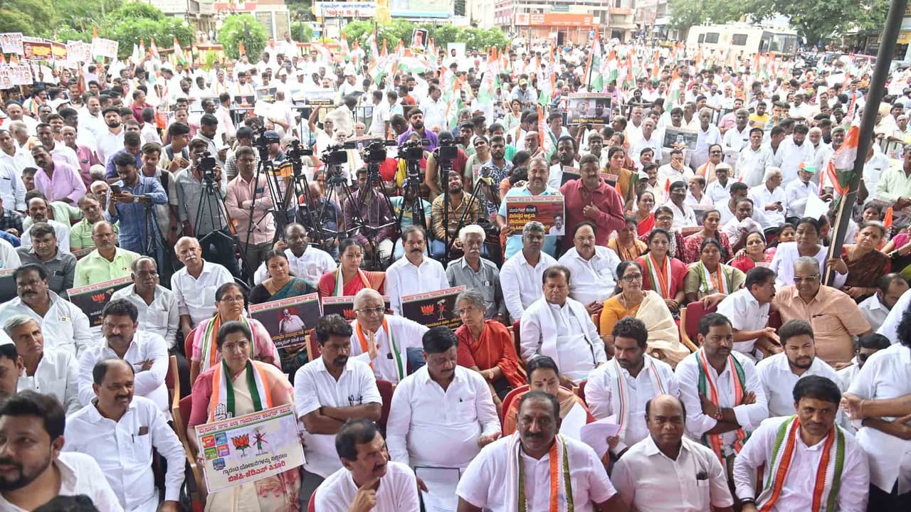ಮುಖ್ಯಮಂತ್ರಿ ಸಿದ್ದರಾಮಯ್ಯ ವಿರುದ್ಧ ರಾಜ್ಯಪಾಲರು ಪ್ರಾಸಿಕ್ಯೂಷನ್ಗೆ ಅನುಮತಿ ನೀಡಿದ್ದನ್ನು ವಿರೋಧಿಸಿ ಹಾಗೂ ರಾಜ್ಯಪಾಲರನ್ನು ಕರ್ನಾಟಕದಿಂದ ವಾಪಸ್ ಕರೆಯಿಸಿಕೊಳ್ಳುವಂತೆ ಒತ್ತಾಯಿಸಿ ರಾಜ್ಯಪಾಲ ಹಠಾವೋ- ಕರ್ನಾಟಕ ಬಚಾವೋ ಹೆಸರಿನಲ್ಲಿ ಕಾಂಗ್ರೆಸ್ ಕಾರ್ಯಕರ್ತರು ಮತ್ತು ಪಕ್ಷದ ನಾಯಕರು ಬೃಹತ್ ಪ್ರತಿಭಟನೆ ನಡೆಸಿದರು.ಎಂಡಿಎ ಹಗರಣಕ್ಕೆ ಸಂಬಂಧಿಸಿದಂತೆ ರಾಜ್ಯಪಾಲರ ಈ ನಡೆ ವಿರೋಧಿಸಿ ಕಾಂಗ್ರೆಸ್ ಆಯೋಜಿಸಿದ್ದ ಈ ಬೃಹತ್ ಹೋರಾಟಕ್ಕೆ ಜಿಲ್ಲೆಯ ಎಚ್.ಡಿ.ಕೋಟೆ, ಟಿ.ನರಸೀಪುರ, ವರುಣ, ನಂಜನಗೂಡು, ಕೆ.ಆರ್.ನಗರ, ಹುಣಸೂರು, ಪಿರಿಯಾಪಟ್ಟಣ ಮುಂತಾದ ಕಡೆಯಿಂದ ನೂರಾರು ಬಸ್, ಟೆಂಪೋ ಮತ್ತು ಕಾರುಗಳಲ್ಲಿ ಸಾವಿರಾರು ಮಂದಿ ಕಾರ್ಯಕರ್ತರು ಮತ್ತು ಪಕ್ಷದ ಅಭಿಮಾನಿಗಳು ಗಾಂಧಿ ಚೌಕಕ್ಕೆ ಆಗಮಿಸಿದರು.