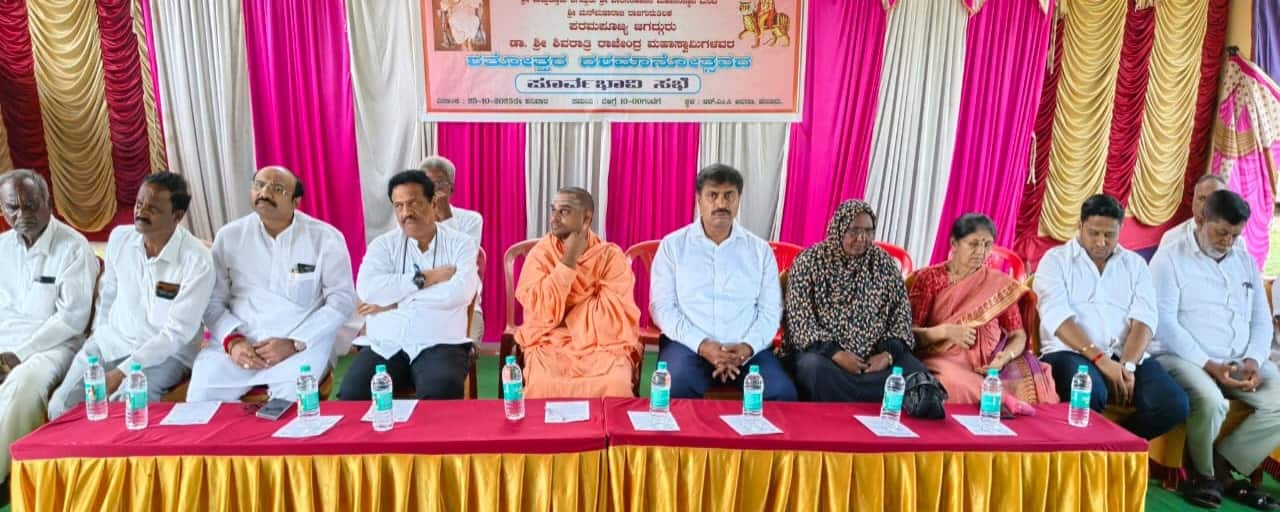 ಸುತ್ತೂರು ಶ್ರೀ ಶಿವರಾತ್ರಿ ರಾಜೇಂದ್ರ ಸ್ವಾಮಿಗಳ ಜಯಂತಿ ಅರ್ಥ ಪೂರ್ಣವಾಗಿ ಆಚರಣೆಯಾಗಬೇಕು ಶಾಸಕ ಎಂ.ಆರ್ ಮಂಜುನಾಥ್ ತಿಳಿಸಿದರು.ಶ್ರೀ ಶಿವರಾತ್ರಿ ರಾಜೇಂದ್ರ ಸ್ವಾಮಿಗಳ 110ನೇ ಜಯಂತಿಯ ಆಚರಣೆ ಸಂಬಂಧ ಪಟ್ಟಣದ ಹೊರವಲಯದ ಆರ್.ಎಂ.ಸಿ ಆವರಣದಲ್ಲಿ ಆಯೋಜಿಸಲಾಗಿದ್ದ ಪೂರ್ವಭಾವಿ ಸಭೆಯಲ್ಲಿ ಅವರು ಮಾತನಾಡಿ ಶ್ರೀ ಗಳ ಶತೋತ್ತರ ದಶಮಾನೋತ್ಸವ ಕಾರ್ಯವನ್ನು ಅಯೋಜಿಸುತ್ತಿರುವುದು ನಮ್ಮೆಲ್ಲರ ಸೌಭಾಗ್ಯವಾಗಿದೆ. ಈ ಭಾಗಕ್ಕೆ ಶ್ರೀ ಮಠದ ಕೊಡುಗೆ ಅಪಾರವಾಗಿದೆ ಎಂದು ತಿಳಿಸಿದರು.ರಾಜೇಂದ್ರ ಶ್ರೀಗಳು ಮಾಡಿದ ಕೆಲಸ ಕಾರ್ಯ ಎಲ್ಲಾರಿಗೂ ಮಾದರಿಯಾಗಿರವಂತಹದು , ಪೂರ್ವಭಾವಿ ಸಭೆಗೆ ಎಲ್ಲಾ ಸಮಾಜದ ಮುಖಂಡರುಗಳು ಬಂದಿರುವುದು ಹೆಮ್ಮೆಯ ವಿಷಯವಾಗಿದೆ. ಆ ದಿನವು ಇತಿಹಾಸ ಸೃಷ್ಟಿಯಾಗಬೇಕು , ಈಗಿನ ಶ್ರೀ ಗಳ ಆರ್ಶಿವಾದದಿಂದ ಯಶಸ್ವಿಯಾಗಿ ಮಾಡೋಣ ಸಂಪೂರ್ಣವಾಗಿ ನನ್ನ ಸಹಕಾರ ನೀಡುತ್ತೇನೆಂದು ತಿಳಿಸಿದರು.