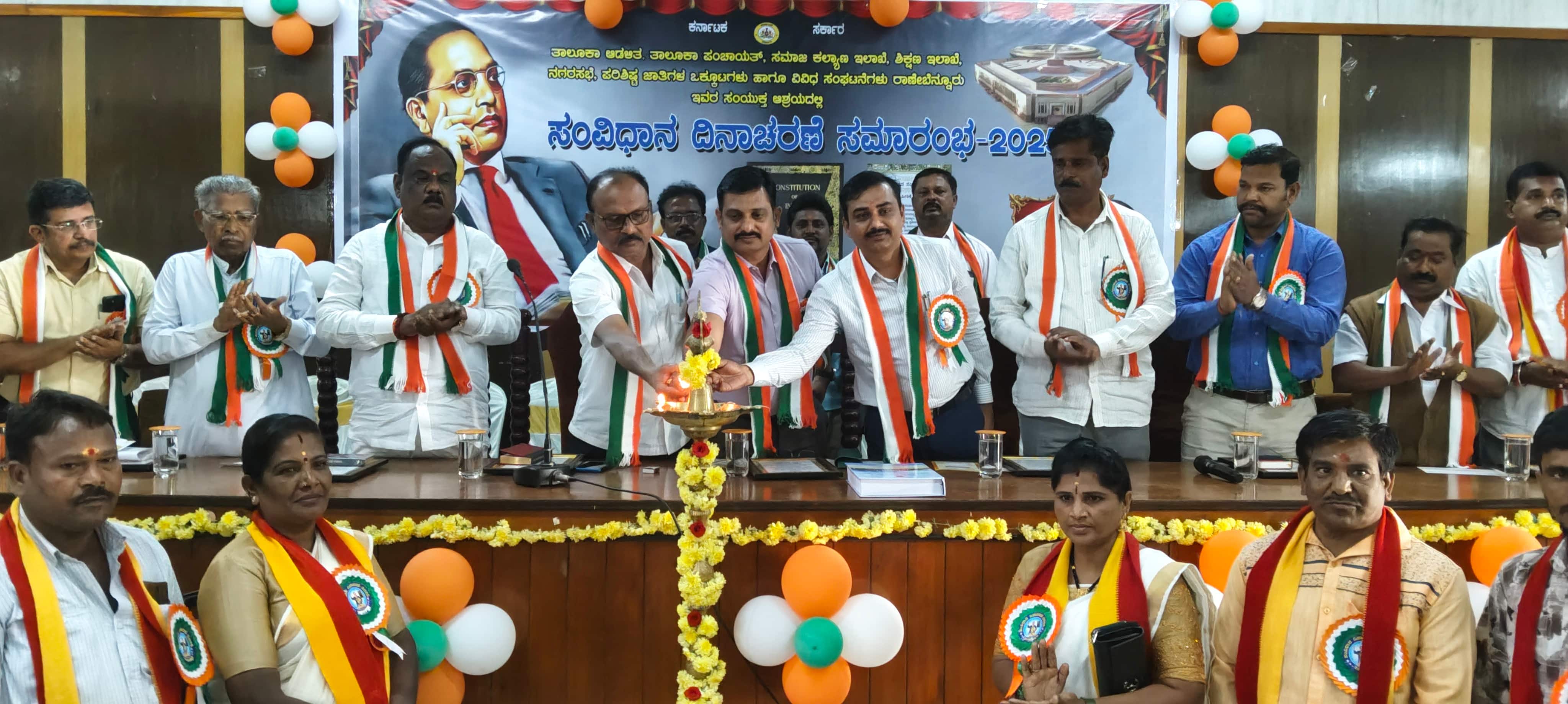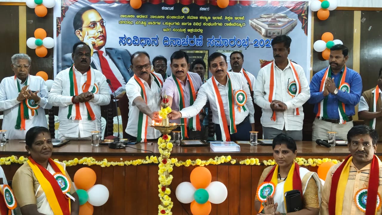ತಹಸೀಲ್ದಾರ್ ಆರ್.ಎಚ್. ಭಾಗವಾನ ಅಧ್ಯಕ್ಷತೆ ವಹಿಸಿದ್ದರು. ಆರ್ಟಿಇಎಸ್ ಪದವಿ ಮಹಾವಿದ್ಯಾಲಯದ ಉಪನ್ಯಾಸಕ ಶಿವಕುಮಾರ ಬೆಣ್ಣಿ ಉಪನ್ಯಾಸ ನೀಡಿದರು. ತಾಪಂ ಇಒ ವೆಂಕಟೇಶ ಸಣ್ಣಬಿದರಿ, ಬಿಇಒ ಶ್ಯಾಮಸುಂದರ ಅಡಿಗ, ನಗರಸಭೆ ಆಯುಕ್ತ ಫಕ್ಕಿರಪ್ಪ ಇಂಗಳಗಿ, ಪಿಎಲ್ಡಿ ಅಧ್ಯಕ್ಷ ಕರೇಗೌಡ ಬಾಗೂರ, ನಗರಸಭೆ ಸದಸ್ಯ ಪ್ರಕಾಶ ಪೂಜಾರ, ರವೀಂದ್ರಗೌಡ ಪಾಟೀಲ, ನಿತ್ಯಾನಂದ ಕುಂದಾಪುರ, ರಮೇಶ ಕೊರವರ, ಗಣೇಶ ಗೋಣಿಬಸಮ್ಮನವರ, ಮಲ್ಲೇಶಪ್ಪ ಮದ್ಲೇರ ಮತ್ತು ಇತರರಿದ್ದರು.ಸಮಾರಂಭದ ಪ್ರಯುಕ್ತ ಏರ್ಪಡಿಸಲಾಗಿದ್ದ ವಿವಿಧ ಸ್ಪರ್ಧೆಗಳಲ್ಲಿ ವಿಜೇತರಾದ ವಿದ್ಯಾರ್ಥಿಗಳಿಗೆ ಬಹುಮಾನ ವಿತರಿಸಲಾಯಿತು. ಇದಕ್ಕೂ ಪೂರ್ವದಲ್ಲಿ ನಗರಸಭೆ ಕಚೇರಿಯಿಂದ ತಾಪಂ ಕಚೇರಿಯವರಿಗೂ ರಾಷ್ಟ್ರಧ್ವಜ, ಸಂವಿಧಾನ ಪುಸ್ತಕ ಪ್ರದರ್ಶನ ಸಮೇತ ಶಾಲಾ-ಕಾಲೇಜು ಮಕ್ಕಳೊಂದಿಗೆ ಜಾಥಾ ನಡೆಯಿತು.