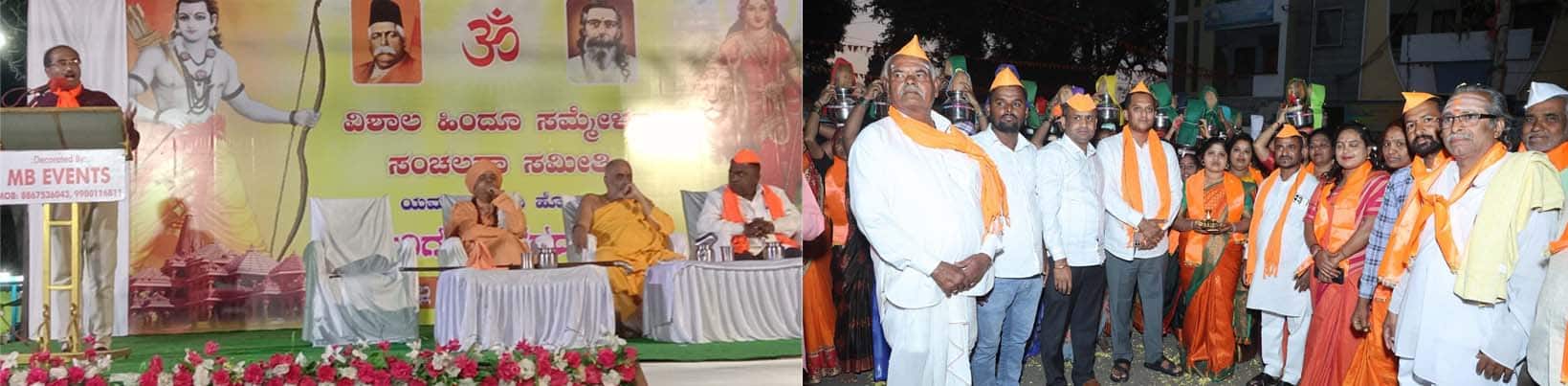 ಭಾರತದ ಸ್ವಾತಂತ್ರ್ಯಕ್ಕಾಗಿ ಸಾವಿರಾರು ಕ್ರಾಂತಿಕಾರರು ಹೋರಾಡಿ ಪ್ರಾಣತ್ಯಾಗ ಮಾಡಿದ್ದಾರೆ. ಇಂತಹ ಶ್ರೇಷ್ಠವಾದ ಸಂಸ್ಕೃತಿಯುಳ್ಳ ಹಿಂದೂ ಧರ್ಮವನ್ನು ಶಕ್ತಿಶಾಲಿ ಮಾಡಬೇಕಾಗಿದೆ. ಹಿಂದೂ ಎನ್ನುವುದಕ್ಕೆ ನಾಚಿಕೆ ಪಡುವುದಲ್ಲ ಪುಣ್ಯದ ಶಬ್ದವಾಗಿದೆ ಎಂದು ರಾಷ್ಟ್ರೀಯ ಸ್ವಯಂ ಸೇವಕ ಸಂಘದ ಬೆಳಗಾವಿ ವಿಭಾಗದ ಕಾರ್ಯಕಾರಣಿ ಸದಸ್ಯ ದೇವಿಪ್ರಸಾದ ಕುಲಕರ್ಣಿ ಹೇಳಿದರು.ಯಮಕನಮರಡಿಯಲ್ಲಿ ಗುರುವಾರ ಆಯೋಜಿಸಿದ್ದ ವಿಶಾಲ ಹಿಂದೂ ಸಮ್ಮೇಳನದಲ್ಲಿ ಅವರು ಮಾತನಾಡಿದರು. ನಾವು ಹಿಂದೂಗಳೆಂದು ಹೆಮ್ಮೆಯಿಂದ ಗರ್ವದಿಂದ ಹೇಳಬೇಕು. ವಿಶಾಲವಾದ ಸಂಸ್ಕೃತಿ, ಸಂಸ್ಕಾರಯುತ ಹಿಂದೂ ಧರ್ಮವನ್ನು ಉಳಿಸಲು ಹಿಂದೂ ಧರ್ಮದ ಬಾಂಧವರಲ್ಲಿ ಶಕ್ತಿ ತುಂಬಲು ದೇಶದಲ್ಲೆಡೆ ವಿಶಾಲ ಹಿಂದೂ ಸಮ್ಮೇಳನವನ್ನು ಆಯೋಜನೆ ಮಾಡಲಾಗುತ್ತಿದೆ. ಜಾತಿ, ಭಾಷೆ ಆಧಾರದ ಮೇಲೆ ಒಡಕು ಹುಟ್ಟು ಹಾಕಿ ಧರ್ಮ ಪರಿತವರ್ತನೆ ಮಾಡುವ ದುಸ್ಸಾಹಸವನ್ನು ಕೆಲವರು ಮಾಡಿದ್ದಾರೆ. ಸಾಮರಸ್ಯ, ಸ್ವಧರ್ಮ ಪಾಲನೆ ಸ್ವದೇಶಿ ವಸ್ತುಗಳನ್ನು ಬಳಕೆ ಮಾಡಬೇಕು. ಹಿಂದೂ ಧರ್ಮವು ಸಂಸ್ಕೃತಿಕಯ ಪ್ರತೀಕವಾಗಿದೆ ಎಂದು ಹೇಳಿದರು.ಗದಗದ ಜಗದ್ಗರು ಶ್ರೀಶಿವಾನಂದ ಬೃಹನ್ಮಠದ ಸದಾಶಿವಾನಂದ ಮಹಾಸ್ವಾಮಿಗಳು ಮಾತನಾಡಿ, ಋಷಿಮುನಿಗಳ ಪುಣ್ಯತಾಣವಾಗಿರುವ ಭಾರತ ದೇಶದಲ್ಲಿ ಹಿಂದೂ ಧರ್ಮ ಹುಟ್ಟಿದೆ. ಜಗತ್ತಿನಲ್ಲಿ ಎಲ್ಲಿಯೂ ಕೂಡಾ ಯಾವ ಧರ್ಮವಿಲ್ಲ. ಅಲ್ಲಿ ಕೇವಲ ಜಾತಿ, ಪಂಥ, ಸಂಪ್ರದಾಯ ಮಾತ್ರ ಇದೆ. ಕೆಲವರು ನಾವು ಹಿಂದೂಗಳು ಎಂದು ಹೇಳಿಕೊಳ್ಳಲು ಹಿಂಜರಿಯುತ್ತಿದ್ದಾರೆ ಎಂದರು.ಹತ್ತರಗಿ-ಯಮಕನಮರಡಿ ಹರಿಮಂದಿರದ ಡಾ.ಆನಂದ ಮಹಾರಾಜ ಗೋಸಾವಿ ಸಾನಿದ್ಯ ವಹಿಸಿದ್ದರು. ವಿಶಾಲ ಹಿಂದೂ ಸಮ್ಮೇಳನದ ಅಧ್ಯಕ್ಷ ಶಿವಾನಂದ ಬಾಗೇವಾಡಿ ಪ್ರಾಸ್ತಾವಿಕವಾಗಿ ಮಾತನಾಡಿದರು. ಈರಣ್ಣ ಗುರವ ಸ್ವಾಗತಿಸಿದರು. ಗ್ರಾಮದ ಬನಶಂಕರಿ ದೇವಿ ಮಂದಿರದಿಂದ ವೇದಿಕೆಯವರೆಗೆ ಶೋಭಾಯಾತ್ರೆ ನಡೆಸಲಾಯಿತು.ವೈಷ್ಣವಿ ನೃತ್ಯಾಲಯ ತಂಡದವರಿಂದ, ಶಾರದಾಂಬಾ ನಾಟ್ಯಾಲಯ ಪಾಶ್ಚಾಪೂರದ ಶಾಯಶ್ರಿ, ಶಾಂತಲಾ ಇವರಿಂದ ಸ್ವಾಗತ ನೃತ್ಯ ನಡೆಯಿತು. ಈ ವೇಳೆಯಲ್ಲಿ ಹುಕ್ಕೇರಿ ಗ್ರಾಮೀಣ ವಿದ್ಯುತ್ ಸಂಘದ ನಿರ್ದೇಶಕ ಪೃಥ್ವಿ ಕತ್ತಿ, ಕಲಗೌಡ ಪಾಟೀಲ, ರಾಜ್ಯ ಬಿಜೆಪಿ ಎಸ್ಟಿ ಮೋರ್ಚಾ ಪ್ರಧಾನ ಕಾರ್ಯದರ್ಶಿ ಬಸವರಾಜ ಹುಂದ್ರಿ, ಮಾರುತಿ ಅಷ್ಟಗಿ, ರವೀಂದ್ರ ಬಣಜಿ, ಶ್ರೀಶೈಲ ಮಠಪತಿ, ನಾಗೇಶ ಬಡಿಗೇರ, ಬಸವರಾಜ ಬರಗಾಲಿ, ಸಂತೋಷ ಚಿಕ್ಕೋಡಿ, ವಿಶಾಲ ಅತ್ತಿಮರದ, ನಾರಾಯಣ ಭಂಗಿ ಮತ್ತು ಸಮಸ್ತ ಹಿಂದೂ ಬಾಂಧವರು, ವಿವಿಧ ಸಂಘಟನೆಗಳ ಮುಖಂಡರು, ಗ್ರಾಮಸ್ಥರು ಭಾಗವಹಿಸಿದ್ದರು. ರಾಜು ಕುಂಬಾರ ನಿರೂಪಿಸಿದರು. ವೈಷ್ಣವಿ ಕುಂಬಾರ ವಂದೇ ಮಾತರಂ ಗೀತೆ ಹಾಡಿದರು.