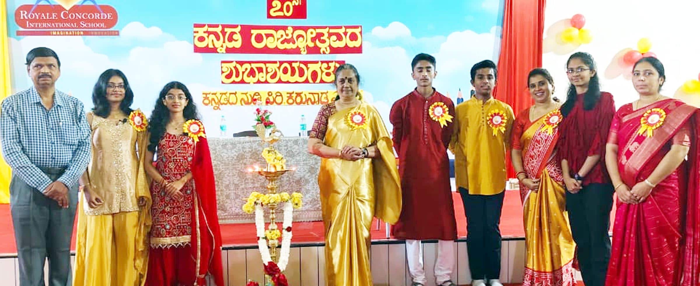 ನಗರದ ರಾಯಲ್ ಕಾನ್ಕರ್ಡ್ ಅಂತಾರಾಷ್ಟ್ರೀಯ ಶಾಲೆಯಲ್ಲಿ ಬುಧವಾರ ಕನ್ನಡ ರಾಜ್ಯೋತ್ಸವವನ್ನು ಅರ್ಥಪೂರ್ಣವಾಗಿ ಆಚರಿಸಲಾಯಿತು.ನಾಡಿನ ಕಲೆ, ಇತಿಹಾಸ, ಸಂಸ್ಕೃತಿಯನ್ನು ವಿದ್ಯಾರ್ಥಿಗಳು ತಮ್ಮ ನೃತ್ಯ- ಹಾಡಿನ ಮೂಲಕ ಪರಿಚಯಿಸಿದರು. ಜೊತೆಗೆ ಕನ್ನಡದ ನೆಲ-ಜಲ- ಭಾಷೆ- ಸಾಹಿತ್ಯ-ಸಂಸ್ಕೃತಿ-ರಾಜಮಹಾರಾಜರನ್ನು ಪರಿಚಯಿಸುವ ವಸ್ತು ಪ್ರದರ್ಶನವನ್ನು ಕೂಡ ಏರ್ಪಡಿಸಲಾಗಿತ್ತು.