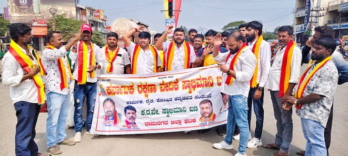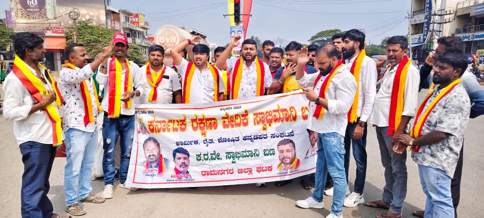 ರಾಮನಗರದ ಐಜೂರು ವೃತ್ತದಲ್ಲಿ ಕರ್ನಾಟಕ ರಕ್ಷಣಾ ವೇದಿಕೆ ಸ್ವಾಭಿಮಾನಿ ಬಣದ ಕಾರ್ಯಕರ್ತರು ಸಂಭ್ರಮಾಚರಣೆ ಮಾಡಿದರು.;Resize=(128,128))