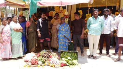 ತ್ಯಾಮಗೊಂಡ್ಲು ಗ್ರಾಮ ಪಂಚಾಯಿತಿ ಪಿಡಿಒ ರೇಖಾ ವಿರುದ್ಧ ಗ್ರಾಮ ಸದಸ್ಯರೊಂದಿಗೆ ಬೀದಿಬದಿ ವ್ಯಾಪಾರಿಗಳು ಹಣ್ಣು, ತರಕಾರಿ ಸುರಿದು ಪ್ರತಿಭಟನೆ ನಡೆಸಿದರು.