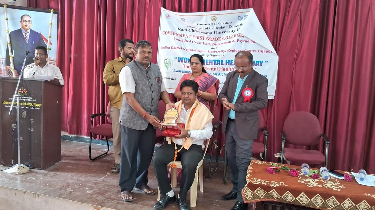 ಮನುಷ್ಯನಿಗೆ ಮಾನಸಿಕ ಆರೋಗ್ಯವು ಅತ್ಯವಶ್ಯಕವಾಗಿದ್ದು, ಒತ್ತಡರಹಿತ ಅಥವಾ ಆರೋಗ್ಯಕರವಾದ ದಿನಚರಿ ಮತ್ತು ಸೂಕ್ತ ಚಿಕಿತ್ಸೆ ಮೂಲಕ ಪಡೆಯುವುದರೊಂದಿಗೆ ಮಾನಸಿಕ ಆರೋಗ್ಯ ಕಾಪಾಡಿಕೊಳ್ಳಲು ಸಾಧ್ಯವಿದೆ ಎಂದು ಬಿಎಲ್ಡಿಇ ಆಸ್ಪತ್ರೆಯ ಮನಶಾಸ್ತ್ರ ವಿಭಾಗದ ಸಹ ಪ್ರಾಧ್ಯಾಪಕ, ಮನೋಲಯ ಆಸ್ಪತ್ರೆಯ ಮುಖ್ಯಸ್ಥ ಡಾ.ಮನೋವಿಜಯ ಬ.ಕಳಸಗೊಂಡ ಹೇಳಿದರು.ಸರ್ಕಾರಿ ಪ್ರಥಮ ದರ್ಜೆ ಕಾಲೇಜು ವಿಜಯಪುರ, ಯುವ ರೆಡ್ ಕ್ರಾಸ್ ಘಟಕ, ಮನಃಶಾಸ್ತ್ರ ವಿಭಾಗ ಹಾಗೂ ಇಂದಿರಾಗಾಂಧಿ ರಾಷ್ಟ್ರೀಯ ಮುಕ್ತ ವಿಶ್ವವಿದ್ಯಾನಿಲಯ ಪ್ರಾದೇಶಿಕ ಕೇಂದ್ರ ವಿಜಯಪುರ ಸಂಯುಕ್ತ ಆಶ್ರಯದಲ್ಲಿ ವಿಶ್ವ ಮಾನಸಿಕ ಆರೋಗ್ಯ ದಿನಾಚರಣೆ-2024 ಹಾಗೂ ಮದ್ಯಪಾನ ಮತ್ತು ಮದ್ದಿನ ವ್ಯಸನದ ದುಷ್ಪರಿಣಾಮಗಳ ಅರಿವು ಕಾರ್ಯಕ್ರಮದಲ್ಲಿ ಮಾತನಾಡಿದ ಅವರು, ಸದೃಢ ಸಮಾಜಕ್ಕೆ ದೈಹಿಕ ಆರೋಗ್ಯದೊಂದಿಗೆ ಮಾನಸಿಕ ಆರೋಗ್ಯ ಮುಖ್ಯವಾಗಿರುತ್ತದೆ. ದೈಹಿಕ ಆರೋಗ್ಯಕ್ಕಾಗಿ ಯಾವ ರೀತಿ ನಾವು ಕಾಳಜಿ, ವಿಶ್ರಾಂತಿ ಮತ್ತು ಚಿಕಿತ್ಸೆ ಪಡೆಯುತ್ತೇವೋ ಹಾಗೆಯೇ ಮಾನಸಿಕ ಆರೋಗ್ಯಕ್ಕೂ ಇದೆಲ್ಲವುದರ ಅವಶ್ಯಕತೆ ಇದೆ ಎಂಬುವುದು ಅರಿತಿರುವುದು ತುಂಬಾ ಕಡಿಮೆ. ಮಾನಸಿಕ ಖಾಯಿಲೆಗೂ ಚಿಕಿತ್ಸೆ ಇದೆ ಎಂಬುವುದು ಮತ್ತು ಇತ್ತೀಚಿನ ದಿನಗಳಲ್ಲಿ ಶಾಲಾ, ಕಾಲೇಜು ಮಕ್ಕಳು ಅತಿಯಾಗಿ ವ್ಯಸನದ ತೊಂದರೆಗಳಿಗೆ ಒಳಗಾಗುತ್ತಿರುವುದು ಕುರಿತು ವಿವರಿಸಿದರು.ಕಾಲೇಜಿನ ಬಿಎ ವಿಭಾಗದ 5ನೇ ಸೆಮೀಸ್ಟರ್ ವಿದ್ಯಾರ್ಥಿನಿ ನಸಿಮಾ ಚಪ್ಪರಬಂದ ಜಿಲ್ಲಾಮಟ್ಟದ ಪ್ರಬಂಧ ಸ್ಪರ್ಧೆಯಲ್ಲಿ ಪ್ರಥಮ ಸ್ಥಾನ ಹಾಗೂ ರಾಜ್ಯಮಟ್ಟದ ಪ್ರಬಂಧ ಸ್ಪರ್ಧೆಯಲ್ಲಿ ತೃತೀಯ ಸ್ಥಾನ ಪಡೆದ ಹಿನ್ನೆಲೆಯಲ್ಲಿ ಮನೋಲಯ ಆಸ್ಪತ್ರೆಯ ಮುಖ್ಯಸ್ಥ ಡಾ.ಮನೋವಿಜಯ ಕಳಸಗೊಂಡರವರು ₹5000 ಪ್ರೋತ್ಸಾಹಧನ ನೀಡಿ ಅಭಿನಂದಿಸಿದರು.ಕಾಲೇಜಿನ ಪ್ರಾಂಶುಪಾಲ ಡಾ.ಎಂ.ಐ.ಹಂಜಗಿ ಅಧ್ಯಕ್ಷತೆ ವಹಿಸಿ ಮಾನಸಿಕ ಆರೋಗ್ಯದ ಮಹತ್ವದ ಕುರಿತು ಮಾತನಾಡಿದರು. ಅತಿಥಿಗಳಾಗಿ ಡಾ.ಬಿ.ಎನ್.ದೇವಿಂದ್ರ ಸಹಾಯಕ ಪ್ರಾದೇಶಿಕ ನಿರ್ದೆಶಕರು ಇಗ್ನೊ ಭಾಗವಹಿಸಿದ್ದರು.ಮನಃಶಾಸ್ತ್ರ ವಿಭಾಗ ಮುಖ್ಯಸ್ಥ ಡಾ.ವಿಶಾಲಾಕ್ಷಿ ಹೊನ್ನಾಕಟ್ಟಿ ಕಾರ್ಯಕ್ರಮ ಆಯೋಜಿಸಿದ್ದರು. ವಾಣಿಜ್ಯಶಾಸ್ತ್ರ ವಿಭಾಗದ ಮುಖ್ಯಸ್ಥ ಪ್ರೊ.ಎಂ.ಎಸ್.ಖೊದ್ನಾಪೂರ ನಿರೂಪಿಸಿದರು. ಭೌತಶಾಸ್ತ್ರ ಸಹಾಯಕ ಪ್ರಾಧ್ಯಪಕ ಪ್ರೊ.ಸುನೀಲಕುಮಾರ ತೊಂಟಾಪುರ ಸ್ವಾಗತಿಸಿದರು. ಕನ್ನಡ ವಿಭಾಗದ ಮುಖ್ಯಸ್ಥ ಡಾ.ರೋಹಿಣಿ ಹಿರೇರೆಡ್ಡಿ ಅತಿಥಿಗಳನ್ನು ಪರಿಚಯಿಸಿದರು. ಸಹ ಪ್ರಾಧ್ಯಾಪಕ ಡಾ.ಚಂದ್ರಕಾಂತ.ಬಿ ವಂದನಾರ್ಪಣೆ ಮಾಡಿದರು. ಕಾರ್ಯಕ್ರಮದಲ್ಲಿ ಕಾಲೇಜಿನ ಸಿಬ್ಬಂದಿ ಮತ್ತು ವಿದ್ಯಾರ್ಥಿಗಳು ಉಪಸ್ಥಿತರಿದ್ದರು.ಕೋಟ್...