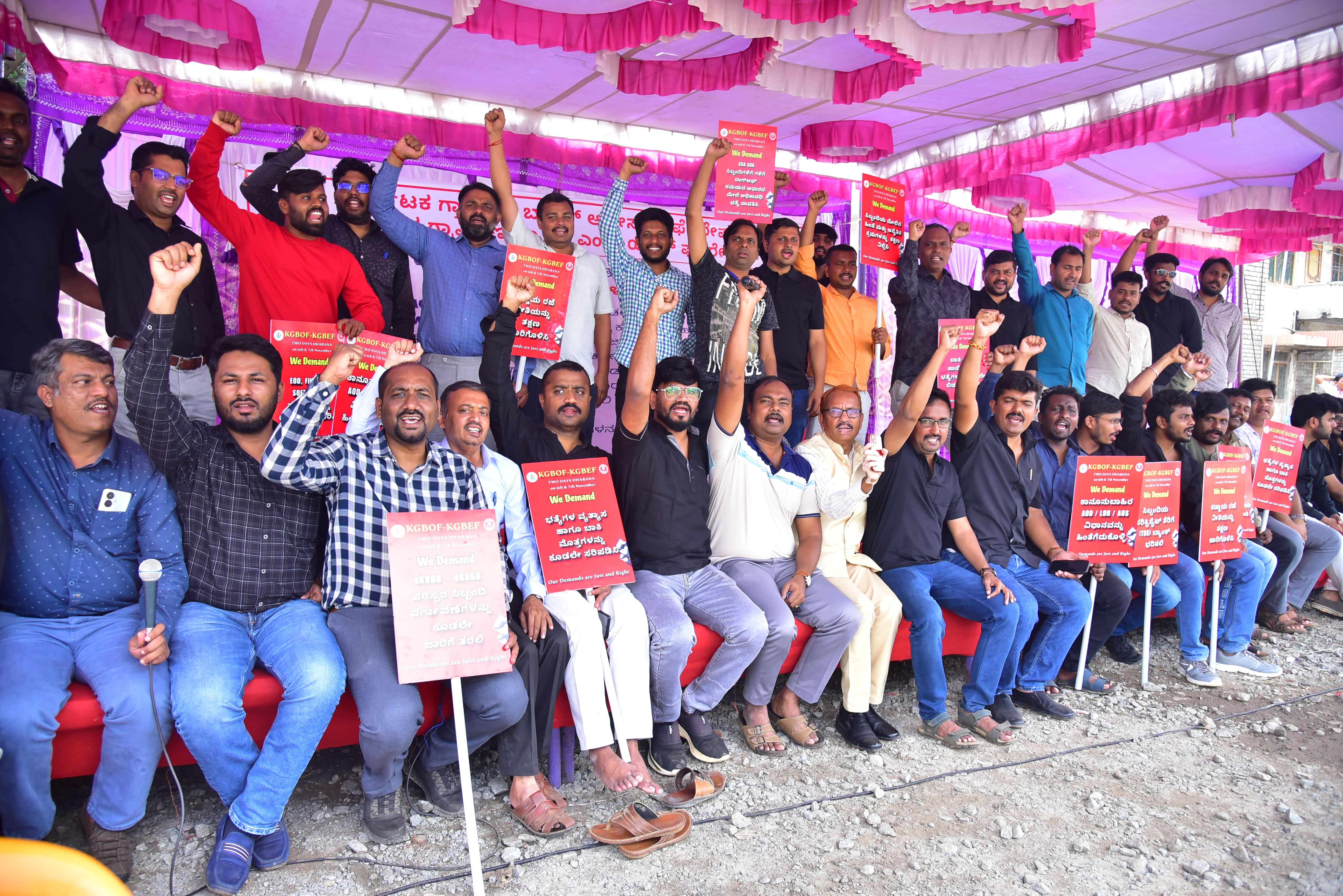 ಕೆಜಿಬಿಒಎಫ್ ಅಧ್ಯಕ್ಷ ಲಿಂಗರಾಜ್ ರೊಡ್ಡನವರ ಮಾತನಾಡಿದರು. ಪ್ರಧಾನ ಕಾರ್ಯದರ್ಶಿ ಸಾಗರ ಶಹಾ ಮಾತನಾಡಿದರು. ಕೆಜಿಬಿಇಎಫ್ ಅಧ್ಯಕ್ಷ ಅಂಬೇಕರ್, ಪ್ರಧಾನ ಕಾರ್ಯದರ್ಶಿ ಸಾಗರ ಜಾಧವ್, ಬ್ಯಾಂಕ್ನ ವಿವಿಧ ಶಾಖೆಗಳ ಸಿಬ್ಬಂದಿ, ಅಧಿಕಾರಿಗಳು ಪ್ರತಿಭಟನೆಯಲ್ಲಿ ಭಾಗವಹಿಸಿದ್ದರು.ಕರ್ನಾಟಕ ಗ್ರಾಮೀಣ ಬ್ಯಾಂಕ್ ಅಧಿಕಾರಿಗಳ ಫೆಡರೇಶನ್ (ಕೆಜಿಬಿಒಎಫ್) ಮತ್ತು ಕರ್ನಾಟಕ ಗ್ರಾಮೀಣ ಬ್ಯಾಂಕ್ ನೌಕರರ ಫೆಡರೇಶನ್ (ಕೆಜಿಬಿಇಎಫ್), ಕರ್ನಾಟಕ ಗ್ರಾಮೀಣ ಬ್ಯಾಂಕಿನ ನೌಕರರು ಜಂಟಿಯಾಗಿ ಪ್ರತಿಭಟನೆ ಸಂಘಟಿಸಿದ್ದು, ಎರಡು ದಿನಗಳ ಕಾಲ ಪ್ರತಿಭಟನೆ ನಡೆಯಲಿದೆ.