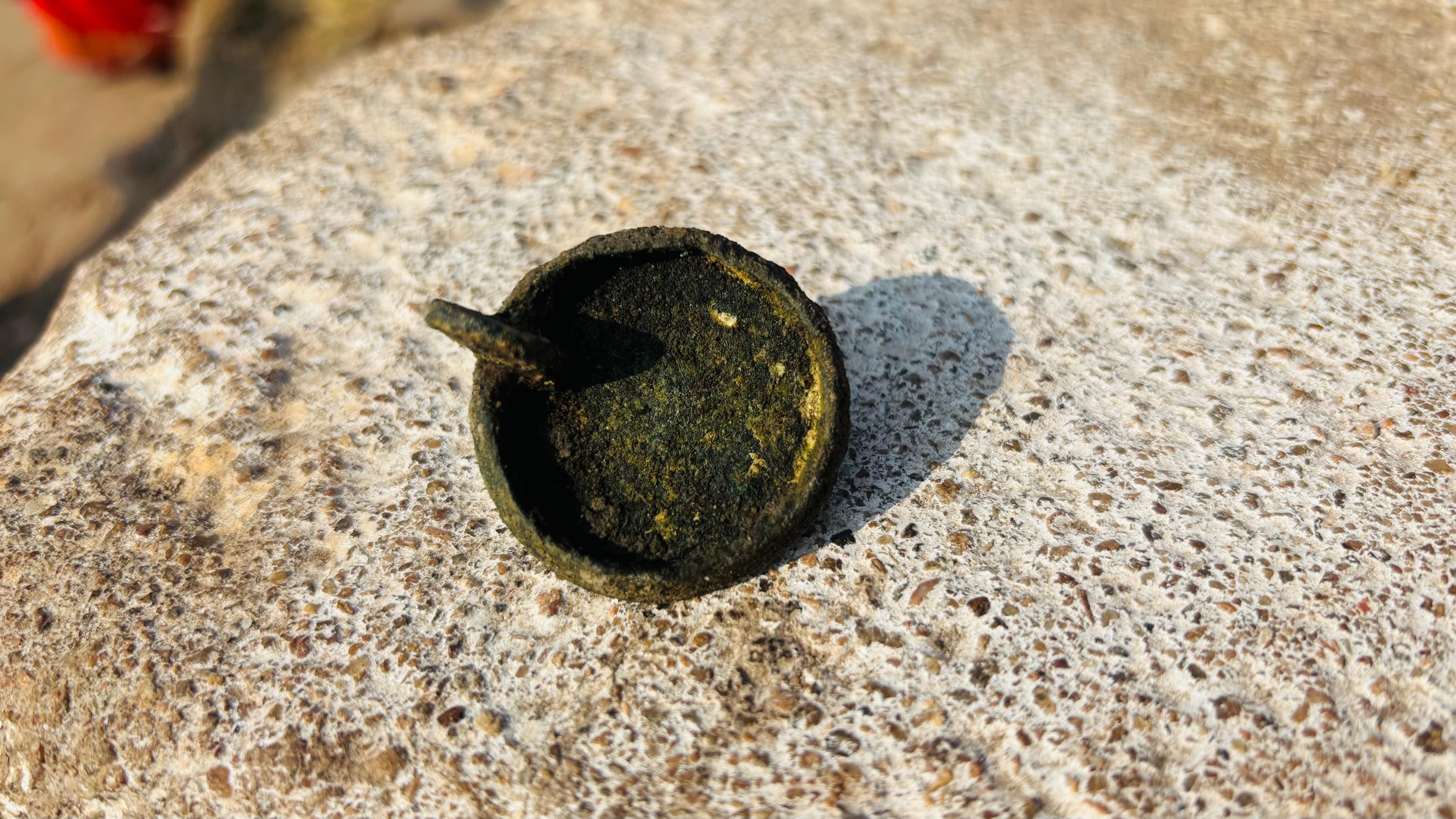 7ನೇ ದಿನದ ಉತ್ಖನನದ ಆರಂಭದಲ್ಲಿಯೇ ವಿಶಿಷ್ಟವಾದ ಲೋಹದ ತುಂಡೊಂದು ಗೋಚರವಾಗಿದೆ. ಇದು ಹಣತೆಯ ಆಕಾರದಲ್ಲಿದ್ದು, ಹಿಂದೆ ದೇವಸ್ಥಾನಗಳಲ್ಲಿ ಅಥವಾ ಶುಭ ಕಾರ್ಯಗಳಲ್ಲಿ ಕರ್ಪೂರ ಬೆಳಗಲು ಬಳಸುತ್ತಿದ್ದ ಉಪಕರಣವಾಗಿರಬಹುದು ಎಂದು ವಿಶ್ಲೇಷಿಸಲಾಗಿದೆ.