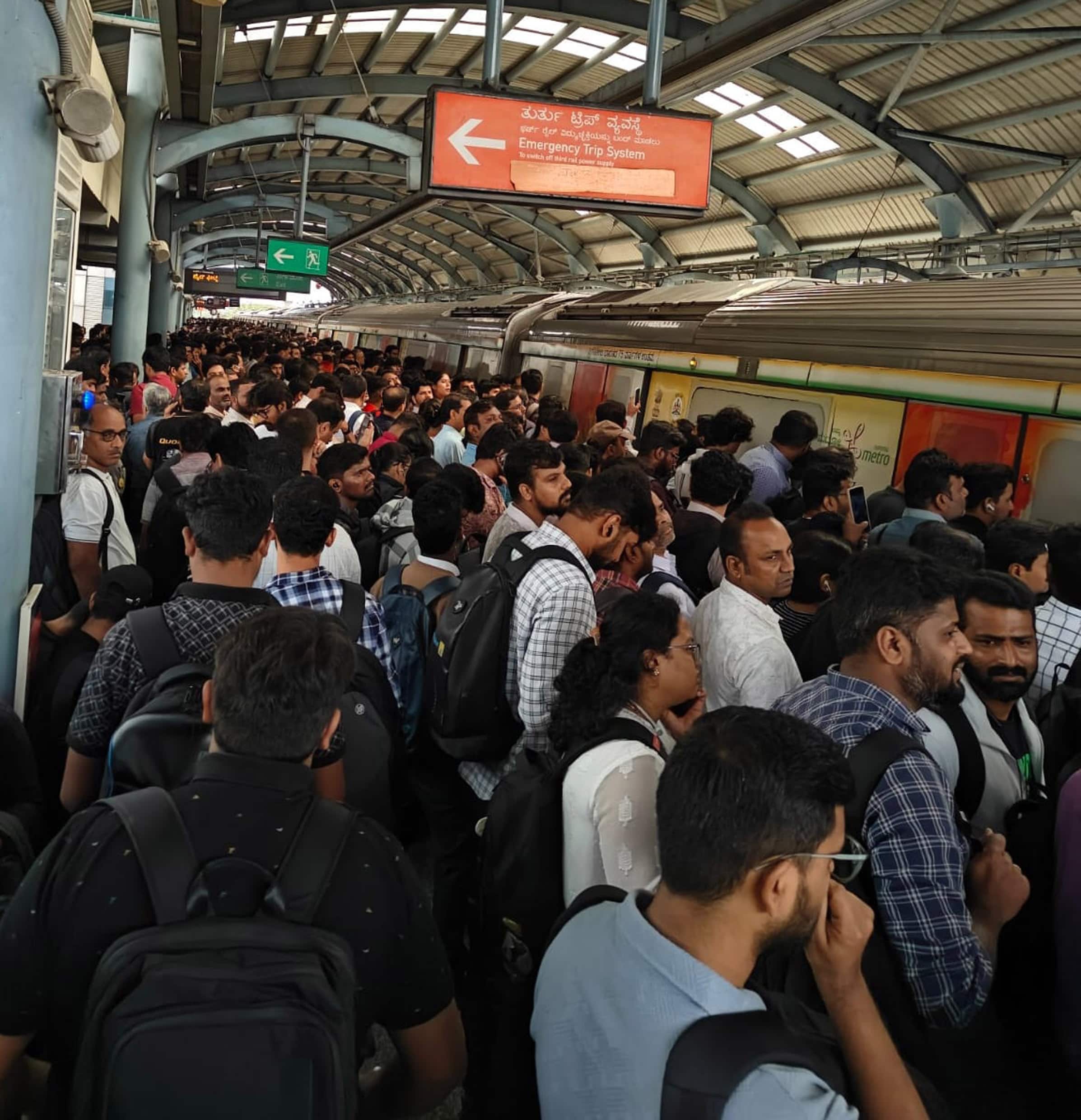ಎರಡೂ ಮಾರ್ಗದ ನಿಲ್ದಾಣಗಳಲ್ಲಿ ವಿಶೇಷವಾಗಿ ಮೆಜೆಸ್ಟಿಕ್ ನಿಂದ ವಿಜಯನಗರದವರೆಗೆ ಪ್ರಯಾಣಿಕರ ತೀವ್ರ ದಟ್ಟಣೆ ಉಂಟಾಗಿತ್ತು. ರೈಲು ಸಂಚಾರ ಆರಂಭವಾದ ಬಳಿಕ ರೈಲುಗಳು ಪ್ರಯಾಣಿಕರ ದಟ್ಟಣೆಯಿಂದ ರೈಲುಗಳೆಲ್ಲ ಭರ್ತಿಯಾಗಿದ್ದವು. ಹೆಚ್ಚಿನ ಪ್ರಯಾಣಿಕರು ಒಳಗೆ ಬರದಂತೆ ಮತ್ತು ಜನದಟ್ಟಣೆ ಹೆಚ್ಚಾಗದಂತೆ ತಡೆಯಲು ಅನೇಕ ನಿಲ್ದಾಣಗಳಲ್ಲಿ ಭದ್ರತಾ ಸಿಬ್ಬಂದಿ ನಿಲ್ದಾಣದ ದ್ವಾರಗಳನ್ನು ಮುಚ್ಚಿದ್ದರು.