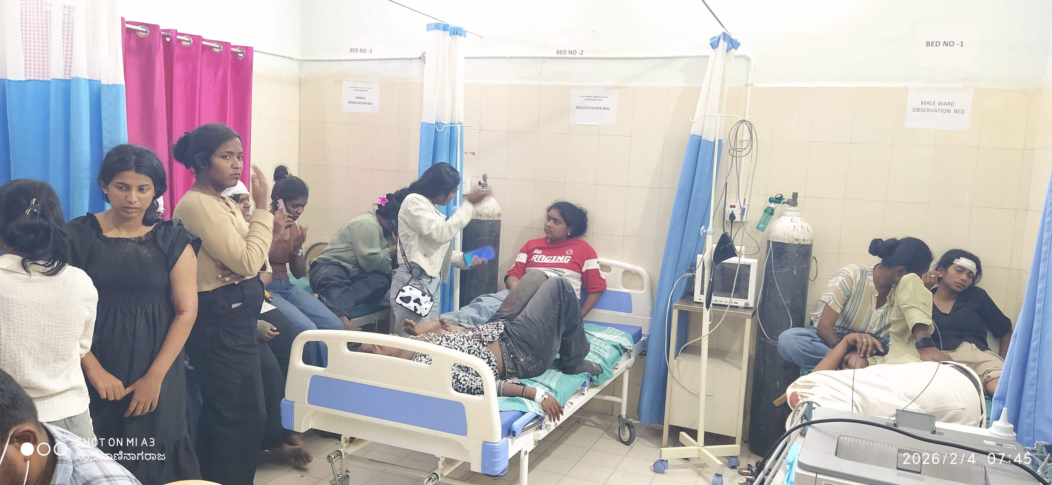 ಘಟನೆ ವಿವರ:ಕೇರಳದ ಶ್ರೀ ಕೃಷ್ಣ ಪಿ.ಜಿ. ಹಾಗೂ ಡಿಗ್ರಿ ಕಾಲೇಜಿನ ವಿದ್ಯಾರ್ಥಿಗಳಿಗೆ ಪ್ರವಾಸ ಏರ್ಪಡಿಸಲಾಗಿದ್ದು, ಕೇರಳದಿಂದ ರೈಲಿನ ಮೂಲಕ ಮಂಗಳೂರಿಗೆ ಬಂದು ಅಲ್ಲಿಂದ ಮಿನಿ ಬಸ್ ವ್ಯವಸ್ಥೆ ಮಾಡಿಕೊಂಡಿದ್ದರು. ಬಸ್ನಲ್ಲಿ 33 ವಿದ್ಯಾರ್ಥಿಗಳು ಓರ್ವ ಎಚ್ಒಡಿ, ಬಸ್ಸಿನ ಇಬ್ಬರು ಚಾಲಕರು ಓರ್ವ ಸಹಾಯಕ ಸೇರಿ 36 ಜನರಿದ್ದರು. ಕೂಡ್ಲಿಗಿ ಸಮೀಪದ ಅಮ್ಮನಕೆರೆ ಕ್ರಾಸ್ ಬಳಿಯ ರಾಷ್ಟ್ರೀಯ ಹೆದ್ದಾರಿ 50ರಲ್ಲಿ ಬುಧವಾರ ನಸುಕಿನ ಜಾವ 5.30 ರ ವೇಳೆಗೆ ಚಾಲಕ ನಿಯಂತ್ರಣ ತಪ್ಪಿ ಪಲ್ಟಿಯಾಗಿದೆ. ತಕ್ಷಣ ಹೈವೇ ಪೆಟ್ರೋಲಿಂಗ್, ಟೋಲ್ ಆ್ಯಂಬುಲೆನ್ಸ್, ಕೂಡ್ಲಿಗಿ 108ರ ಅಂಬ್ಯುಲೆನ್ಸ್ನಲ್ಲಿ ಸುಮಾರು 20ಕ್ಕೂ ಹೆಚ್ಚು ಗಾಯಳುಗಳನ್ನು ಕರೆತಂದು ಕೂಡ್ಲಿಗಿ ಸರ್ಕಾರಿ ಆಸ್ಪತ್ರೆಗೆ ದಾಖಲಿಸಲಾಗಿದೆ. ಲಕ್ಷ್ಮೀ ಎನ್ನುವವರು ಪಲ್ಟಿಯಾದ ಬಸ್ಸಿನಡಿ ಸಿಲುಕಿದ್ದು ಅವರನ್ನು ಹೊರತೆಗೆಯಲು ಸ್ಥಳೀಯರು, ಟೋಲ್ ಸಿಬ್ಬಂದಿ ಪೊಲೀಸರು ಹರಸಾಹಸ ಪಟ್ಟು ನಂತರ ಕ್ರೇನ್ ಮೂಲಕ ಬಸ್ ಎತ್ತಿ ರಕ್ಷಿಸಲಾಯಿತು. ಮಹಿಳೆಯ ಎಡಗಾಲು ಸಂಪೂರ್ಣ ತುಂಡಾಗಿದೆ ಎಂದು ತಿಳಿದಿದೆ. ಡಾ. ಮಧು ಸೇರಿದಂತೆ ಸಿಬ್ಬಂದಿ ಗಾಯಳುಗಳಿಗೆ ಚಿಕಿತ್ಸೆ ನೀಡಿದರು.