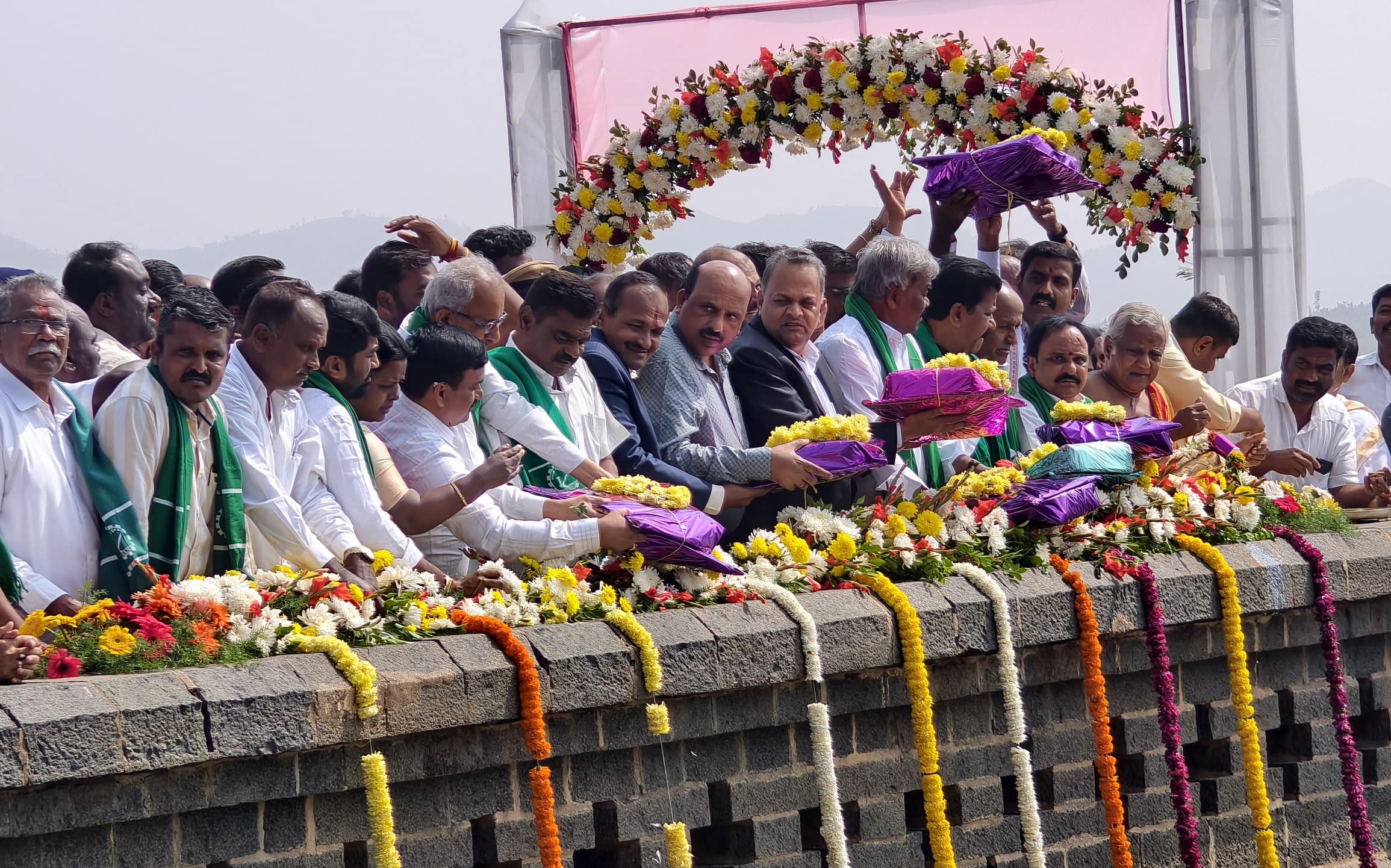 ವಾಣಿವಿಲಾಸ ಸಾಗರ ಜಲಾಶಯ ಭರ್ತಿಯಾದ ಹಿನ್ನಲೆ ಯೋಜನೆ ಮತ್ತು ಸಾಂಖ್ಯಿಕ ಸಚಿವ ಹಾಗೂ ಜಿಲ್ಲಾ ಉಸ್ತುವಾರಿ ಸಚಿವ ಡಿ.ಸುಧಾಕರ್ ಅವರು ಭಾನುವಾರ ಬಾಗಿನ ಅರ್ಪಣೆ ಮಾಡಿದರು.ತರಹೇವಾರಿ ಪುಷ್ಪಗಳಿಂದ ಅಲಂಕಾರಗೊಂಡಿದ್ದ ವಿವಿ ಸಾಗರ ಜಲಾಶಯದ ಅಣೆಕಟ್ಟೆ ಮೇಲಿಂದ ಸಚಿವ ಡಿ.ಸುಧಾಕರ್ ಹಾಗೂ ಶಾಸಕ ಬಿ.ಜಿ.ಗೋವಿಂದಪ್ಪ, ಟಿ.ರಘುಮೂರ್ತಿ, ಡಾ.ಎಂ.ಚಂದ್ರಪ್ಪ ಸೇರಿದಂತೆ ವಿವಿಧ ಗಣ್ಯರು ಪುಷ್ಪಾರ್ಚನೆ ಮಾಡಿ, ಹಾಲುತುಪ್ಪ ಸುರಿದು, ಬಾಗಿನ ಅರ್ಪಿಸಿ ಗಂಗೆಗೆ ನಮನ ಸಲ್ಲಿಸಿದರು.