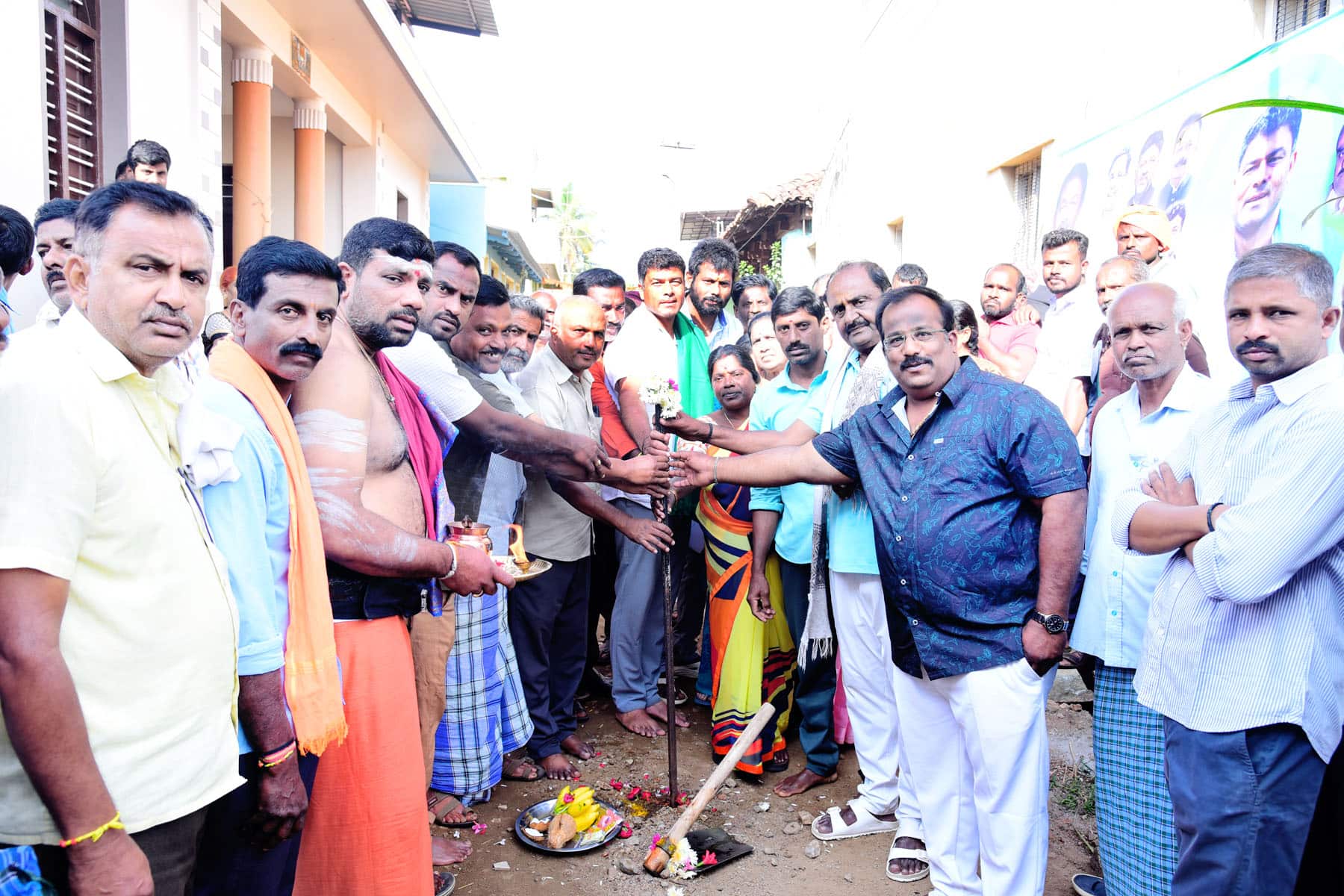 ತಾಲೂಕು ಹೊಳಲು ಗ್ರಾಮದಲ್ಲಿ (ಕರ್ನಾಟಕ ಭೂಸೇನಾ ನಿಗಮ ಹಾಗೂ ಕಾವೇರಿ ನೀರಾವರಿ ನಿಗಮದ ವತಿಯಿಂದ) ಸುಮಾರು 2 ಕೋಟಿ 90 ಲಕ್ಷ ರು. ವೆಚ್ಚದಲ್ಲಿ ಗ್ರಾಮದ ರಸ್ತೆ ಅಭಿವೃದ್ಧಿ ಕಾಮಗಾರಿಗೆ ಮೇಲುಕೋಟೆ ಶಾಸಕ ದರ್ಶನ್ ಪುಟ್ಟಣ್ಣಯ್ಯ ಗುದ್ದಲಿ ಪೂಜೆ ನೆರವೇರಿಸಿದರು.ಗ್ರಾಮದ ಜನರು, ಎತ್ತಿನಗಾಡಿ ಬಂಡಿ ಓಡಾಡಲು ಅನುಕೂಲಕ್ಕಾಗಿ ಹೊಳಲು ಗ್ರಾಮದ ಚಿಕ್ಕಬೀದಿ 45 ಲಕ್ಷ ರು. ಮತ್ತು ದೊಡ್ಡ ಬೀದಿ 45 ಲಕ್ಷ ರು. ರಸ್ತೆ ಮತ್ತು 2 ಕೋಟಿ ರು. ವೆಚ್ಚದಲ್ಲಿ ಕಾವೇರಿ ನೀರಾವರಿ ನಿಗಮದಿಂದ ಚರಂಡಿ ಕಾಂಕ್ರಿಟ್ ರಸ್ತೆ ಮತ್ತು ಗ್ರಾಮದ ಕೆರೆ ಏರಿಯಿಂದ ಗದ್ದೆ ಕಡೆಗೆ ಡಾಂಬರ್ ರಸ್ತೆ (ಸುಮಾರು 4 ಕಿಲೋಮೀಟರ್ ವರೆಗೆ) ಗುದ್ದಲಿ ಪೂಜೆ ನೆರವೇರಿಸಲಾಗಿದೆ ಎಂದರು.