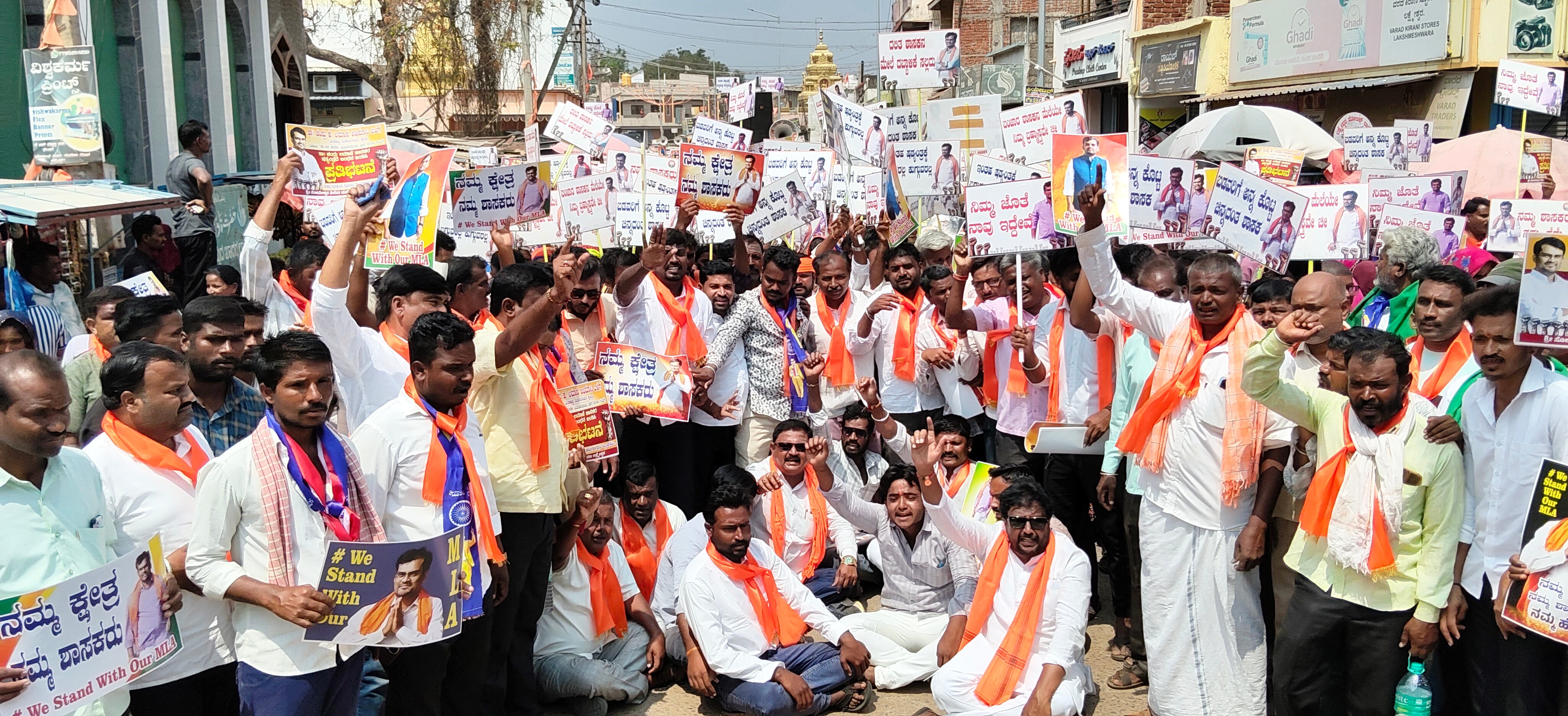 ಪಟ್ಟಣದ ಸೋಮೇಶ್ವರ ತೇರಿನ ಮನೆ ಆವರಣದಿಂದ ಆರಂಭಗೊಂಡ ಡಾ. ಚಂದ್ರು ಲಮಾಣಿ ಅಭಿಮಾನಿಗಳ ಮೆರವಣಿಗೆಯಲ್ಲಿ ಸಾವಿರಾರು ಸಂಖ್ಯೆಯಲ್ಲಿ ಅಭಿಮಾನಿಗಳು ಭಾಗವಹಿಸಿದ್ದರು. ಮೆರವಣಿಗೆಯು ಸೊಪ್ಪಿನ ಕೇರಿ ಓಣಿಯ ಮೂಲಕ ಸಾಗಿ ಹಾವಳಿ ಹನುಮಪ್ಪನ ದೇವಸ್ಥಾನ, ಬಜಾರ ರಸ್ತೆ, ಸೋಮೇಶ್ವರ ಪಾದಗಟ್ಟಿ, ಪುರಸಭೆ ಹಾಗೂ ಶಿಗ್ಲಿ ಕ್ರಾಸ್ ಮೂಲಕ ಸಾಗಿ ಹೊಸ ಬಸ್ ನಿಲ್ದಾಣದ ಎದುರು ಬೃಹತ್ ಪ್ರತಿಭಟನೆಯಾಗಿ ಮಾರ್ಪಟ್ಟಿತು.ಶಂಕರ ಮರಾಠೆ, ನವೀನ ಹಿರೇಮಠ, ಲಿಂಗರಾಜ ಪಾಟೀಲ, ನಾಗರಾಜ ಲಕ್ಕುಂಡಿ, ತಿಮ್ಮರೆಡ್ಡಿ ಅಳವಂಡಿ, ಆನಂದಗೌಡ ಪಾಟೀಲ, ಶಿವಣ್ಣ ಲಮಾಣಿ ಅವರು ಮಾತನಾಡಿದರು. ಶಾಸಕ ಡಾ.ಚಂದ್ರು ಲಮಾಣಿ ಅಭಿಮಾನಿ ಬಳಗದ ಜಾನು ಲಮಾಣಿ, ಕೆ.ವಿ. ಹಂಚಿನಾಳ, ಎಂ.ಎಸ್. ದೊಡ್ಡಗೌಡರ, ಶಿವಪ್ರಕಾಶ ಮಹಾಜನಶೆಟ್ಟರ, ಆನಂದಗೌಡ ಪಾಟೀಲ, ಮಲ್ಲಣ್ಣ ಅಣಜಿ, ನಾಗರಾಜ ಹೊಸೂರ, ರಮೇಶ ದನದಮನಿ, ಲಿಂಗರಾಜ ಪಾಟೀಲ್, ನಿಂಗಪ್ಪ ಬನ್ನಿ, ಪುಂಡಲೀಕ ಲಮಾಣಿ, ಶಿವಣ್ಣ ಲಮಾಣಿ, ನಾಗರಾಜ ಬಟಗುರ್ಕಿ, ಮಲ್ಲೇಶಪ್ಪ ಲಮಾಣಿ, ರಾಜು ಅಂದಲಗಿ, ಸೋಮಣ್ಣ ಉಪನಾಳ, ಥಾವರಪ್ಪ ಲಮಾಣಿ, ಎಂ.ಆರ್. ಪಾಟೀಲ, ಪೂರ್ಣಾಜಿ ಕರಾಟೆ, ಗಂಗಾಧರ ಮೆಣಸಿನಕಾಯಿ, ನೀಲಪ್ಪ ಹತ್ತಿ, ನಾಗರಾಜ ಲಕ್ಕುಂಡಿ, ಫಕ್ಕೀರೇಶ ರಟ್ಟೀಹಳ್ಳಿ, ಶಂಕರ ಬಾವಿಮನಿ, ಬಸವರಾಜ ಇಟಗಿ, ಡಿ.ವೈ. ಹುನಗುಂದ, ಟೊಪಣ್ಣ ಲಮಾಣಿ, ಅಶೋಕ ಬಟಗುರ್ಕಿ, ತಿಪ್ಪಣ್ಣ ಕೊಂಚಿಗೇರಿ, ಡಾ. ಭೀಮಸಿಂಗ್ ರಾಠೋಡ, ಭೀಮಣ್ಣ ಯಂಗಾಡಿ, ಪ್ರವೀಣ ಬೋಮಲೆ, ಬಸವರಾಜ ಚಕ್ರಸಾಲಿ, ಶಿವಯೋಗಿ ಅಂಕಲಕೋಟಿ, ಶಕ್ತಿ ಕತ್ತಿ, ಅಶೋಕ ಶಿರಹಟ್ಟಿ, ಅನೀಲ ಮುಳುಗುಂದ, ವಿಜಯ ಕುಂಬಾರ, ನಂದಾ ಪಲ್ಲೆದ, ಜ್ಯೋತಿ ಹಾನಗಲ್, ಅಶ್ವಿನಿ ಅಂಕಲಕೋಟಿ, ವಾಣಿ ಹತ್ತಿ, ಮಂಜುಳಾ ಗುಂಜಳ ಸೇರಿದಂತೆ ಸಾವಿರಾರು ಅಭಿಮಾನಿಗಳು ಪ್ರತಿಭಟನೆಯಲ್ಲಿ ಭಾಗಿಯಾಗಿದ್ದರು.