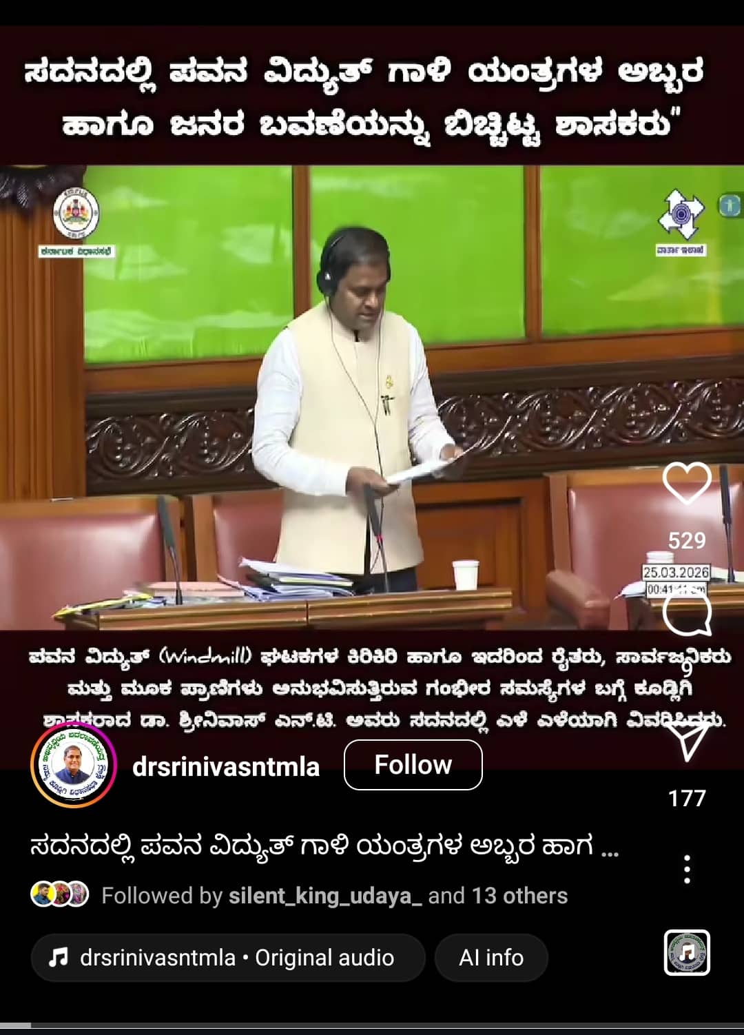 ಕೂಡ್ಲಿಗಿ: ತಾಲೂಕಿನ ನೂರಾರು ಹಳ್ಳಿಗಳಲ್ಲಿ ವಿಂಡ್ ಫ್ಯಾನ್ ಹಾಗೂ ಸೋಲಾರ್ ಅಳವಡಿಕೆಯಿಂದ ಕಾಡುಪ್ರಾಣಿಗಳು, ಹಳ್ಳಿಯ ಜನತೆಗೆ ನಿತ್ಯ ಕಿರಿಕಿರಿ, ಮಾನವ ಹಾಗೂ ಜೀವವೈವಿಧ್ಯ ವಾಸಸ್ಥಾನಗಳಿಗೆ ಕುತ್ತು ಬಂದಿರುವ ಬಗ್ಗೆ ಕಳೆದ ಅಕ್ಟೋಬರ್, ನವೆಂಬರ್, ಡಿಸೆಂಬರ್ ತಿಂಗಳಲ್ಲಿ ಕನ್ನಡಪ್ರಭ ಸರಣಿ ವರದಿಗಳನ್ನು ಪ್ರಕಟಿಸಿತ್ತು. ಇದರಿಂದ ಎಚ್ಚೆತ್ತ ಶಾಸಕ ಡಾ.ಎನ್.ಟಿ. ಶ್ರೀನಿವಾಸ್ ಸದನದಲ್ಲಿ ಗುಡುಗಿದ್ದಾರೆ.