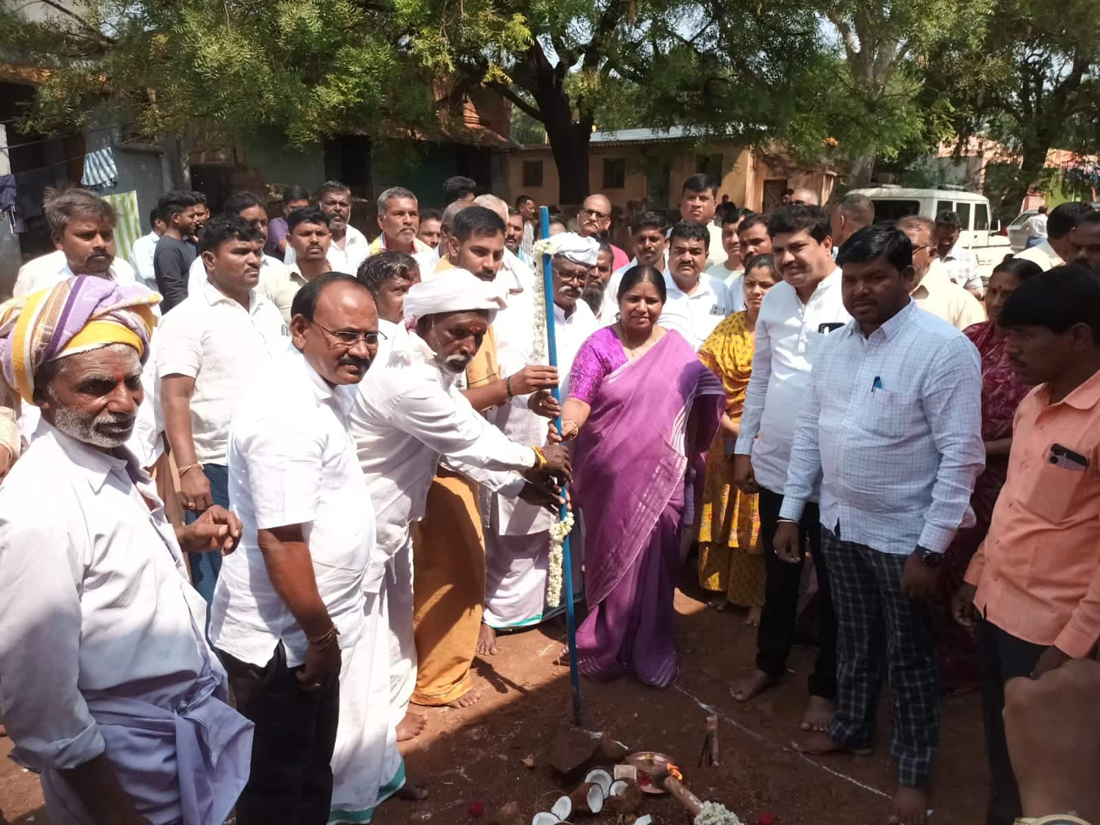 ಲೋಕೋಪಯೋಗಿ ಇಲಾಖೆಯ ಅನುದಾನ ₹೫.೫೦ ಕೋಟಿ ವೆಚ್ಚದಲ್ಲಿ ತಾರಾನಗರ ಗ್ರಾಮದ ರಾಜ್ಯ ಹೆದ್ದಾರಿ ೪೦ ರಿಂದ ಕುಡಿಯುವ ನೀರಿನ ಶುದ್ಧೀಕರಣ ಘಟಕಕ್ಕೆ ಸೇತುವೆ ಹಾಗೂ ರಸ್ತೆ ನಿರ್ಮಾಣ ಕಾಮಗಾರಿ, ಕುರೆಕುಪ್ಪ ಗ್ರಾಮದ ೬ನೇ ವಾರ್ಡಿನ ಗೌರಿಶಂಕರ ಕಾಲೊನಿಯಲ್ಲಿ ಲೋಕೋಪಯೋಗಿ ಇಲಾಖೆ ಅನುದಾನ ₹೧.೨೭ ಕೋಟಿ ವೆಚ್ಚದಲ್ಲಿ ಸಿಸಿ ರಸ್ತೆ ಹಾಗೂ ಚರಂಡಿ ನಿರ್ಮಾಣ ಕಾಮಗಾರಿ ಹಾಗೂ ಹಳೆ ದರೋಜಿ ಗ್ರಾಮದಲ್ಲಿ ಪಂಚಾಯತ್ ರಾಜ್ ಎಂಜಿನಿಯರಿಂಗ್ ಇಲಾಖೆಯ ಅನುದಾನ ₹೨೦ ಲಕ್ಷ ವೆಚ್ಚದಲ್ಲಿ ಡಾ.ಬಿ.ಆರ್. ಅಂಬೇಡ್ಕರ್ ಭವನ ನಿರ್ಮಾಣ ಕಾಮಗಾರಿಗೆ ಶಾಸಕರು ಭೂಮಿಪೂಜೆಯನ್ನು ನೆರವೇರಿಸಿದರು.ಕುರೆಕುಪ್ಪದಲ್ಲಿ ಕರ್ನಾಟಕ ರಕ್ಷಣಾ ವೇದಿಕೆಯ ಗ್ರಾಮದ ಘಟಕದ ಅಧ್ಯಕ್ಷ ಮಲ್ಲಯ್ಯ ಎನ್, ಪ್ರಧಾನ ಕಾರ್ಯದರ್ಶಿ ಹೊನ್ನೂರಸ್ವಾಮಿ ಎನ್ ಮುಂತಾದವರು ಶಾಸಕರಿಗೆ ಮನವಿ ಪತ್ರವನ್ನು ಸಲ್ಲಿಸಿ, ಗ್ರಾಮದಲ್ಲಿ ಗುಡ್ಡದಲ್ಲಿ ಹೊಸದಾಗಿ ನಿರ್ಮಿಸಿರುವ ಪಿಎಂಶ್ರೀ ಶಾಲೆಗೆ ಹೋಗಲು ಸೂಕ್ತವಾದ ರಸ್ತೆ ಇಲ್ಲ. ಶಾಲೆಯಲ್ಲಿ ಕುಡಿಯುವ ನೀರಿನ ವ್ಯವಸ್ಥೆ, ಕಂಪೌಂಡ್, ವಿದ್ಯುತ್, ಶೌಚಾಲಯ ಮುಂತಾದ ಸೌಲಭ್ಯಗಳಿಲ್ಲ. ಶಾಲೆಯಲ್ಲಿ ಅಗತ್ಯವಿರುವ ಮೂಲ ಸೌಲಭ್ಯಗಳನ್ನು ಕಲ್ಪಿಸಿದ ಮೇಲೆಯೇ ಶಾಲೆಯನ್ನು ಆರಂಭಿಸಬೇಕು ಎಂದು ಮನವಿ ಮಾಡಿದರು.