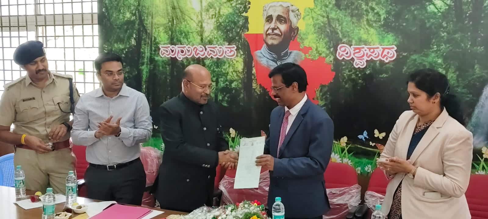 ರಾಮನಗರದ ವಕೀಲರ ಸಂಘದ ಸಭಾಂಗಣದಲ್ಲಿ ಶಾಸಕ ಇಕ್ಬಾಲ್ ಹುಸೇನ್, ನ್ಯಾಯಾಧೀಶರಾದ ಅಣ್ಣಯ್ಯನವರ್ ಅವರಿಗೆ ಜಿಲ್ಲಾ ನ್ಯಾಯಾಲಯಕ್ಕೆ ಮಂಜೂರಾಗಿರುವ ಜಾಗದ ದಾಖಲೆಗಳನ್ನು ಹಸ್ತಾಂತರಿಸಿದರು.
