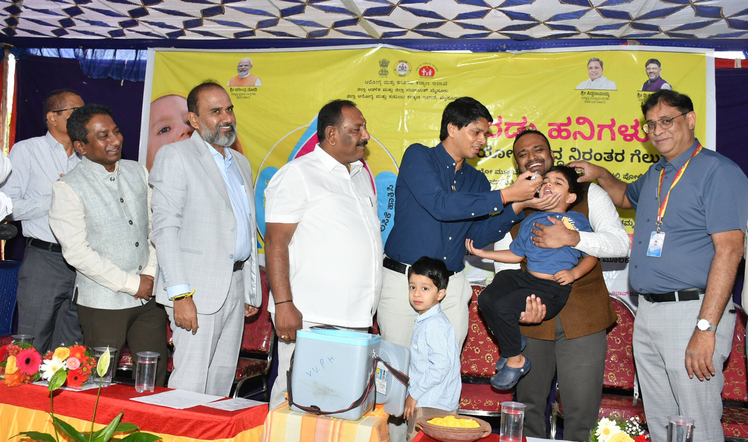 ಕನ್ನಡಪ್ರಭ ವಾರ್ತೆ ಮೈಸೂರುಜಿಲ್ಲಾಡಳಿತ, ಜಿಲ್ಲಾ ಪಂಚಾಯತ್, ಜಿಲ್ಲಾ ಆರೋಗ್ಯ ಮತ್ತು ಕುಟುಂಬ ಕಲ್ಯಾಣ ಇಲಾಖೆ ವತಿಯಿಂದ ಜಯಲಕ್ಷ್ಮಿಪುರಂನ ವಿ.ವಿ. ಹೆರಿಗೆ ಆಸ್ಪತ್ರೆಯಲ್ಲಿ ಆಯೋಜಿಸಿದ್ದ 2025ರ ಪಲ್ಸ್ ಪೋಲಿಯೊ ಹನಿ ಹಾಕುವ ಕಾರ್ಯಕ್ರಮವನ್ನು ಶಾಸಕ ಕೆ. ಹರೀಶ್ ಗೌಡ ಅವರು ಮಕ್ಕಳಿಗೆ ಪೋಲಿಯೋ ಹನಿ ಹಾಕುವುದರ ಮೂಲಕ ಉದ್ಘಾಟಿಸಿದರು.ಮೊದಲನೇ ದಿನ ಸುಮಾರು ಶೇ. 95 ರಷ್ಟು ಮಕ್ಕಳಿಗೆ ನೀಡಲಾಗುವುದು. ಸುಮಾರು 1,600 ಅಧಿಕ ಬೂತುಗಳಲ್ಲಿ ಪೋಲಿಯೋ ಹನಿ ನೀಡಲಾಗುತ್ತಿದೆ. 4000 ಅಧಿಕ ಸಿಬ್ಬಂದಿ ವರ್ಗದವರು ವೈದ್ಯರು ಮತ್ತು ತಾಲೂಕು ವೈದ್ಯಾಧಿಕಾರಿಗಳು ಒಳಗೊಂಡ ತಂಡಗಳು ಲಸಿಕಾ ಕಾರ್ಯಕ್ರಮದಲ್ಲಿ ತಮ್ಮನ್ನು ತೊಡಗಿಸಿಕೊಂಡಿದ್ದಾರೆ ಎಂದು ಡಿಎಚ್.ಒ ಡಾ.ಪಿ.ಸಿ. ಕುಮಾರಸ್ವಾಮಿ ಹೇಳಿದರು. ಮೈಸೂರು ನಗರದಲ್ಲಿ 5 ವರ್ಷಕ್ಕಿಂತ ಕೆಳಗಿನ ಮಕ್ಕಳು 88,879 ಮಂದಿ ಇದ್ದು 352 ಕೇಂದ್ರಗಳು, 23 ಸಂಚಾರಿ ಕೇಂದ್ರಗಳನ್ನು ತೆರೆಯಲಾಗಿದ್ದು, 67 ಮಂದಿ ಮೇಲ್ವಿಚಾರಕರು, 1500 ಮಂದಿ ಲಸಿಕೆ ನೀಡುವ ಸಿಬ್ಬಂದಿ ನೇಮಿಸಲಾಗಿದೆ. ಅಂತೆಯೇ ಜಿಲ್ಲೆಯಲ್ಲಿ ಒಟ್ಟಾರೆ 2.22,084 ಮಂದಿ ಐದು ವರ್ಷದೊಳಗಿನ ಮಕ್ಕಳಿದ್ದು, ಇವರಿಗೆ 1,648 ಕೇಂದ್ರಗಳು, 50 ಸಂಚಾರಿ ಕೇಂದ್ರಗಳು, 323 ಮಂದಿ ಮೇಲ್ವಿಚಾರಕರು, 6,792 ಮಂದಿ ಲಸಿಕೆ ಹಾಕುವ ಸಿಬ್ಬಂದಿಯನ್ನು ನೇಮಿಸಲಾಗಿದೆ.ಕಾರ್ಯಕ್ರಮದಲ್ಲಿ ಜಿಲ್ಲಾಧಿಕಾರಿ ಜಿ. ಲಕ್ಷ್ಮಿಕಾಂತ್ ರೆಡ್ಡಿ, ಜಿಪಂ ಸಿಇಒ ಎಸ್. ಯುಕೇಶ್ ಕುಮಾರ್, ಜಿಲ್ಲಾ ಆಸ್ಪತ್ರೆಯ ಜಿಲ್ಲಾ ಶಸ್ತ್ರಚಿಕಿತಕ ಡಾ. ಸತೀಶ್, ಜಿಲ್ಲಾ ಆರ್.ಸಿ.ಎಚ್ ಅಧಿಕಾರಿ ಡಾ. ಮಹಮ್ಮದ್ ಶಿರಾಜ್ ಅಹಮದ್ ಮೊದಲಾದವರು ಇದ್ದರು.