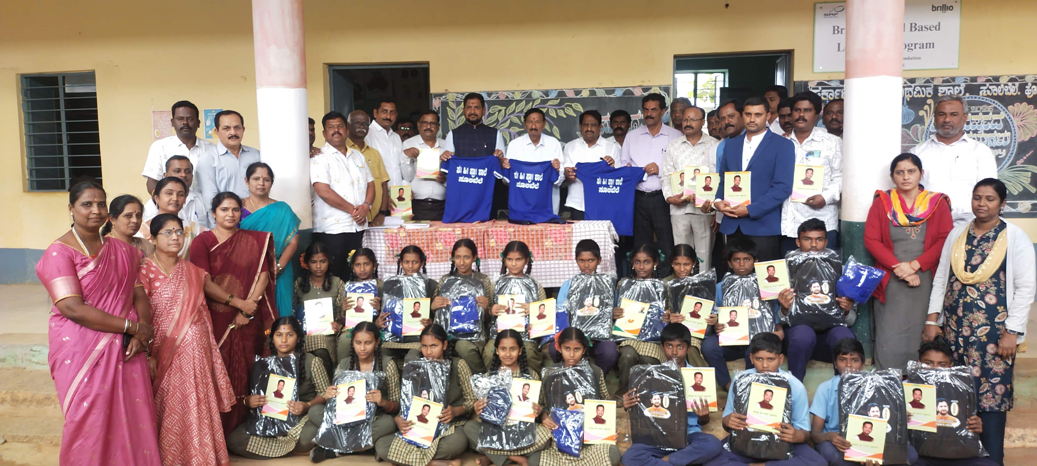 (ಫೋಟೋ ಕ್ಯಾಫ್ಷನ್)ಸೂಲಿಬೆಲೆ ಬಸ್ ನಿಲ್ದಾಣದ ಸರ್ಕಾರಿ ಕನ್ನಡ ಪ್ರಾಥಮಿಕ ಶಾಲೆಗೆ ಬಮೂಲ್ ನಿರ್ದೇಶಕ ಬಿ.ವಿ.ಸತೀಶಗೌಡರು ನೀಡಿದ ಮಕ್ಕಳಿಗೆ ಟ್ರ್ಯಾಕ್ಸೂಟ್, ಬ್ಯಾಗ ನೋಟ್ಬುಕ್ ಕೊಡುಗೆಯನ್ನು ಶಾಸಕ ಶರತ್ ಬಚ್ಚೇಗೌಡ ವಿತರಿಸಿದರು, ಹಿರಿಯ ಮುಖಂಡ ಗೋಪಾಲಗೌಡ, ನಾರಾಯಣಗೌಡ, ವೆಂಕಟೇಶಪ್ಪ, ಪದ್ಮನಾಭ, ಶ್ರೀನಿವಾಸಪ್ಪ ಇತರರಿದ್ದರು.