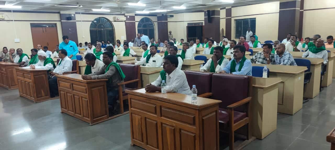 ಜಿಲ್ಲಾಧಿಕಾರಿಗಳ ಸಭಾಂಗಣದಲ್ಲಿ ವಿಧಾನಸಭೆ ಉಪಾಧ್ಯಕ್ಷ ಹಾಗೂ ಶಾಸಕ ರುದ್ರಪ್ಪ ಲಮಾಣಿ, ಬ್ಯಾಡಗಿ ಶಾಸಕ ಬಸವರಾಜ ಶಿವಣ್ಣನವರ, ಹಾನಗಲ್ಲ ಶಾಸಕ ಶ್ರೀನಿವಾಸ ಮಾನೆ, ಹಿರೇಕೆರೂರು ಶಾಸಕ ಯು.ಬಿ. ಬಣಕಾರ ನೇತೃತ್ವದಲ್ಲಿ ರೈತ ಮುಖಂಡರೊಂದಿಗೆ ನಡೆದ ಸಭೆಯಲ್ಲಿ ಹೋರಾಟ ಹಿಂಪಡೆಯುವಂತೆ ಮನವಿ ಮಾಡಲಾಯಿತು. ಜಿಲ್ಲಾಧಿಕಾರಿ ವಿಜಯಮಹಂತೇಶ ದಾನಮ್ಮನವರ, ಎಸ್ಪಿ ಯಶೋದಾ ವಂಟಗೋಡಿ ಸೇರಿದಂತೆ ಅಧಿಕಾರಿಗಳು ಉಪಸ್ಥಿತರಿದ್ದ ಸಭೆಯಲ್ಲಿ ಮೆಕ್ಕೆಜೋಳ ಖರೀದಿ ಕೇಂದ್ರ ತೆರೆಯುವ ಬಗ್ಗೆ ಗಂಭೀರ ಚರ್ಚೆ ನಡೆಯಿತು. ಡಿ.8ರಿಂದ ಬೆಳಗಾವಿಯಲ್ಲಿ ಚಳಿಗಾಲದ ಅಧಿವೇಶನ ಆರಂಭವಾಗುವ ದಿನವೇ ರೈತರು ಬ್ಯಾಡಗಿ ತಾಲೂಕು ಮೋಟೆಬೆನ್ನೂರು ಬಳಿ ಅಹೋರಾತ್ರಿ ರಾಷ್ಟ್ರೀಯ ಹೆದ್ದಾರಿ ಬಂದ್ಗೆ ಕರೆ ನೀಡಿರುವ ಹಿನ್ನೆಲೆಯಲ್ಲಿ ಜಿಲ್ಲೆಯ ಶಾಸಕರು, ಅಧಿಕಾರಿಗಳು ರೈತರ ಮನವೊಲಿಸುವ ಪ್ರಯತ್ನ ಮಾಡಿದರು. ಈಗಾಗಲೇ ಸರ್ಕಾರ ಮೆಕ್ಕೆಜೋಳವನ್ನು ಎಂಎಸ್ಪಿ ದರದಲ್ಲಿ ಖರೀದಿಸಲು ಆದೇಶಿಸಿದೆ. ಸರ್ಕಾರ ನಿಮ್ಮ ಪರವಾಗಿದೆ. ಆದ್ದರಿಂದ ಹೋರಾಟ ಕೈಬಿಡಿ ಎಂದು ಶಾಸಕರು ರೈತರಲ್ಲಿ ಮನವಿ ಮಾಡಿದರು. ಆದರೆ, ತಮ್ಮ ಬೇಡಿಕೆ ಈಡೇರದ ಹೊರತು ಹೋರಾಟ ಕೈಬಿಡುವ ಪ್ರಶ್ನೆಯೇ ಇಲ್ಲ. ಪ್ರತಿ ತಾಲೂಕಿಗೆ ಒಂದರಂತೆ ಖರೀದಿ ಕೇಂದ್ರ ತೆರೆಯಬೇಕು. ಪ್ರತಿ ರೈತನಿಂದ ಕನಿಷ್ಠ 100 ಕ್ವಿಂಟರ್ ಮೆಕ್ಕೆಜೋಳ ಖರೀದಿಸಬೇಕು.ಅಕ್ರಮ ಸಕ್ರಮ ಯೋಜನೆ ಮರು ಜಾರಿ ಮಾಡಬೇಕು ಎಂದು ರೈತ ಮುಖಂಡರು ಶಾಸಕರನ್ನು ಒತ್ತಾಯಿಸಿದರು. ಈ ಬಗ್ಗೆ ಸರ್ಕಾರದ ಮಟ್ಟದಲ್ಲಿ ಸಿಎಂ ಜೊತೆ ಚರ್ಚಿಸಿ ರೈತರ ಸಮಸ್ಯೆಗಳಿಗೆ ಅತಿ ಶೀಘ್ರದಲ್ಲಿ ಪರಿಹಾರ ನೀಡಲಾಗುವುದೆಂದು ಶಾಸಕರು ಭರವಸೆ ನೀಡಿದರು.