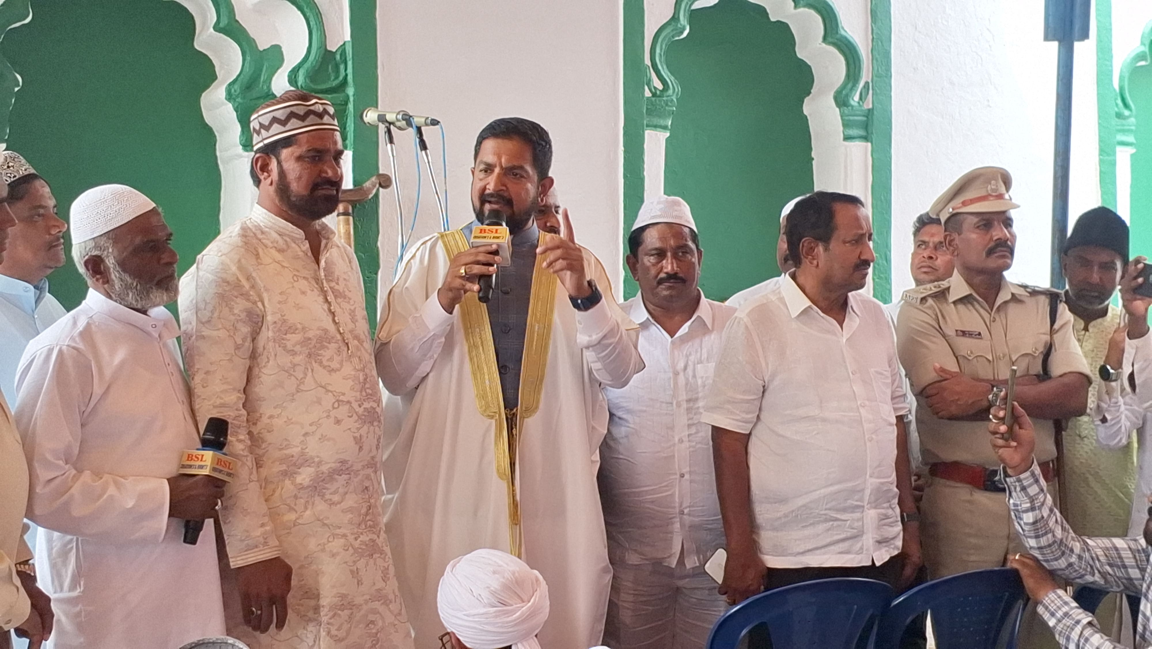 ಫೋಟೋ: 21 ಹೆಚ್ಎಸ್ಕೆ 1ಹೊಸಕೋಟೆಯ ಈದ್ಗಾ ಮೈದಾನದಲ್ಲಿ ರಂಜಾನ್ ಹಬ್ಬದ ಸಾಮೂಹಿಕ ಪ್ರಾರ್ಥನೆ ಕಾರ್ಯಕ್ರಮದಲ್ಲಿ ಶಾಸಕ ಶರತ್ ಬಚ್ಚೇಗೌಡ ಭಾಗವಹಿಸಿ ಶುಭಾಶಯ ಕೋರಿದರು.