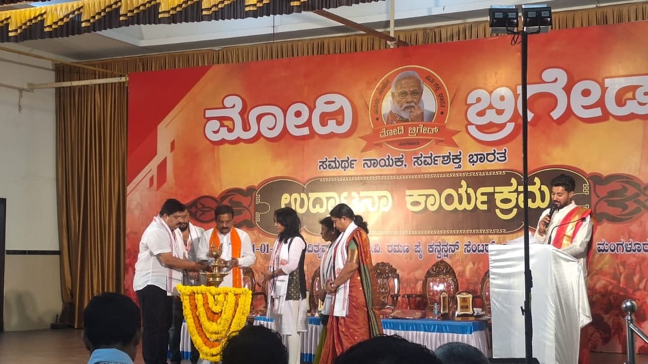 ಮಂಗಳೂರಿನ ಟಿ.ವಿ. ರಮಣ ಪೈ ಕನ್ವೆನ್ಷನ್ ಸೆಂಟರ್ನಲ್ಲಿ ಭಾನುವಾರ ನಡೆದ ಮೋದಿ ಬ್ರಿಗೇಡ್ನ ಉದ್ಘಾಟನೆ ಕಾರ್ಯಕ್ರಮದ ಪ್ರಮುಖ ಭಾಷಣಕಾರರಾಗಿ ಅವರು ಮಾತನಾಡಿದರು.