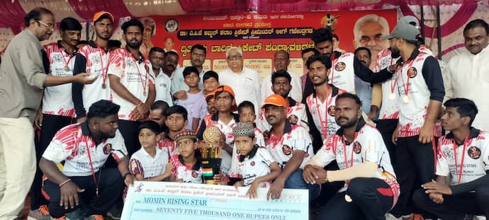 ಫೈನಲ್ ಪ್ರವೇಶಿಸಿದ್ದ ಮೋಮಿನ್ ರೈಸಿಂಗ್ ಸ್ಟಾರ್ಸ್ ಹಾಗೂ ಸಾಗರ್ ವಾರಿಯರ್ಸ್ ನಡುವೆ ಪಂದ್ಯದಲ್ಲಿ ಮೊದಲು ಬ್ಯಾಟ್ ಮಾಡಿದ ಮೋಮಿನ್ ರೈಸಿಂಗ್ ಸ್ಟಾರ್ಸ್ ೧೦ ಒವರ್ಗೆ ೯೬ ರನ್ ಗಳಿಸಿತು. ಗುರಿ ಬೆನ್ನಟ್ಟಿದ್ದ ಸಾಗರ್ ವಾರಿಯರ್ಸ್ ಆರಂಭದಲ್ಲೇ ಪ್ರಮುಖ ೩ ವಿಕೆಟ್ ನಷ್ಟದಿಂದ ಸಂಕಷ್ಟಕ್ಕೆ ಸಿಲುಕಿತು. ಬಳಿಕ ಚೇತರಿಸಿಕೊಂಡು ತಂಡವು ಕೊನೆಯ ೧೨ ಎಸೆತಗಳಲ್ಲಿ ೨೪ ರನ್ ಬೇಕಿದ್ದಾಗ ಮೋಮಿನ್ ರೈಸಿಂಗ್ ಸ್ಟಾರ್ಸ್ ತಂಡದ ಬಿಗಿಯಾದ ಬೌಲಿಂಗ್ಗೆ ಸಾಗರ್ ವಾರಿಯರ್ಸ್ ೨೦ ರನ್ಗಳಿಂದ ಶರಣಾಗಿದ್ದರಿಂದ ಮೋಮಿನ್ ರೈಸಿಂಗ್ ಸ್ಟಾರ್ಸ್ ಗೆಲುವಿನ ನಗೆಬೀರಿತು.ಕ್ರೀಡಾಂಗಣ ಶೀಘ್ರ: ರಾಜ್ಯ ಹಾಗೂ ದೇಶದ ಕ್ರೀಡಾ ತಂಡವನ್ನು ಪ್ರತಿನಿಧಿಸುವ ಕ್ರೀಡಾಪಟುಗಳು ಉದಯಿಸಲಿ. ಕ್ರೀಡಾಪಟುಗಳಿಗೆ ಅಗತ್ಯ ಸಹಕಾರ ನೀಡುವೆ ಎಂದು ಶಾಸಕ ಜಿ.ಎಸ್. ಪಾಟೀಲ ತಿಳಿಸಿದರು.