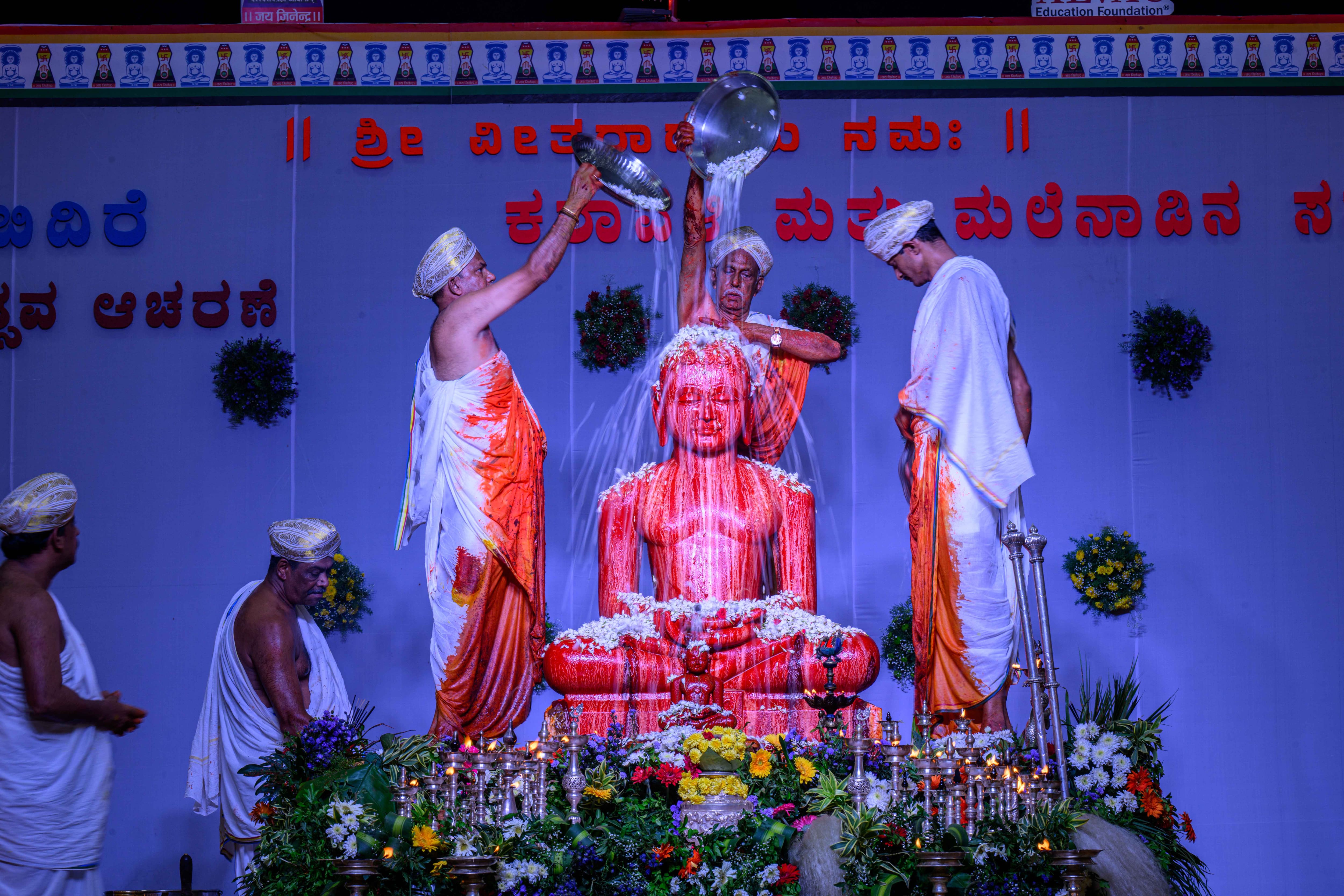 ಸಂಜೆ 4ಕ್ಕೆ ಆರಂಭಗೊಂಡ ಕಾರ್ಯಕ್ರಮದಲ್ಲಿ ಮೊದಲಿಗೆ ಆಳ್ವಾಸ್ ವಿದ್ಯಾರ್ಥಿಗಳಿಂದ ಜಿನಭಜನೆ ನಡೆಯಿತು. ಕೊಂಬು ವಾದ್ಯ, ನಾದಸ್ವರ, ಪೂರ್ಣಕುಂಭದೊಂದಿಗೆ ಮಹಾವೀರ ಸ್ವಾಮಿ ಜಿನಬಿಂಬದ ಮೆರವಣಿಗೆ, ತೋರಣ ಮುಹೂರ್ತ, ದ್ರವ್ಯಾಭಿಷೇಕ, ಅಷ್ಟವಿಧಾರ್ಚನೆ ಪೂಜೆ, ಮಹಾಮಂಗಳಾರತಿ ಹಮ್ಮಿಕೊಳ್ಳಲಾಯಿತು. ಹೊರನಾಡಿನ ಜಯಶ್ರೀ ಧರಣೇಂದ್ರ ಜೈನ್ ಮತ್ತು ಬಳಗದವರಿಂದ ಜಿನಭಕ್ತಿ ಗಾಯನ ನಡೆಯಿತು.ಸುತ್ತಮುತ್ತಲಿನ ವಾತಾವರಣಕ್ಕೆ ಧಾರ್ಮಿಕ ವೈಭವದ ಸ್ಪರ್ಶ ನೀಡುವ ಉದ್ದೇಶದಿಂದ 24 ತೀರ್ಥಂಕರರ ವಿಗ್ರಹಗಳನ್ನು ಇಡಲಾಗಿತ್ತು. ಸಭಾಂಗಣದ ಸೌಂದರ್ಯವನ್ನು ಮತ್ತಷ್ಟು ಹೆಚ್ಚಿಸಲು ಬೃಹತ್ ಆಕಾರದ 20 ವಿದ್ಯುತ್ ದೀಪಗಳನ್ನು ಅಳವಡಿಸಲಾಗಿತ್ತು.ಜಲಾಭಿಷೇಕದಿಂದ ಆರಂಭಗೊಂಡ ಪೂಜಾ ವಿಧಿಗಳು ಎಳನೀರು, ಇಕ್ಷುರಸ, ಕ್ಷೀರ, ಕಷಾಯ, ಕಾಶ್ಮೀರಿ ಕೇಸರಿ, ಕಲ್ಕಚೂರ್ಣ, ಅರಿಶಿನ, ಚತುಷ್ಕೋನ ಕಳಶ, ಚಂದನ ಹಾಗೂ ಅಷ್ಟಗಂಧದ ದ್ರವ್ಯಗಳಿಂದ ಭಕ್ತಿಭಾವದಿಂದ ನೆರವೇರಿಸಲ್ಪಟ್ಟವು. ಬಳಿಕ ಕನಕ ಪುಷ್ಪವೃಷ್ಠಿಯೊಂದಿಗೆ ವಿಶೇಷ ಅಭಿಷೇಕ ನಡೆಯಿತು. ಶಾಂತಿ ಮಂತ್ರಗಳ ಮಂಗಳಧ್ವನಿಯ ನಡುವೆ ಪೂರ್ಣಕುಂಭ ಮತ್ತು ಮಹಾಮಂಗಳಾರತಿ ನಡೆಯಿತು. ಕಾರ್ಯಕ್ರಮಕ್ಕೆ ಆಗಮಿಸಿದ ಎಲ್ಲರಿಗೂ ಉಪಹಾರದ ವ್ಯವಸ್ಥೆ ಕಲ್ಪಿಸಲಾಗಿತ್ತು.ಸಭಾ ಕಾರ್ಯಕ್ರಮದಲ್ಲಿ ಮಾಜಿ ಸಚಿವ ಕೆ. ಅಭಯಚಂದ್ರ ಜೈನ್ ಹಾಗೂ ರಾಣಿ ಅಬ್ಬಕ್ಕಳ ವಂಶಸ್ಥರಾದ ಮೂಡುಬಿದಿರೆಯ ಚೌಟರ ಅರಮನೆಯ ಅನಿತಾ ಸುರೇಂದ್ರ ಕುಮಾರ್ ಅವರನ್ನು ಸನ್ಮಾನಿಸಲಾಯಿತು.ಸನ್ಮಾನ ಸ್ವೀಕರಿಸಿ ಮಾತನಾಡಿದ ಅನಿತಾ ಸುರೇಂದ್ರ ಕುಮಾರ್, ಮೋಹನ ಆಳ್ವರ ಸಾಧನೆಯಿಂದ ಮೂಡುಬಿದಿರೆ ರಾಷ್ಟ್ರೀಯ ಭೂಪಟದಲ್ಲಿ ಗುರುತಿಸುವಂತಾಗಿದೆ. ಕಳೆದ 14 ವರ್ಷಗಳಿಂದ ಅವರು ಈ ಮಹೋತ್ಸವವನ್ನು ಯಶಸ್ವಿಯಾಗಿ ನಡೆಸಿಕೊಂಡು ಬರುತ್ತಿದ್ದಾರೆ. ಅವರು ನಮ್ಮ ಊರಿನ ಅಪ್ಪಟ ರತ್ನ ಎಂದರು.ಮಾಜಿ ಸಚಿವ ಕೆ. ಅಭಯಚಂದ್ರ ಜೈನ್ ಮಾತನಾಡಿ, ಜೈನ ಧರ್ಮದ ಮೂಲ ತತ್ವಗಳು ನಮ್ಮ ಆತ್ಮಸ್ಥೈರ್ಯ ಬಲಪಡಿಸುತ್ತವೆ. ಸ್ವಾಭಿಮಾನದಿಂದ ಬದುಕುವುದು ಜೈನ ಧರ್ಮ ನನಗೆ ಕಲಿಸಿದ ಮಹತ್ವದ ಪಾಠ. ಈ ಮೌಲ್ಯಗಳು ವ್ಯಕ್ತಿತ್ವವನ್ನು ದೃಢಗೊಳಿಸಿ, ಸತ್ಯನಿಷ್ಠೆ ಹಾಗೂ ಆತ್ಮಗೌರವಯುತ ಜೀವನಕ್ಕೆ ದಾರಿ ತೋರಿಸುತ್ತದೆ ಎಂದರು. ಆಳ್ವಾಸ್ ಸಂಸ್ಥೆಯ ಒಳಂಗಣ ಕ್ರೀಡಾಂಗಣಕ್ಕೆ ನನ್ನ ತಂದೆಯ ಹೆಸರು ಇಟ್ಟಿರುವುದು ಮೋಹನ್ ಆಳ್ವರಿಗೆ ನಮ್ಮ ಕುಟುಂಬದ ಮೇಲಿರುವ ಗೌರವವನ್ನು ಸೂಚಿಸುತ್ತದೆ ಎಂದರು. ಆಳ್ವಾಸ್ ಶಿಕ್ಷಣ ಪ್ರತಿಷ್ಠಾನದ ಅಧ್ಯಕ್ಷ ಡಾ. ಎಂ. ಮೋಹನ್ ಆಳ್ವ, ಪಟ್ನಶೆಟ್ಟಿ ಸುದೇಶ್ ಕುಮಾರ್, ಚೌಟರ ಅರಮನೆಯ ಕುಲದೀಪ್ ಎಂ, ಆದರ್ಶ್ ಜೈನ್, ಏರ್ಮಾಳ ಬೀಡು ಸೂರಜ್ ಕುಮಾರ್, ಕುತ್ಯಾರು ಅರಮನೆ ಜಿನೇಶ್ ಬಲ್ಲಾಳ್, ರತ್ನಾಕರ್ ಜೈನ್, ಪಡುಬಿದ್ರಿ ಅರಮನೆಯ ಅರಸರು, ಕೂಳೂರಿನ ಆಶಿಕ್ಕುಮಾರ್, ದುಗ್ಗಣ್ಣ ಸಾವಂತ್ರು ಪಡ್ಯಾರ್ಬೆಟ್ಟಿನ ಜೀವಂಧರ ಕುಮಾರ್, ಉದ್ಯಮಿ ಶ್ರೀಪತಿ ಭಟ್, ಟ್ರಸ್ಟಿ ವಿವೇಕ್ ಆಳ್ವ, ಅವಿಭಜಿತ ದ.ಕ ಹಾಗೂ ಉಡುಪಿ ಜಿಲ್ಲೆಯ ವಿವಿಧ ಅರಸು ಮನೆತನದ ಅರಸರು, ಬೀಡುಮನೆತನದ ಯಜಮಾನರು ಇದ್ದರು. ನಿವೃತ್ತ ಮುಖ್ಯ ಶಿಕ್ಷಕ ಮುನಿರಾಜ ರೆಂಜಾಳ ಹಾಗೂ ಶಿಕ್ಷಕ ನವೀನಚಂದ್ರ ಅಂಬೂರಿ ಕಾರ್ಯಕ್ರಮ ನಿರೂಪಿಸಿದರು.