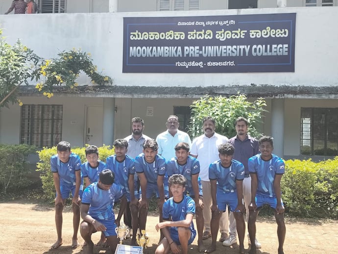 ಕನ್ನಡಪ್ರಭ ವಾರ್ತೆ ಕುಶಾಲನಗರ ಕುಶಾಲನಗರ ಮೂಕಾಂಬಿಕಾ ಪದವಿ ಪೂರ್ವ ಕಾಲೇಜಿನ 2025- 26ನೇ ಸಾಲಿನ ಪದವಿ ಪೂರ್ವ ಕಾಲೇಜುಗಳ ಬಾಲಕರ ತಂಡ ಕಬಡ್ಡಿ ವಿಭಾಗದಲ್ಲಿ ಜಿಲ್ಲಾ ಮಟ್ಟದಲ್ಲಿ ಕುಶಾಲನಗರ ಮೂಕಾಂಬಿಕಾ ಪದವಿ ಪೂರ್ವ ಕಾಲೇಜು ಪ್ರಥಮ ಸ್ಥಾನವನ್ನು ಪಡೆದು ರಾಜ್ಯಮಟ್ಟಕ್ಕೆ ಆಯ್ಕೆಯಾಗಿದೆ. ಕಾಲೇಜು ಆಡಳಿತ ಮಂಡಳಿಯ ಅಧ್ಯಕ್ಷರಾದ ಕೆ ಪಿ ಚಂದ್ರಕಲ, ಪ್ರಾಂಶುಪಾಲರಾದ ಬಿ ಎಸ್ ಪ್ರಸನ್ನ, ದೈಹಿಕ ಶಿಕ್ಷಣ ಶಿಕ್ಷಕರಾದ ಮತ್ತು ಮುಖ್ಯೋಪಾಧ್ಯಾಯರಾದ ಡಿ ಕೆ ಸುರೇಶ್ ಹಾಗೂ ಉಪನ್ಯಾಸಕರು ವಿಜೇತ ತಂಡಕ್ಕೆ ಅಭಿನಂದನೆ ಸಲ್ಲಿಸಿದ್ದಾರೆ.