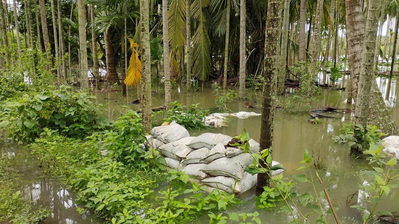 ಅಲ್ಲದೇ, ಚಿಕ್ಕಮಂದಗೆರೆಯ ರೈತ ಮಂಜುನಾಥ್ ಅವರ ತೆಂಗು, ಬಾಳೆ, ಅಡಿಕೆ ತೋಟಕ್ಕೆ ನೀರು ನುಗ್ಗಿದ್ದು ಒಕ್ಕಣೆ ಮಾಡಿದ್ದ ತೆಂಗು ಕೊಚ್ಚಿ ಹೋಗಿವೆ. ಜಮೀನಿಗೆ ಹಾಕಲು ಶೇಖರಣೆ ಮಾಡಲಾಗಿದ್ದ ಕುರಿ, ಕೋಳಿ ಗೊಬ್ಬರದ ಮೂಟೆಗಳು ನೀರು ಪಾಲಾಗಿವೆ. ಗೊನೆ ಬಿಟ್ಟಿದ್ದ ಬಾಳೆಗಿಡ ನೆಲಕಚ್ಚಿವೆ. ಜಮೀನಿನಲ್ಲಿದ್ದ ಪಂಪ್ಸೆಟ್ ಮನೆಗೆ ನೀರು ನುಗ್ಗಿದೆ. ಪಂಪ್ಸೆಟ್ ಮೋಟಾರ್ ಸುರಕ್ಷಿತ ಸ್ಥಳಕ್ಕೆ ರವಾನಿಸಲು ಸಾಧ್ಯವಾಗದೆ ಪರದಾಡುವಂತಾಗಿದೆ.ಗಾಣದಹಳ್ಳಿ, ಮಾದಾಪುರ, ಚಿಕ್ಕಮಂದಗೆರೆ, ಗದ್ದೆಹೊಸೂರು, ಕುರೆವು ಗ್ರಾಮಗಳ ರೈತರು ಎಚ್ಚರಿಕೆಯಿಂದ ಇರಲು ತಾಲೂಕು ಹಾಗೂ ಗ್ರಾಮ ಪಂಚಾಯ್ತಿ ಆಡಳಿತ ಹಾಗೂ ಪೊಲೀಸರು ಧ್ವನಿವರ್ಧಕದ ಮೂಲಕ ಜಾಗ್ರತೆ ಮೂಡಿಸಲಾಗುತ್ತಿದೆ. ಮಂದಗೆರೆ ಸೇತುವೆ ಬಳಿ ಯುವಕರ ದಂಡು ಸೆಲ್ಪಿ ತೆಗೆದುಕೊಳ್ಳುವುದನ್ನು ಕಂಡು ಪೊಲೀಸರು ತಿಳಿ ಹೇಳಿ ಕಳಿಸಿದ್ದಾರೆ.