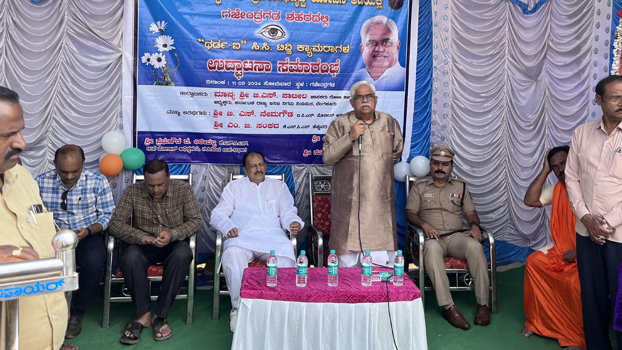 ಶಾಸಕರ ಸ್ಥಳೀಯ ಪ್ರದೇಶಾಭಿವೃದ್ಧಿ ಯೋಜನೆ ಅಡಿಯಲ್ಲಿ ಸೋಮವಾರ ಗಜೇಂದ್ರಗಡದ ಕಾಲಕಾಲೇಶ್ವರ ವೃತ್ತದಲ್ಲಿ ಥರ್ಡ್ ಐ ಸಿಸಿ ಕ್ಯಾಮೆರಾಗಳಿಗೆ ಶಾಸಕ ಜಿ.ಎಸ್. ಪಾಟೀಲ್ ಚಾಲನೆ ನೀಡಿದರು.