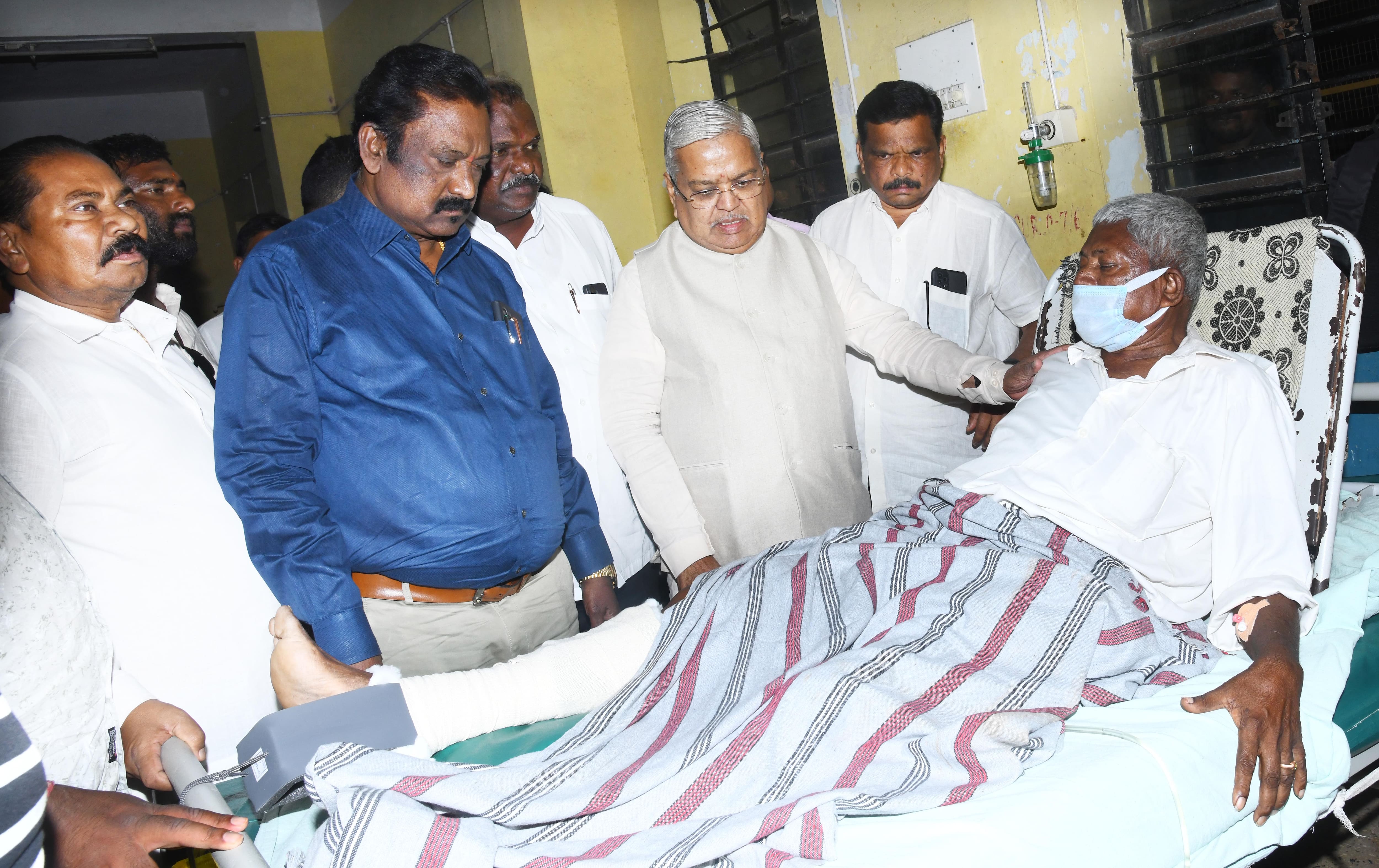 ಮಾದಿಗ ಒಳ ಮೀಸಲಾತಿ ಹೋರಾಟದ ವೇಳೆ ಪೊಲೀಸರು ವಶಕ್ಕೆ ಪಡೆದು, ಬಸ್ಸೊಳಗೆ ಕಳಿಸುತ್ತಿದ್ದಾಗ ಕೆಳಗೆ ಬಿದ್ದು ಕಾಲು ಮುರಿದುಕೊಂಡಿರುವ ಶಿರಮಗೊಂಡನಹಳ್ಳಿ ಗ್ರಾಮದ ರುದ್ರಪ್ಪ ದಾವಣಗೆರೆ ಜಿಲ್ಲಾಸ್ಪತ್ರೆಗೆ ದಾಖಲಾಗಿದ್ದು, ಚಿತ್ರದುರ್ಗ ಸಂಸದ ಗೋವಿಂದ ಕಾರಜೋಳ ಆಸ್ಪತ್ರೆಗೆ ಭೇಟಿ ನೀಡಿ ಆರೋಗ್ಯ ವಿಚಾರಿಸಿದರು. ಒಕ್ಕೂಟದ ಆಲೂರು ನಿಂಗರಾಜ, ಡಾ.ಎಚ್.ವಿಶ್ವನಾಥ, ಎಂ.ಹಾಲೇಶ ಇತರರು ಹಾಜರಿದ್ದು ಘಟನೆ ಮಾಹಿತಿ ನೀಡಿದರು.