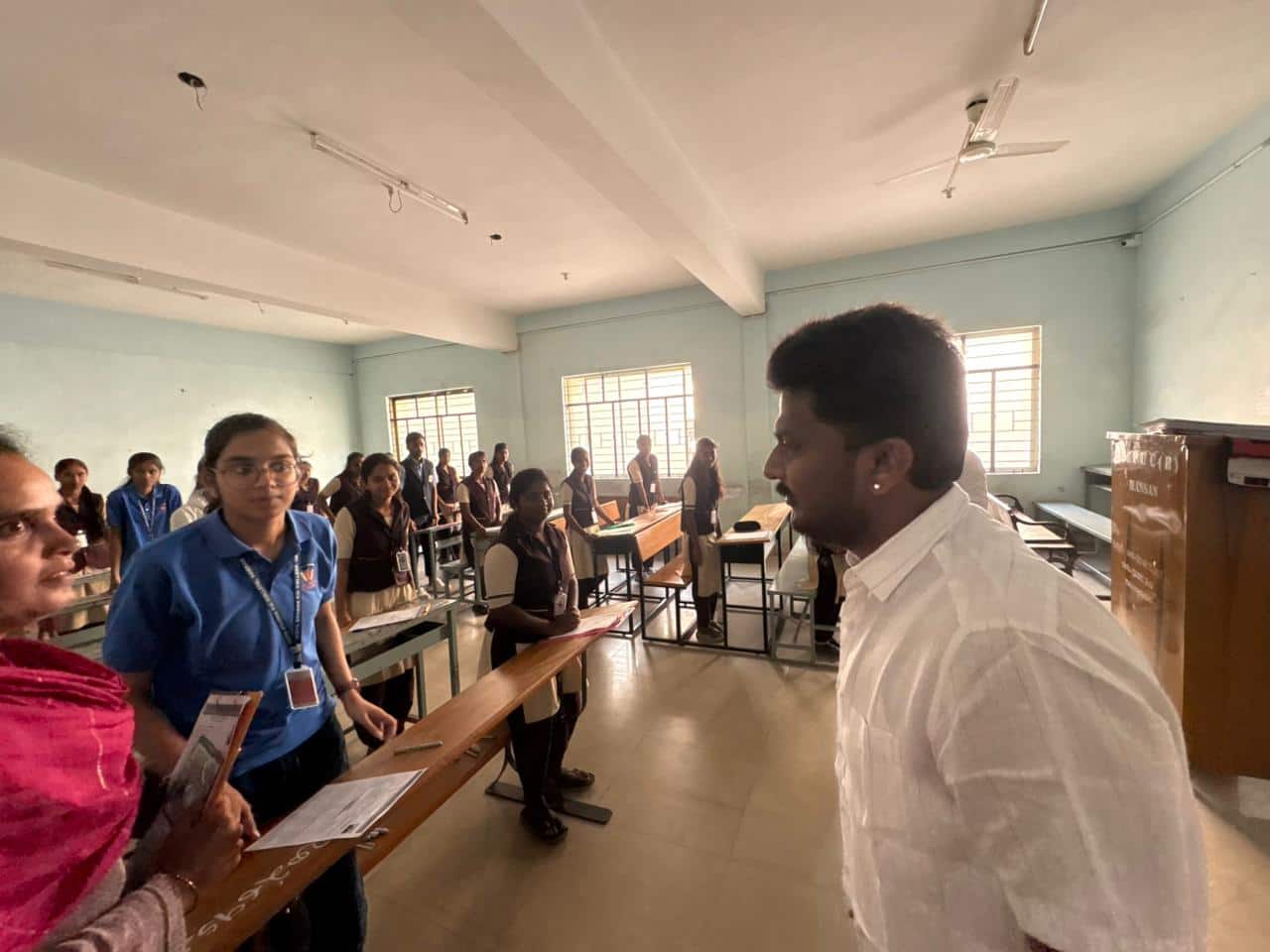 ಜಿಲ್ಲೆಯಾದ್ಯಂತ ದ್ವಿತೀಯ ಪಿಯುಸಿ ವಾರ್ಷಿಕ ಪರೀಕ್ಷೆಗಳು ಇಂದಿನಿಂದ ಆರಂಭವಾಗಿದ್ದು, ಪರೀಕ್ಷಾರ್ಥಿಗಳಿಗೆ ಹುರಿದುಂಬಿಸಲು ಸಂಸದ ಶ್ರೇಯಸ್ ಎಂ. ಪಟೇಲ್ ಭೇಟಿ ನೀಡಿದರು.ನಗರದ ಗಂಧದಕೋಠಿಯಲ್ಲಿರುವ ಬಾಲಕಿಯರ ವಿಭಜಿತ ಸರ್ಕಾರಿ ಪದವಿ ಪೂರ್ವ ಕಾಲೇಜಿನ ಪರೀಕ್ಷಾ ಕೇಂದ್ರಕ್ಕೆ ಭೇಟಿ ನೀಡಿದ ಸಂಸದರು ಪರೀಕ್ಷಾರ್ಥಿಗಳೊಂದಿಗೆ ಸಂವಾದ ನಡೆಸಿ ಶುಭಾಶಯ ಕೋರಿದರು. ಪರೀಕ್ಷಾ ಕೊಠಡಿಗಳಿಗೆ ತೆರಳಿ ವಿದ್ಯಾರ್ಥಿಗಳ ಸಿದ್ಧತೆ ಬಗ್ಗೆ ವಿಚಾರಿಸಿದ ಅವರು, “ಯಾವುದೇ ರೀತಿಯ ಭಯವಿಲ್ಲದೆ, ಧೈರ್ಯವಾಗಿ ಪ್ರಶ್ನೆಗಳನ್ನು ಓದಿ, ಆತ್ಮವಿಶ್ವಾಸದಿಂದ ಉತ್ತರ ಬರೆಯಿರಿ. ಉತ್ತಮ ಅಂಕಗಳನ್ನು ಗಳಿಸಿ ನಿಮ್ಮ ಭವಿಷ್ಯವನ್ನು ಸುಧಾರಿಸಿಕೊಳ್ಳಿ” ಎಂದು ಪ್ರೇರಣೆ ನೀಡಿದರು. ಪರೀಕ್ಷಾ ಕೇಂದ್ರದಲ್ಲಿ ಕೈಗೊಂಡಿರುವ ವ್ಯವಸ್ಥೆಗಳನ್ನೂ ಸಂಸದರು ಪರಿಶೀಲಿಸಿದರು. ಆರೋಗ್ಯ ಸಹಾಯಕಿಯರ ಬಳಿ ಅಗತ್ಯ ಔಷಧಿ ಸಾಮಗ್ರಿಗಳು ಲಭ್ಯವಿದೆಯೇ ಎಂಬುದನ್ನು ವಿಚಾರಿಸಿ, ವಿದ್ಯಾರ್ಥಿಗಳ ಆರೋಗ್ಯದ ದೃಷ್ಟಿಯಿಂದ ಗ್ಲೂಕೋಸ್ ಪೌಡರ್ ಸೇರಿದಂತೆ ಅಗತ್ಯವಿರುವ ವಸ್ತುಗಳನ್ನು ಸಿದ್ಧವಾಗಿಡುವಂತೆ ಸಲಹೆ ನೀಡಿದರು.
