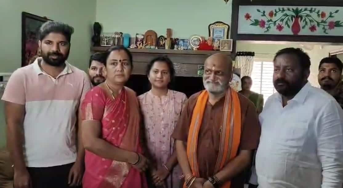ಸಿಕೆಬಿ-5 ತಾಲೂಕಿನ ಪರೆಸಂದ್ರದಲ್ಲಿ ಹೈದರಾಬಾದ್ ವ್ಯಾಪಾರಿಗಳಿಂದ ವಂಚನೆಗೊಳಗಾಗಿರುವ ಜೋಳದ ರಾಮಕೃಷ್ಣ ರ ಮನೆಗೆ ಪ್ರಮೋದ್ ಮುತಾಲಿಕ್ ಭೇಟಿ ನೀಡಿ ಸ್ವಾಂತನ ಹೇಳಿದರು.)