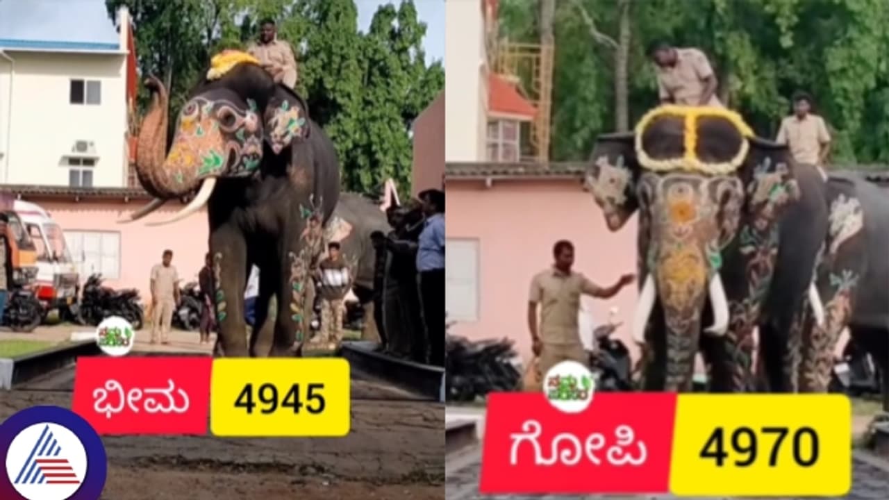 ಈ ಬಾರಿಯ ದಸರೆಯಲ್ಲಿ ಭಾಗವಹಿಸಲು ಎರಡು ತಂಡಗಳಲ್ಲಿ ಒಟ್ಟು 14 ಆನೆಗಳನ್ನು ತರಲಾಗಿದೆ. ನಗರದ ಧನ್ವಂತ್ರಿ ರಸ್ತೆಯಲ್ಲಿರುವ ಸಾಯಿರಾಂ ವೇ ಬ್ರಿಡ್ಜ್ನಲ್ಲಿ 14 ಆನೆಗಳ ತೂಕ ಪರಿಶೀಲನೆ ಕಾರ್ಯ ಸೋಮವಾರ ಬೆಳಗ್ಗೆ ನಡೆಯಿತು. ಈ ತೂಕ ಪರೀಕ್ಷೆಯಲ್ಲಿ ಭೀಮ 435 ಕೆ.ಜಿ. ಹೆಚ್ಚಿಸಿಕೊಂಡು ಮೊದಲ ಸ್ಥಾನ ಪಡೆಯಿತು. ಬಂದಾಗ 4945 ಕೆ.ಜಿ. ಇದ್ದ ಭೀಮ ಈಗ 5380 ಕೆ.ಜಿ. ತೂಕ ಹೊಂದಿದೆ. ಪ್ರಶಾಂತ ಮತ್ತು ಏಕಲವ್ಯ ಆನೆಗಳು 365 ಕೆ.ಜಿ. ತೂಕ ಹೆಚ್ಚಿಸಿಕೊಂಡು 2ನೇ ಸ್ಥಾನ ಹಂಚಿಕೊಂಡಿವೆ.