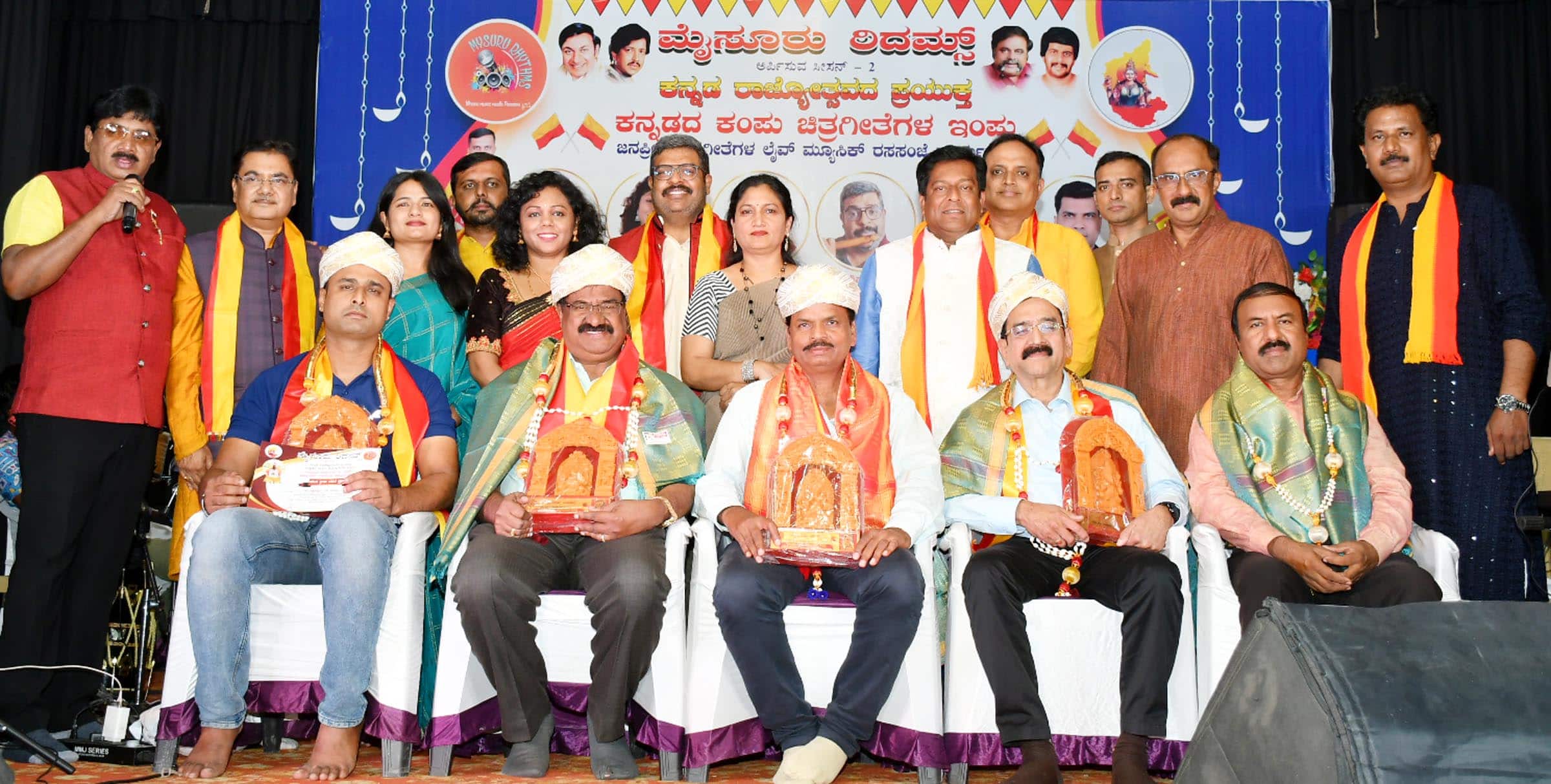 ಕನ್ನಡಪ್ರಭ ವಾರ್ತೆ ಮೈಸೂರುಮೈಸೂರು ರಿದಮ್ಸ್ ಕರೋಕೆ ಕ್ಲಬ್ ವತಿಯಿಂದ ಕನ್ನಡ ರಾಜ್ಯೋತ್ಸವದ ಅಂಗವಾಗಿ ನಗರದ ಜೆಎಲ್ ಬಿ ರಸ್ತೆಯ ನಾದಬ್ರಹ್ಮ ಸಂಗೀತಸಭಾದಲ್ಲಿ ಕನ್ನಡದ ಕಂಪು ಚಿತ್ರಗೀತೆಗಳ ಇಂಪು- ಜನಪ್ರಿಯ ಚಿತ್ರಗೀತೆಗಳ ಲೈವ್ ಮ್ಯೂಸಿಕ್ ರಸಸಂಜೆ ಕಾರ್ಯಕ್ರಮ ಗುರುವಾರ ಜರುಗಿತು.ಕನ್ನಡದ ಸುಪ್ರಸಿದ್ಧ ಹಳೆಯ ಹಾಗೂ ಹೊಸ ಸಿನಿಮಾಗಳ ಚಿತ್ರಗೀತೆಗಳನ್ನು ತಂಡದ ಸದಸ್ಯರಾದ ಎಸ್. ಅಮರ್, ಡಾ.ಎಲ್. ಸುಮಾ, ನಾಗೇಂದ್ರ, ಅಶ್ವಿನ್ ಅತ್ರಿ, ಜಿ.ಪಿ. ಚೇತನ್, ಸಂತೋಷ್ ನಾಯರ್, ರವಿಕುಮಾರ್, ಡಾ. ಪ್ರಕಾಶ್, ಡಾ. ಬಾಲಕಿರಣ್, ನಾಗೇಶ್ ಶೃಂಗೇರಿ, ಡಾ. ಪೂರ್ಣಿಮಾ, ಡೌ. ಸೌಮ್ಯಾ, ಶರಣ್ಯಾ, ನಾಗೇಶ್ ಹಾಗೂ ಪ್ರವೀಣ್ ಗಾಡ್ಕೆ ಪ್ರಸ್ತುತಪಡಿಸಿದರು. ವಾದ್ಯವೃಂದದಲ್ಲಿ ನಾಗೇಶ್- ಡ್ರಮ್ಸ್, ಶರತ್, ರಾಜೇಶ್- ಕೀಬೋರ್ಡ್, ವಿಲ್ಸನ್- ಗಿಟಾರ್, ಕಿರಣ್- ರಿದಂ ಪ್ಯಾಡ್, ರೋಶನ್ ಸೂರ್ಯ- ತಬಲ, ಕಿಶೋರ್- ಡೋಲಕ್ ಸಾಥ್ ನೀಡಿದರು. ಯಡಿಯೂರು ಸಮೀವುಲ್ಲಾ ಕಾರ್ಯಕ್ರಮ ನಿರೂಪಿಸಿದರು.ಇದೇ ವೇಳೆ ರಾಜ್ಯ ರಾಜ್ಯೋತ್ಸವ ಪ್ರಶಸ್ತಿ ಪುರಸ್ಕೃತರಾದ ಹಿರಿಯ ಪತ್ರಕರ್ತ ಅಂಶಿ ಪ್ರಸನ್ನಕುಮಾರ್, ಜಿಲ್ಲಾ ಮಟ್ಟದ ಪ್ರಶಸ್ತಿ ಪುರಸ್ಕೃತರಾದ ಕರ್ನಾಟಕ ಸುಗಮ ಸಂಗೀತ ಪರಿಷತ್ತಿನ ಜಿಲ್ಲಾಧ್ಯಕ್ಷ ನಾಗರಾಜ ವಿ. ಬೈರಿ, ಕಲಾವಿದ ಎ.ಡಿ. ಶ್ರೀನಿವಾಸ್, ಅಂತಾರಾಷ್ಟ್ರೀಯ ಕ್ರೀಡಾಪಟು ಎಸ್. ಜ್ಞಾನೇಶ್ವರ್, ಜಿಲ್ಲಾ ಕಸಾಪ ಮಾಜಿ ಅಧ್ಯತ್ರ ಡಾ.ವೈ.ಡಿ. ರಾಜಣ್ಣ ಅವರನ್ನು ಅಭಿನಂದಿಸಲಾಯಿತು,.--ಬಾಕ್ಸ್....ಕನ್ನಡ ಬದುಕು- ನಾಗರಾಜ ವಿ. ಬೈರಿಸನ್ಮಾನಿತರ ಪರವಾಗಿ ಕರ್ನಾಟಕ ಸುಗಮ ಸಂಗೀತ ಪರಿಷತ್ ಜಿಲ್ಲಾಧ್ಯಕ್ಷ ನಾಗರಾಜ ವಿ. ಬೈರಿ ಮಾತನಾಡಿ, ಕನ್ನಡವೆಂದರೆ ಬದುಕು. ಕನ್ನಡದಿಂದಲೇ ನಮ್ಮ ಜೀವನ ಸಾಗುತ್ತಿದೆ ಎಂದರು. ಮೈಸೂರು ರಿದಮ್ಸ್ ತಂಡದವರು ಕನ್ನಡಮಯ ವಾತಾವರಣವನ್ನು ನಿರ್ಮಿಸಿ, ರಾಜ್ಯೋತ್ಸವ ಆಚರಿಸುತ್ತಿರುವುದರ ಜೊತೆಗೆ ಕನ್ನಡದ ಕಂಪು- ಚಿತ್ರಗೀತೆಗಳ ಇಂಪು ಶೀರ್ಷಿಕೆಯಡಿ ನೈಜ ವಾದ್ಯಸಂಗೀತದೊಂದಿಗೆ ರಸಸಂಜೆ ಏರ್ಪಡಿಸಿರುವುದು ಶ್ಲಾಘನೀಯ. ಈ ರೀತಿಯ ಕಾರ್ಯಕ್ರಮಗಳಿಗೆ ಸಭಿಕರು ಹೆಚ್ಚಿನ ಪ್ರೋತ್ಸಾಹ ನೀಡಬೇಕು ಎಂದರು.
