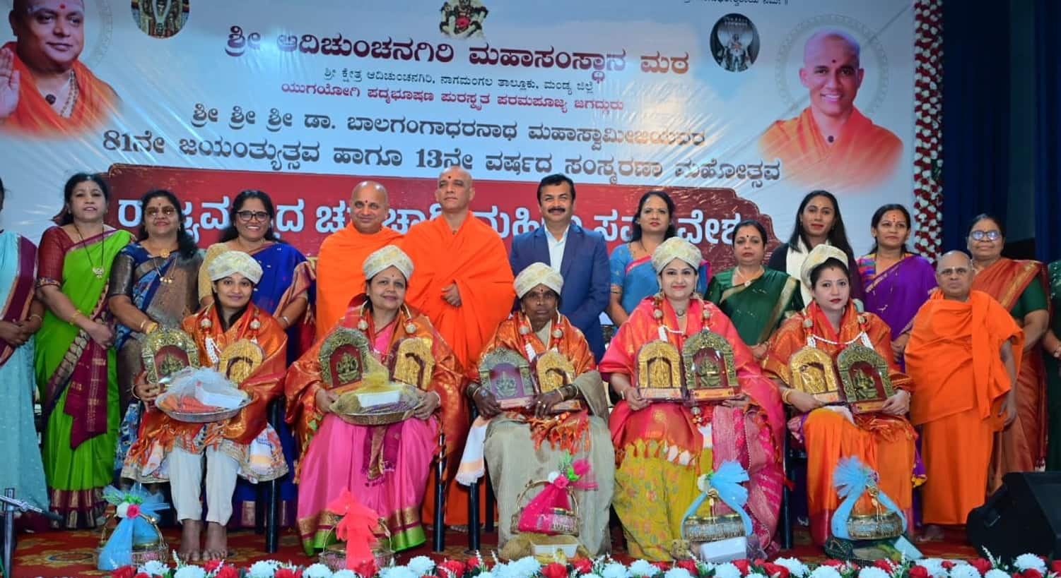 450ಕ್ಕೂ ಹೆಚ್ಚು ಶಿಕ್ಷಣ ಸಂಸ್ಥೆಗಳನ್ನು ಸ್ಥಾಪಿಸಿ ಎಲ್ಲ ವರ್ಗದ ಮಕ್ಕಳಿಗೆ ಗುಣಮಟ್ಟದ ವಿದ್ಯೆ ಸಿಗುವಂತೆ ಮಾಡಿರುವ ಭೈರವೈಕ್ಯ ಶ್ರೀಗಳು ರಾಜ್ಯಾದ್ಯಂತ 5 ಕೋಟಿ ಸಸಿಗಳನ್ನು ನಡೆವ ಮೂಲಕ ಪರಿಸರಕ್ಕೆ ಅಪಾರ ಕೊಡುಗೆ ನೀಡಿದ್ದಾರೆ. ಮಹಿಳೆಯರ ಪುನರುದ್ಧಾನ ಸಬಲೀಕರಣಕ್ಕಾಗಿ ಆದಿಚುಂಚನಗಿರಿ ಮಠದಿಂದ ಉತ್ತಮ ಮಾರ್ಗದರ್ಶನ ಸಿಗುತ್ತಿದೆ ಎಂದರು.ಕರ್ನಾಟಕ ಲೋಕಸೇವಾ ಆಯೋಗದ ಸದಸ್ಯ ಪ್ರಭುದೇವ್ ಮಾತನಾಡಿ, ಸ್ತ್ರೀ ಎಂದರೆ ಸೃಷ್ಟಿಯ ಮೂಲ ರೂಪದ ಜಾಲಬಂಧ. ಈ ಜಗತ್ತನ್ನು ಕಾಯುವ ಶಕ್ತಿ. ಯಾವ ಜಾಗದಲ್ಲಿ ಸ್ತ್ರೀಯರಿಗೆ ಗೌರವ ಸಿಗುತ್ತದೆಯೋ ಅಲ್ಲಿ ಎಲ್ಲವೂ ಬೆಳಕಾಗಿರುತ್ತದೆ. ಎಲ್ಲದಕ್ಕೂ ಮೂಲ ರೂಪವಾಗಿರುವ ಮಹಿಳೆಯರ ಸೇವೆ ಮಹತ್ತರವಾದದ್ದು ಎಂದರು.