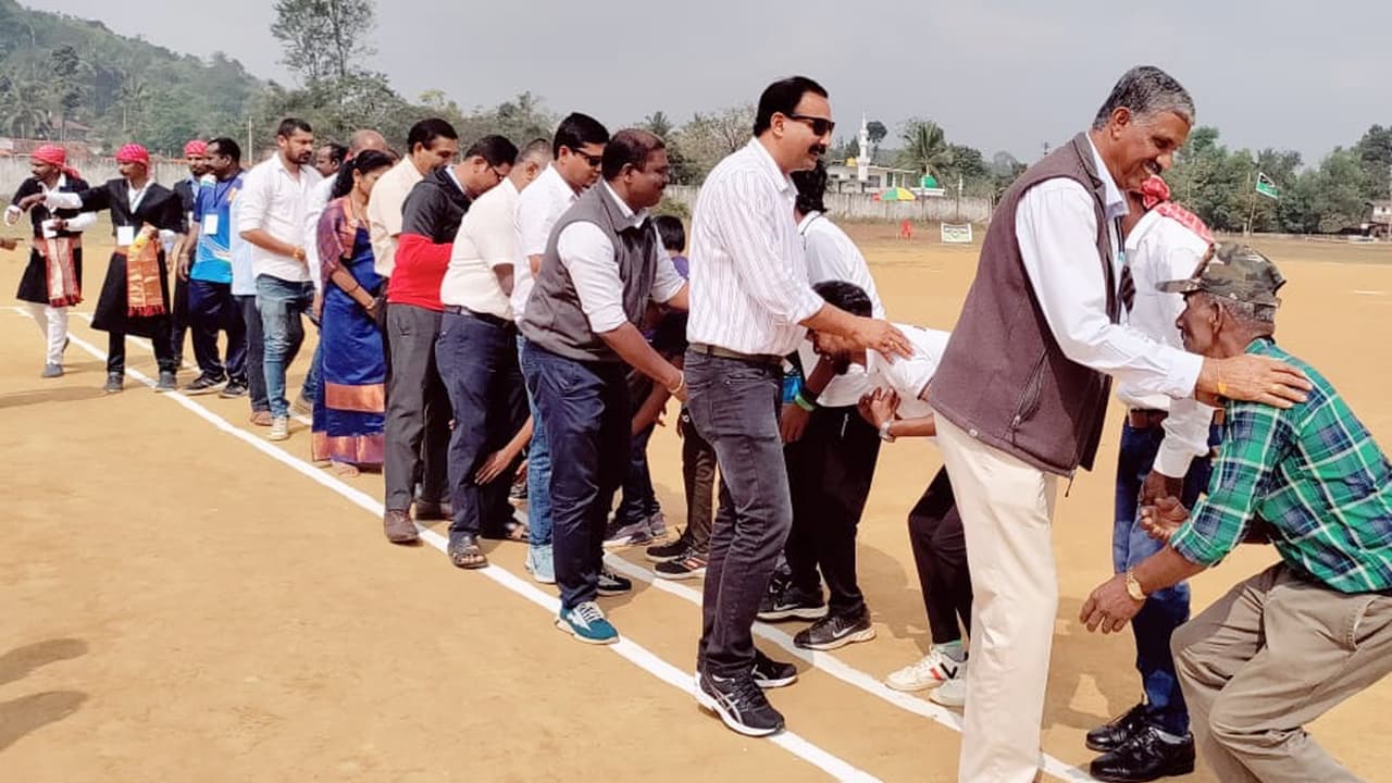 ಇಲ್ಲಿನ ಕರ್ನಾಟಕ ಪಬ್ಲಿಕ್ ಶಾಲೆಯ ಜನರಲ್ ಕೆ ಎಸ್ ತಿಮ್ಮಯ್ಯ ಕ್ರೀಡಾಂಗಣದಲ್ಲಿ ಕುಂಜಿಲ ಗ್ರಾಮದ ನಾಲ್ನಾಡು ಶಿವಾಜಿ ಯೂತ್ಸ್ ವತಿಯಿಂದ ಬುಧವಾರ ಆಯೋಜಿಸಲಾಗಿದ್ದ ಪ್ರಥಮ ವರ್ಷದ ಕ್ರಿಕೆಟ್ ಪಂದ್ಯಾಟ ಹಾಗೂ ಮಹಿಳೆಯರ ಹಗ್ಗಜಗ್ಗಾಟ ಪಂದ್ಯಾಟದ ಉದ್ಘಾಟನಾ ಕಾರ್ಯಕ್ರಮದಲ್ಲಿ ಪಾಲ್ಗೊಂಡು ಅವರು ಮಾತನಾಡಿದರು.ಯುವಕರು ದೇಹ ಮತ್ತು ಮನಸ್ಸನ್ನು ಶುಚಿಯಾಗಿಟ್ಟುಕೊಳ್ಳಬೇಕು ಎಂದ ಅವರು, ಕುಡಿತದ ದಾಸರಾಗದೆ ಉತ್ತಮ ಮಾನಸಿಕ ಆರೋಗ್ಯ ಕಾಪಾಡಿಕೊಳ್ಳಬೇಕು. ಹಿರಿಯರು-ಕಿರಿಯರು ಎಂಬ ಭೇದ ಭಾವವಿಲ್ಲದೆ ಕ್ರೀಡಾಕೂಟದಲ್ಲಿ ಪಾಲ್ಗೊಂಡು ಸಹಕಾರ ನೀಡಿದರೆ ಕ್ರೀಡಾಕೂಟ ಯಶಸ್ವಿಯಾಗಲು ಸಾಧ್ಯ ಎಂದರು.