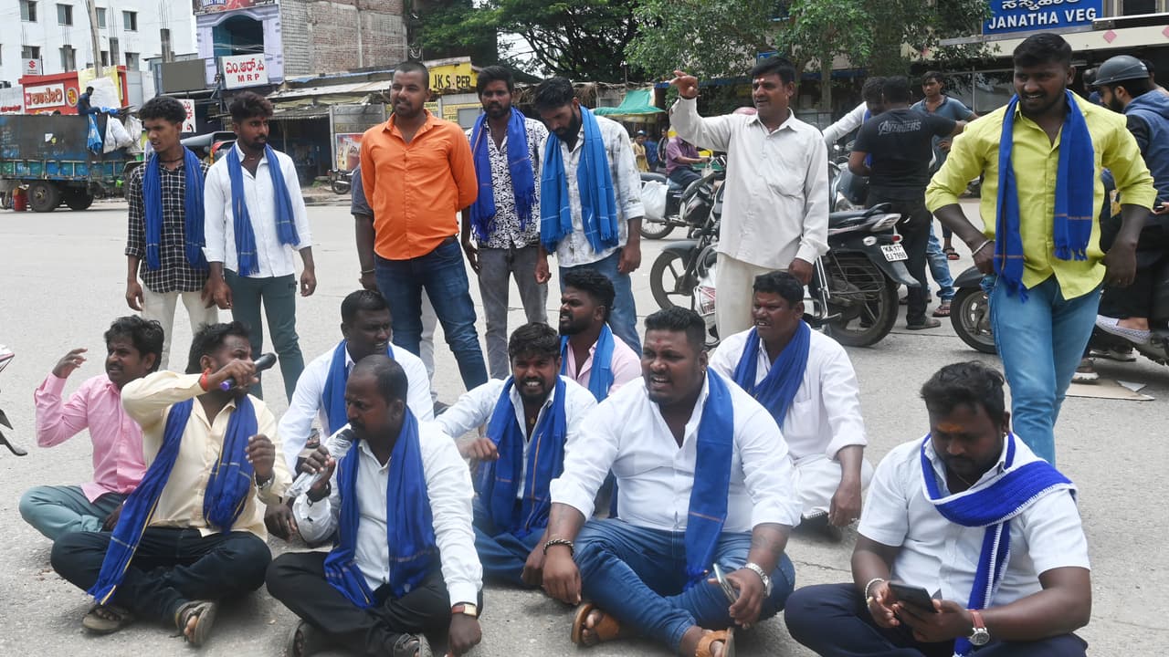 - ಬಸ್ಗಳ ತಡೆದು ಭೀಮ್ ಆರ್ಮಿ ಕರ್ನಾಟಕ ಏಕತಾ ಮಿಷನ್ ಪ್ರತಿಭಟನೆಯಲ್ಲಿ ಆಗ್ರಹ- - -